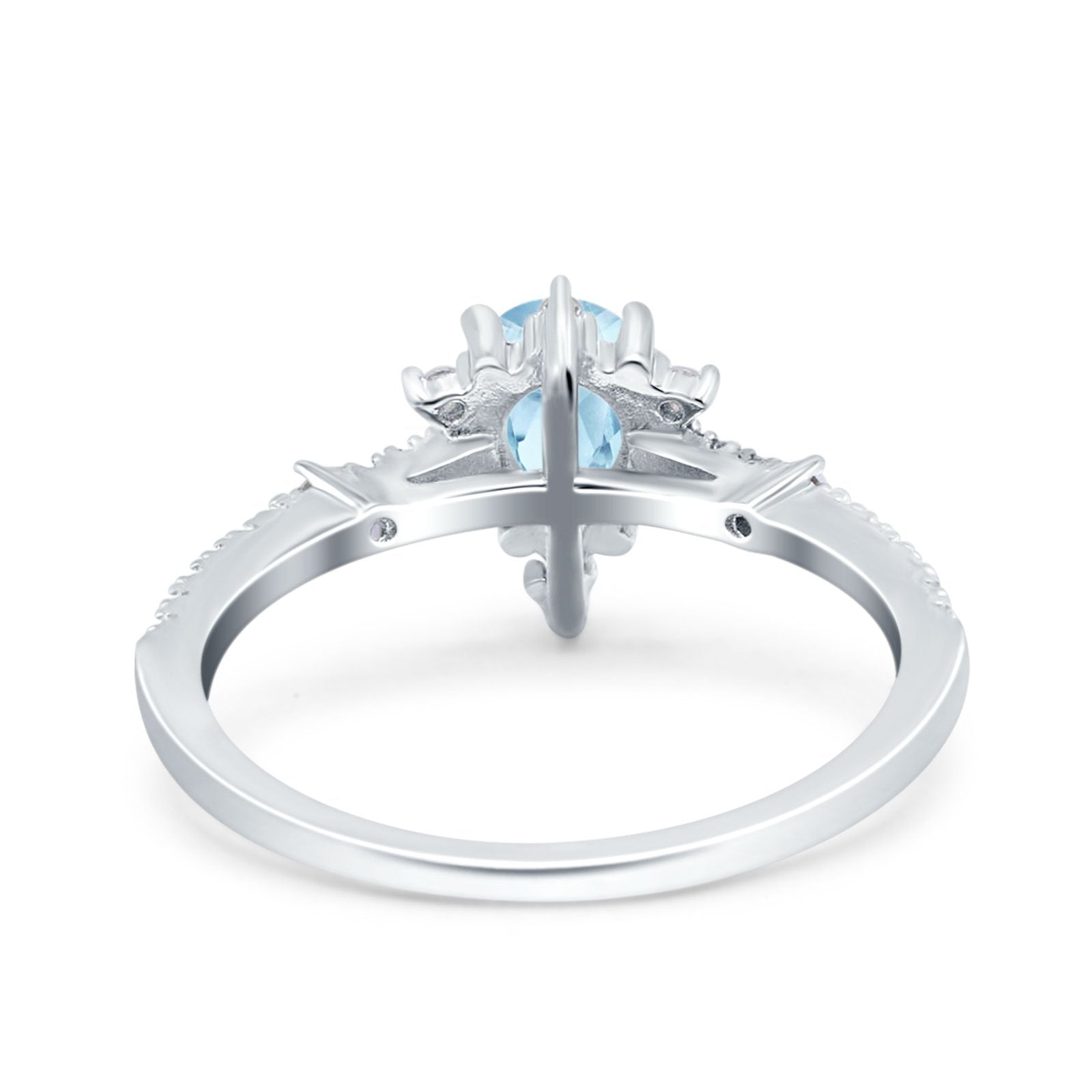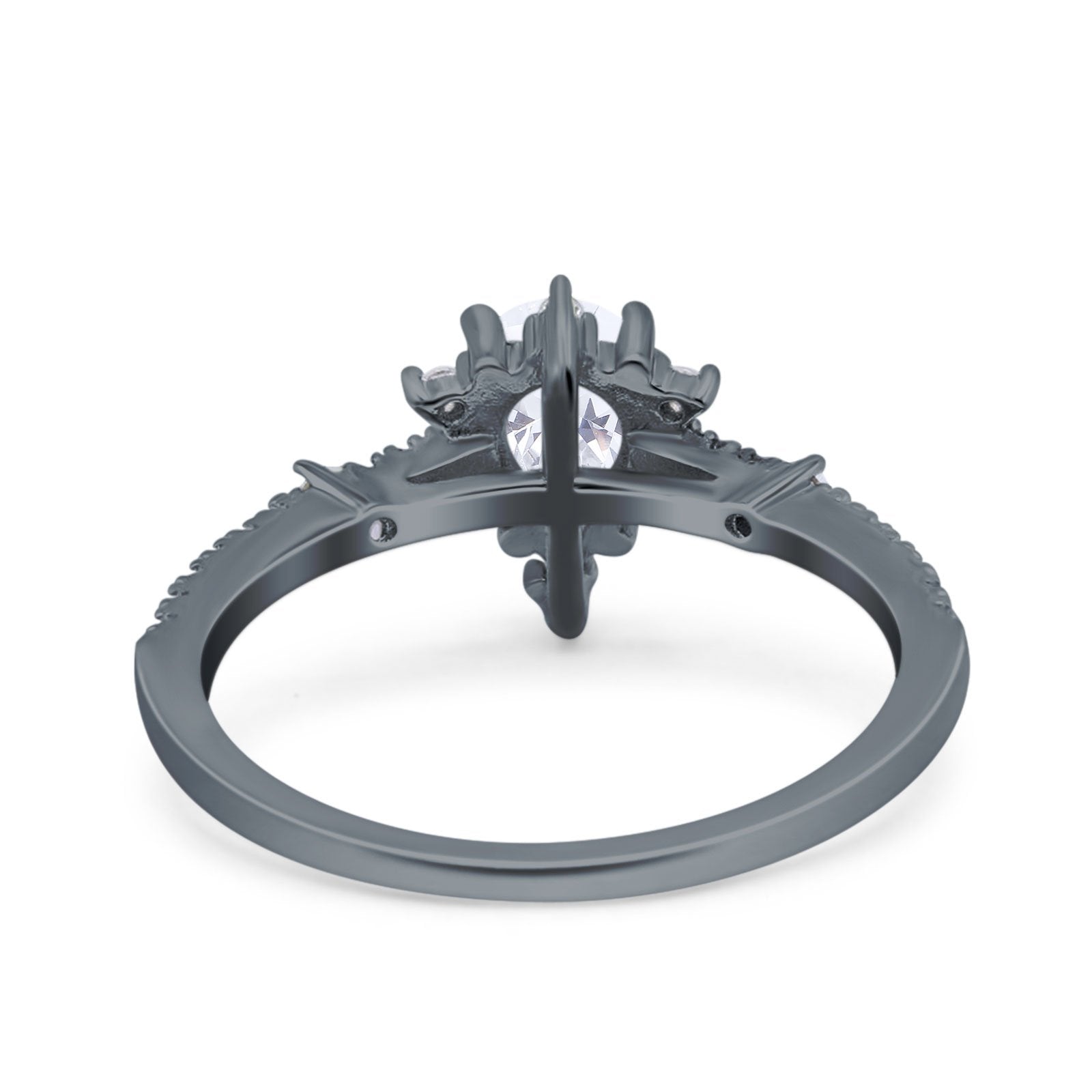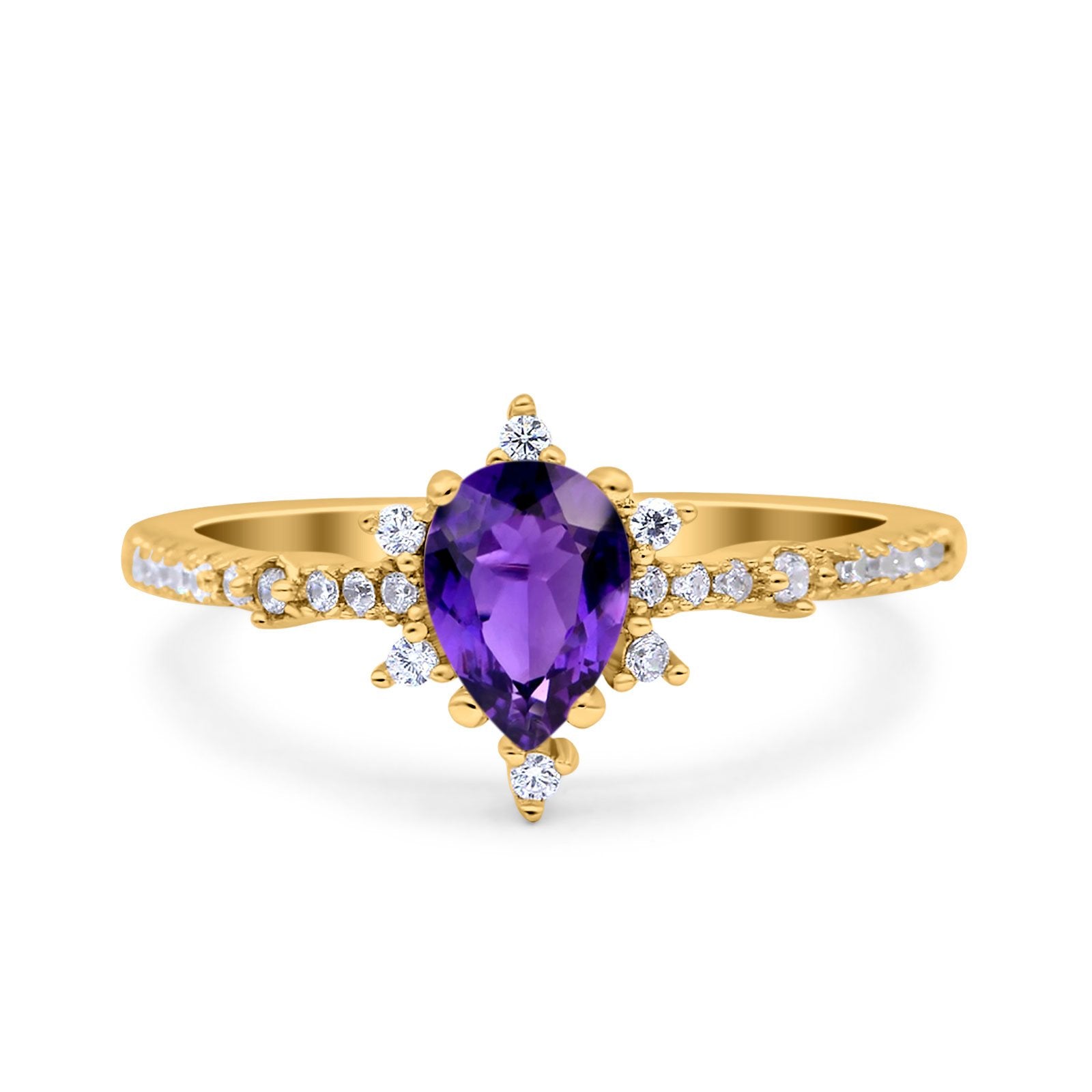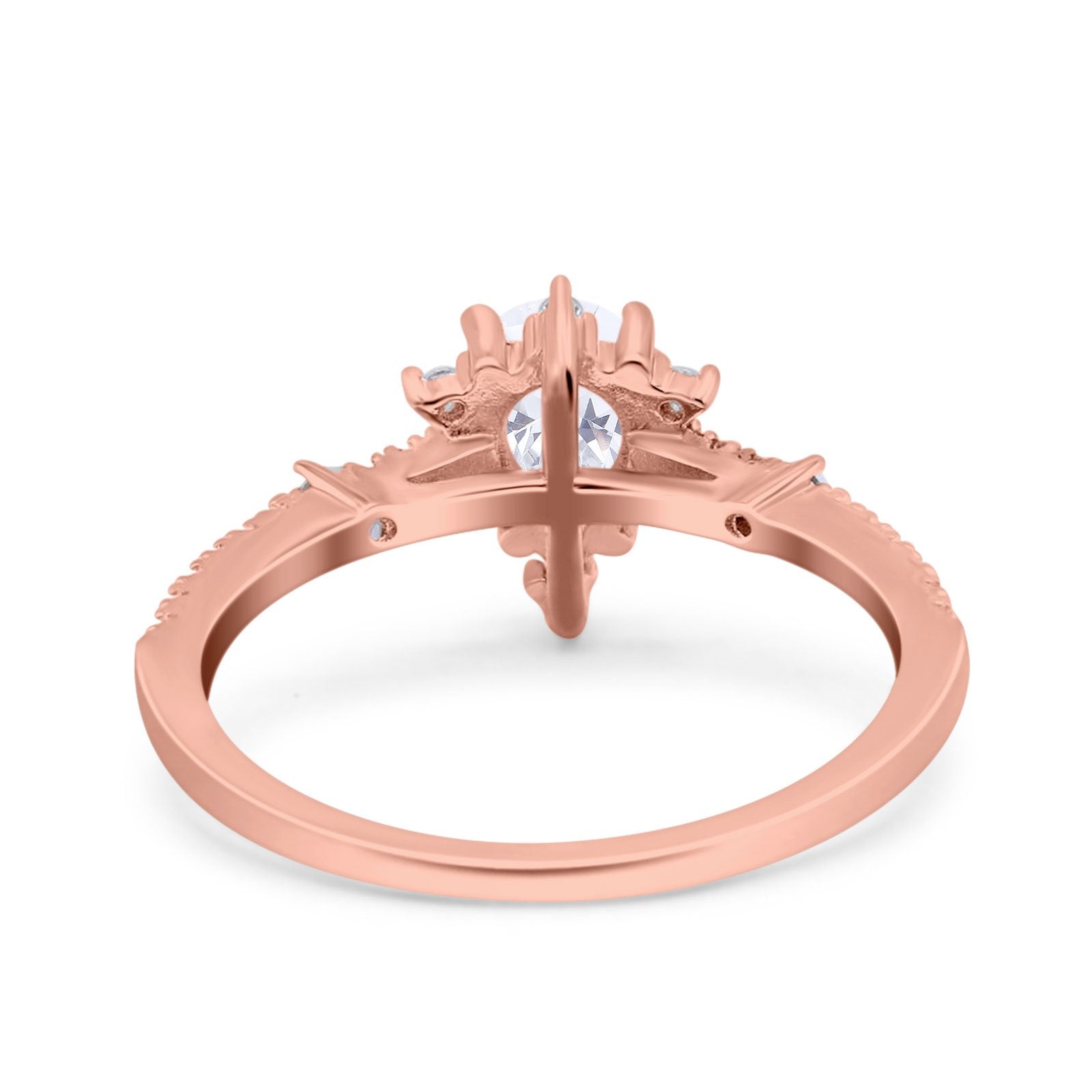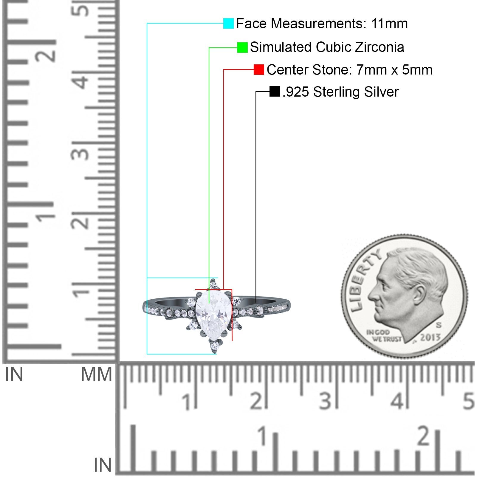 Starburst Teardrop Dainty Art Deco Pear Wedding Bridal Ring Round Simulated Cubic Zirconia 925 Sterling Silver