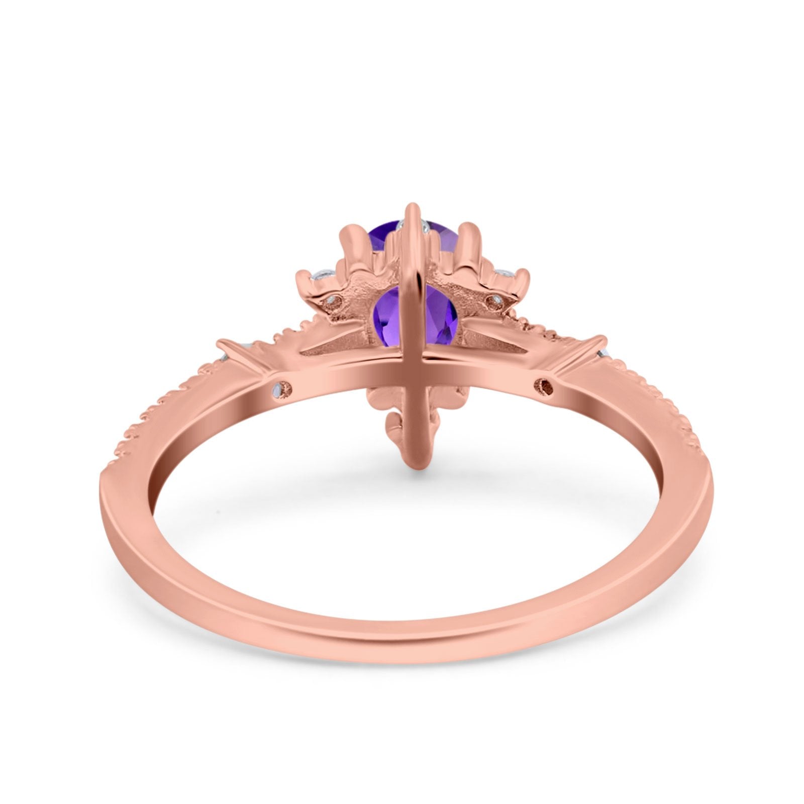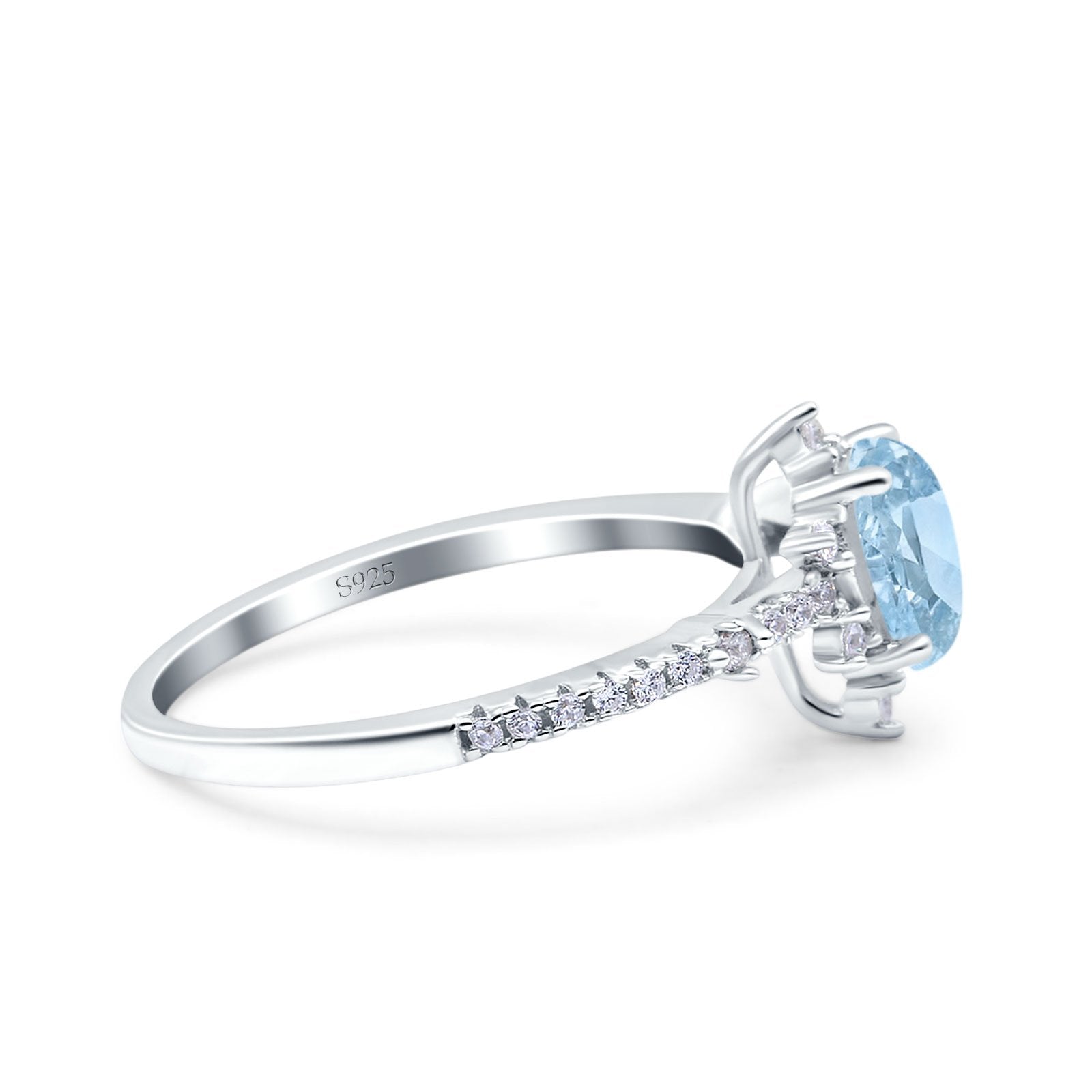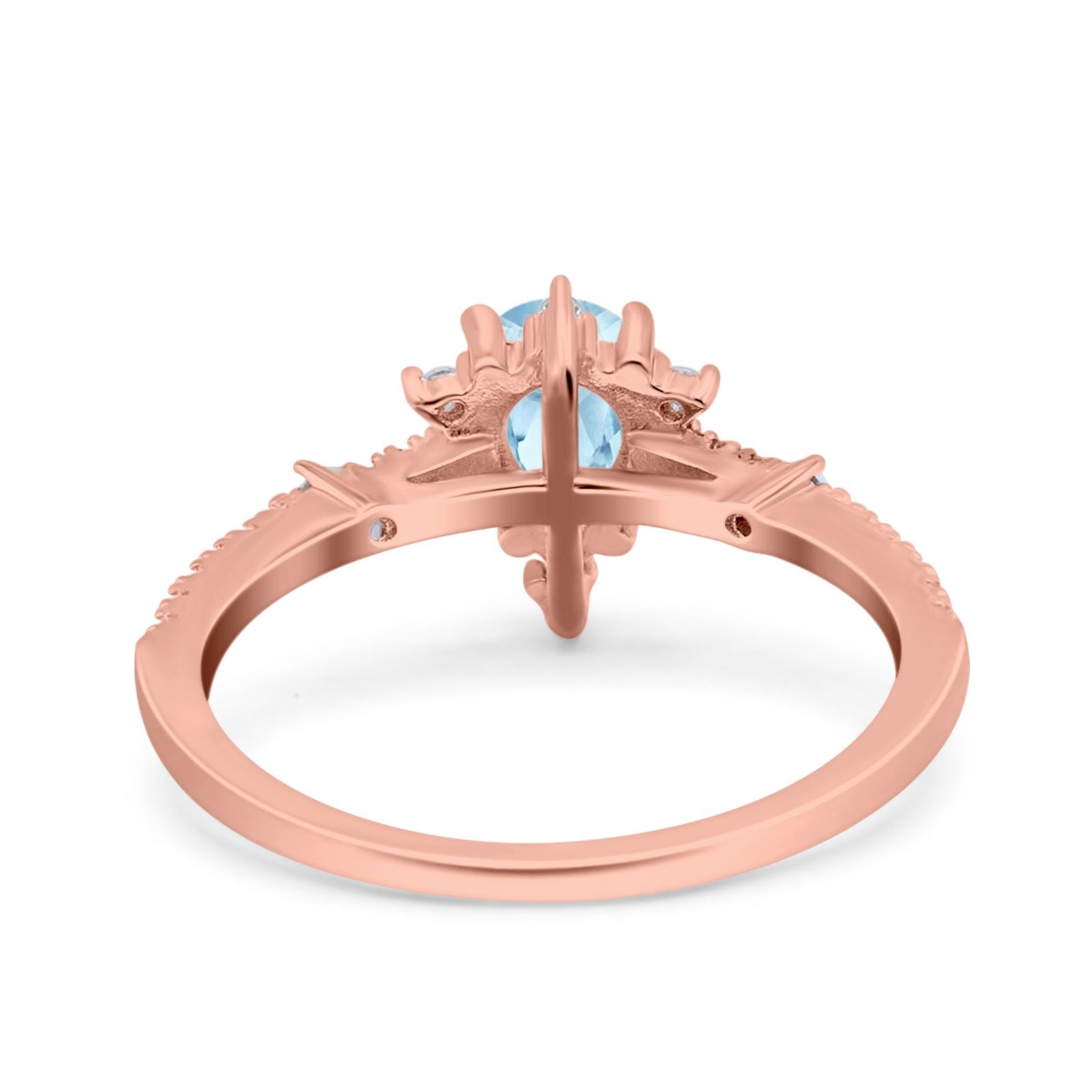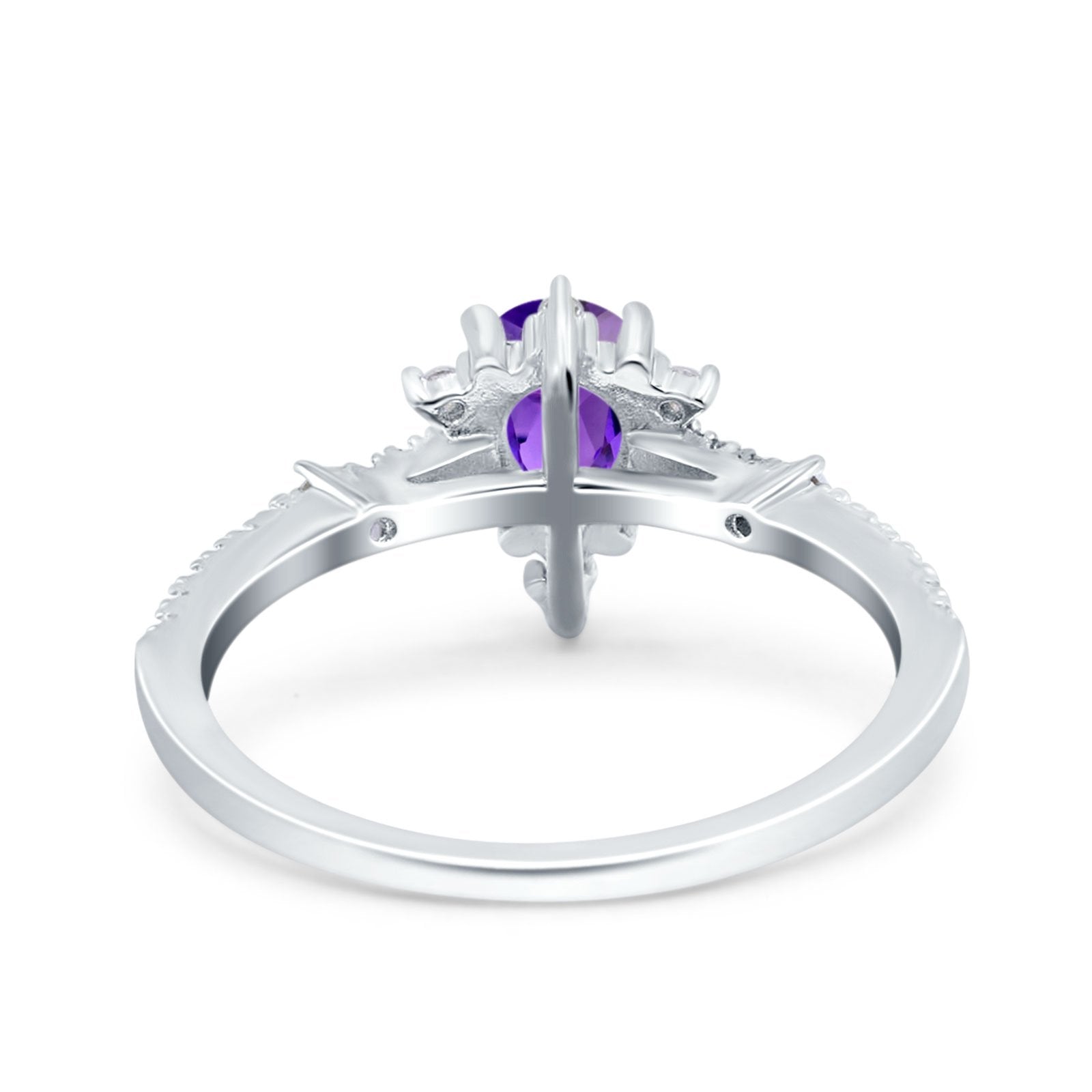 Starburst Teardrop Dainty Art Deco Pear Wedding Bridal Ring Round Simulated Cubic Zirconia 925 Sterling Silver