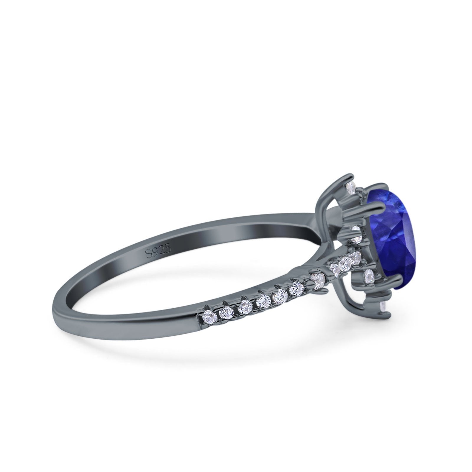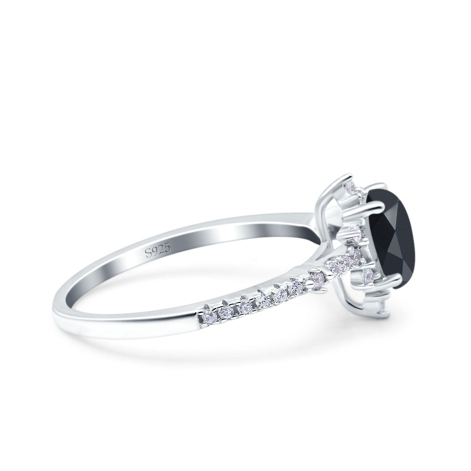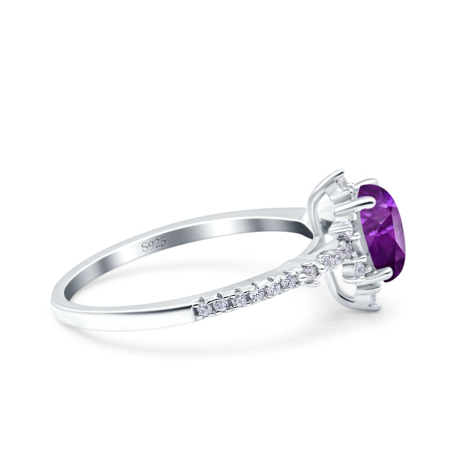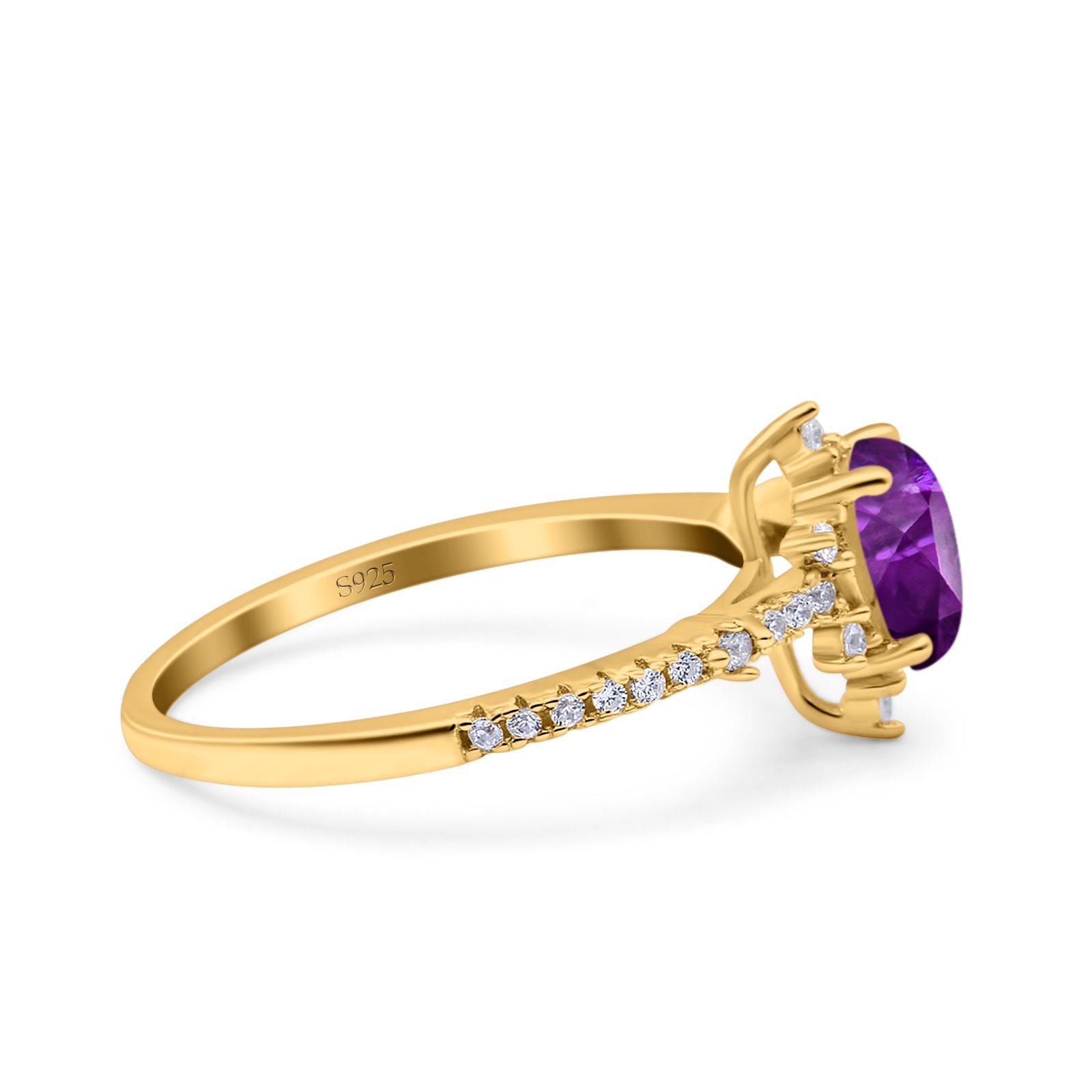 Starburst Teardrop Dainty Art Deco Pear Wedding Bridal Ring Round Simulated Cubic Zirconia 925 Sterling Silver