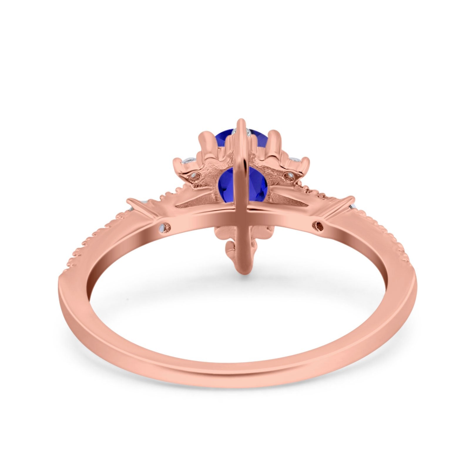 CZ & Blue Sapphire CZ Rose Tone Silver