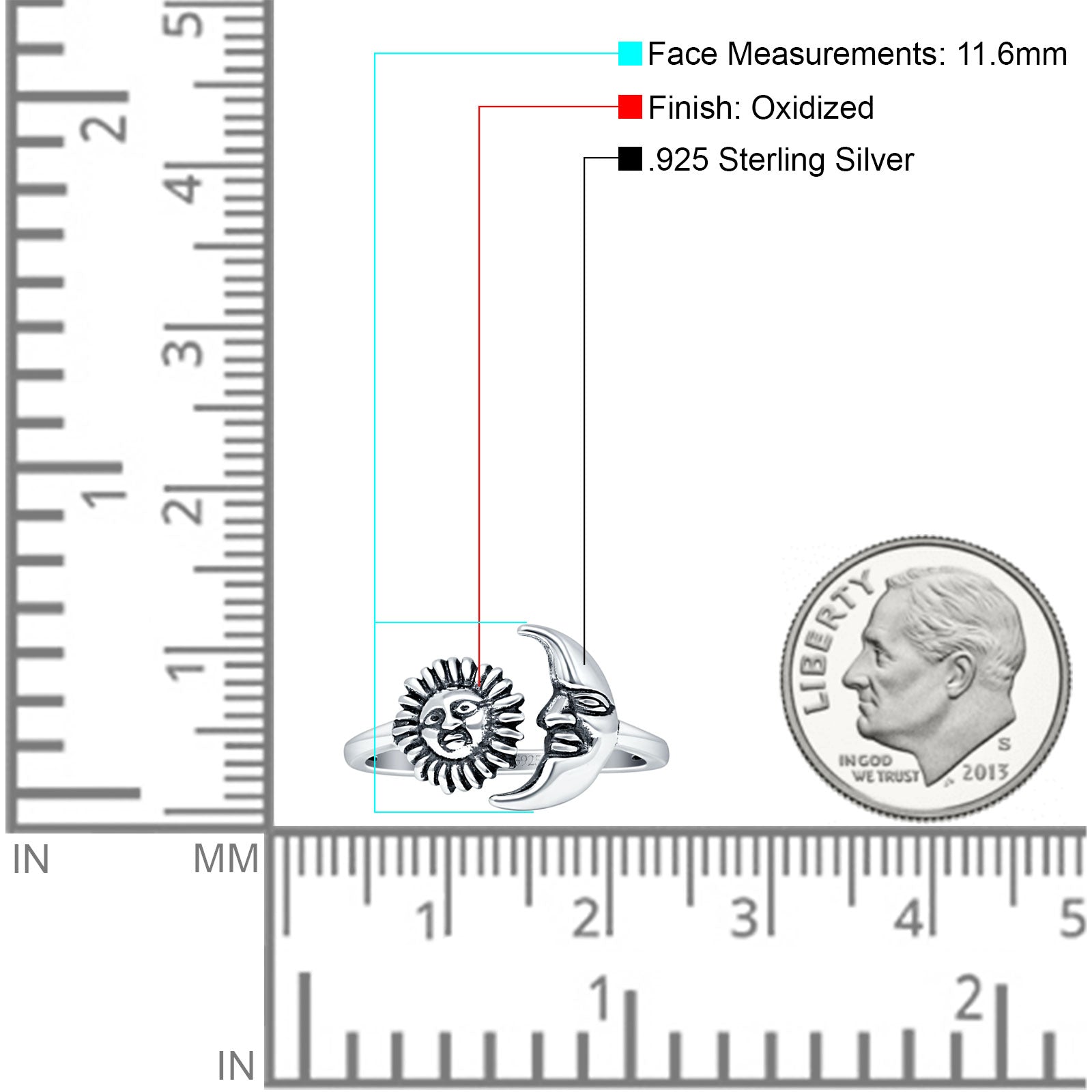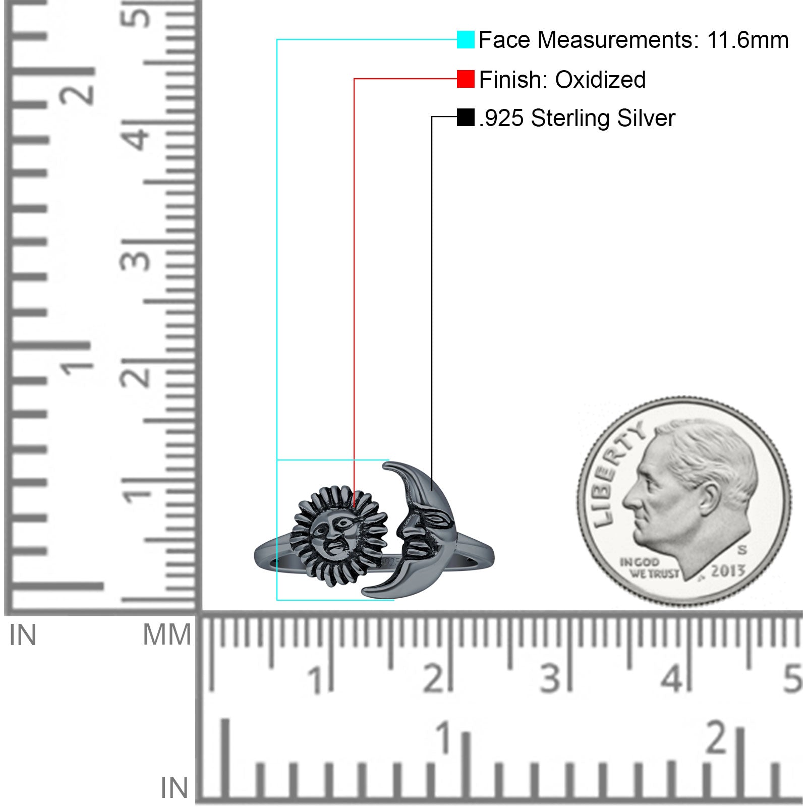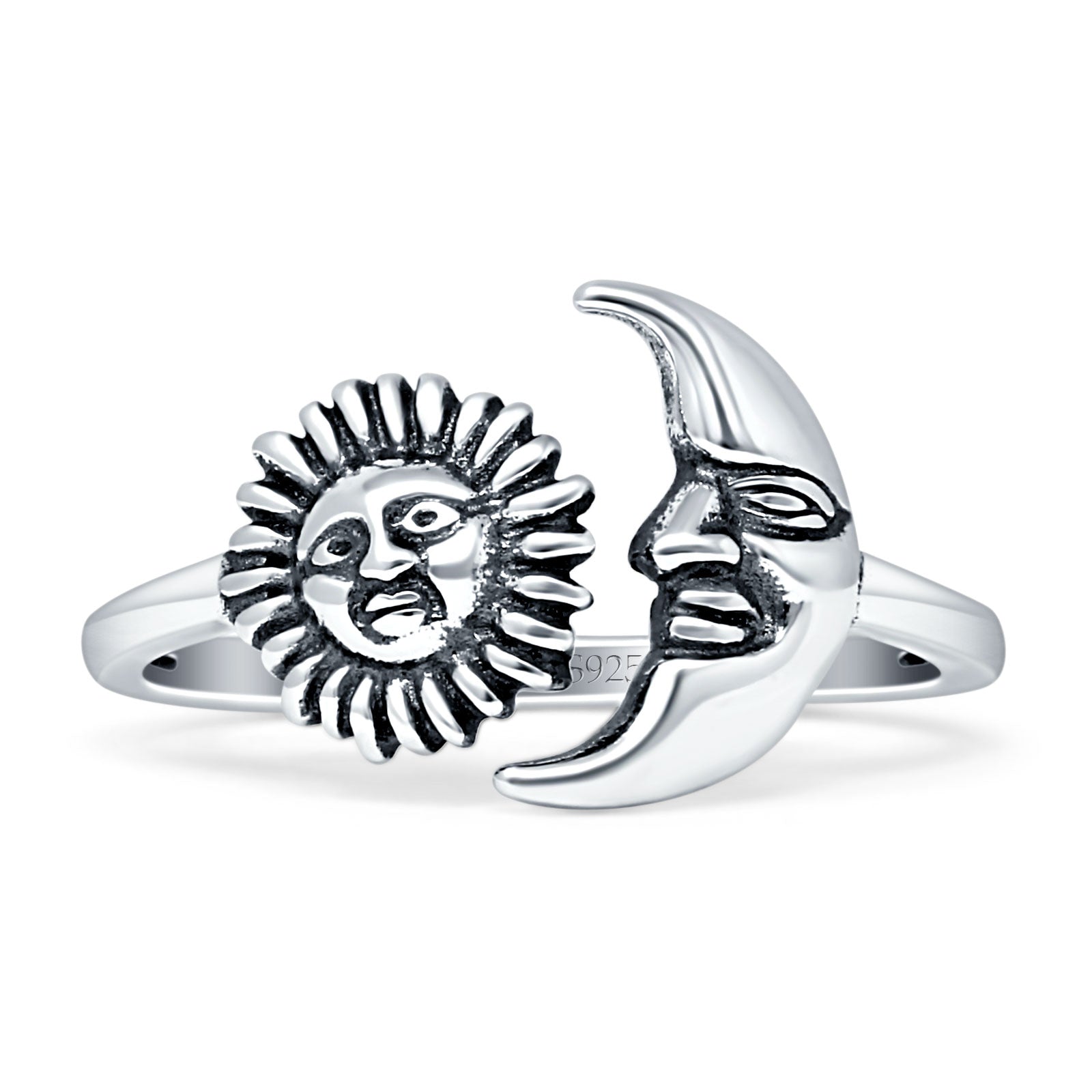 Sun Moon Ring 11.6mm Oxidized Adjustable 925 Sterling Silver