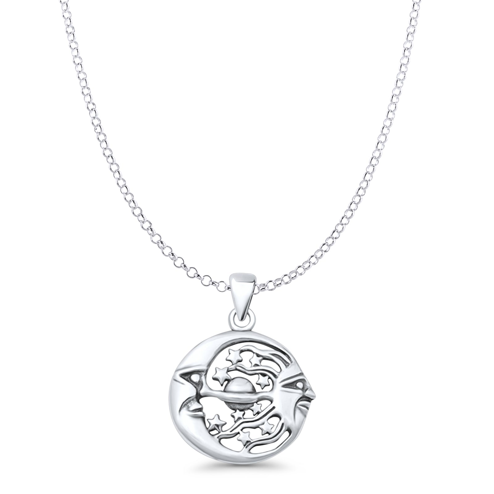 Style: Oxidized Sun Moon & Stars Pendant Necklace