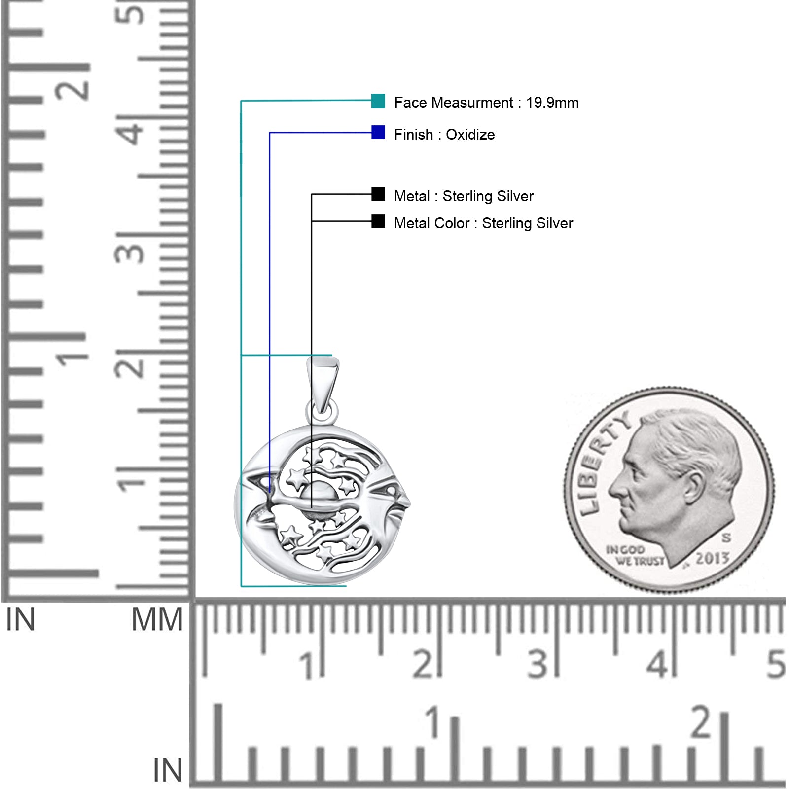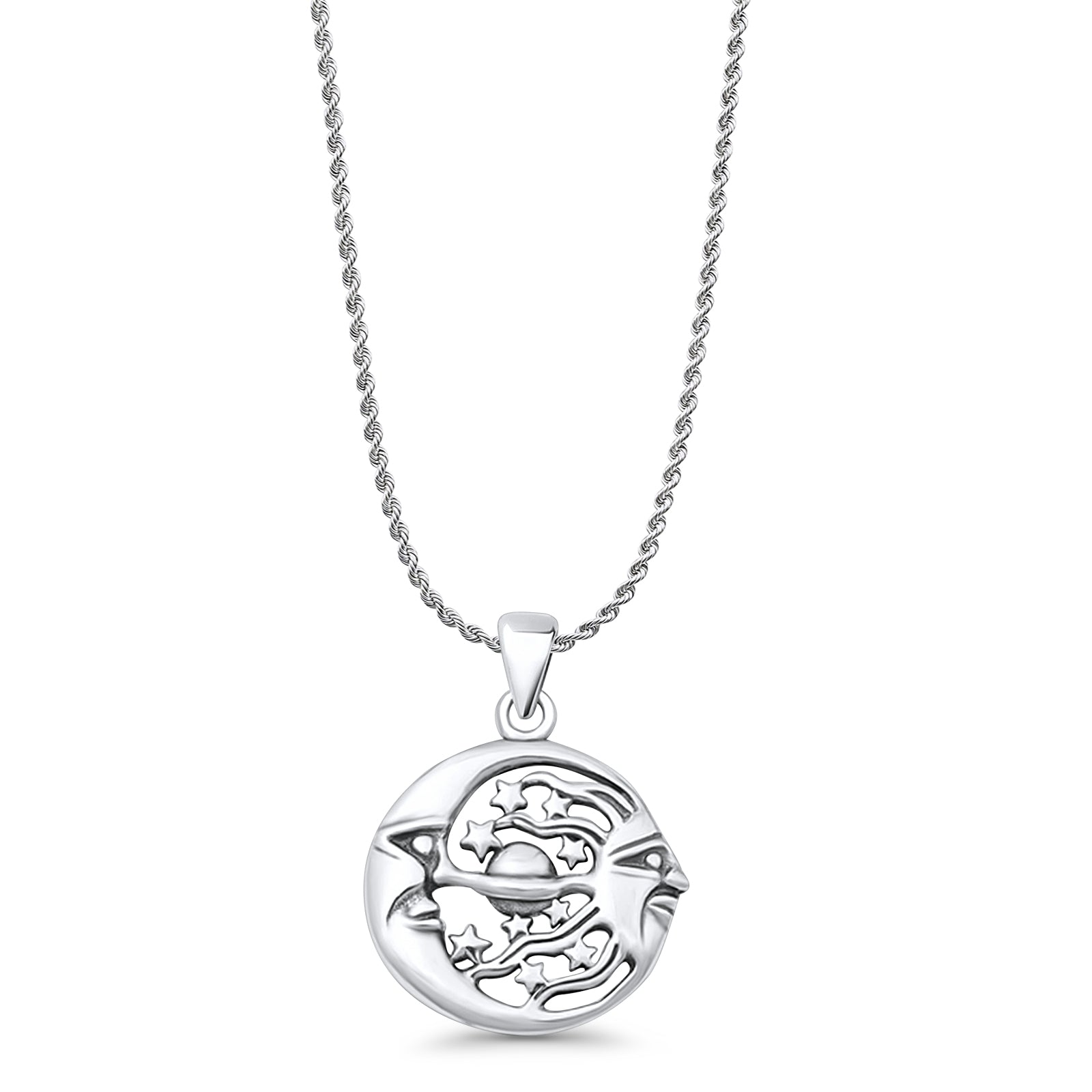 Sun Moon & Stars Pendant Rope Chain Necklace Oxidized 925 Sterling Silver