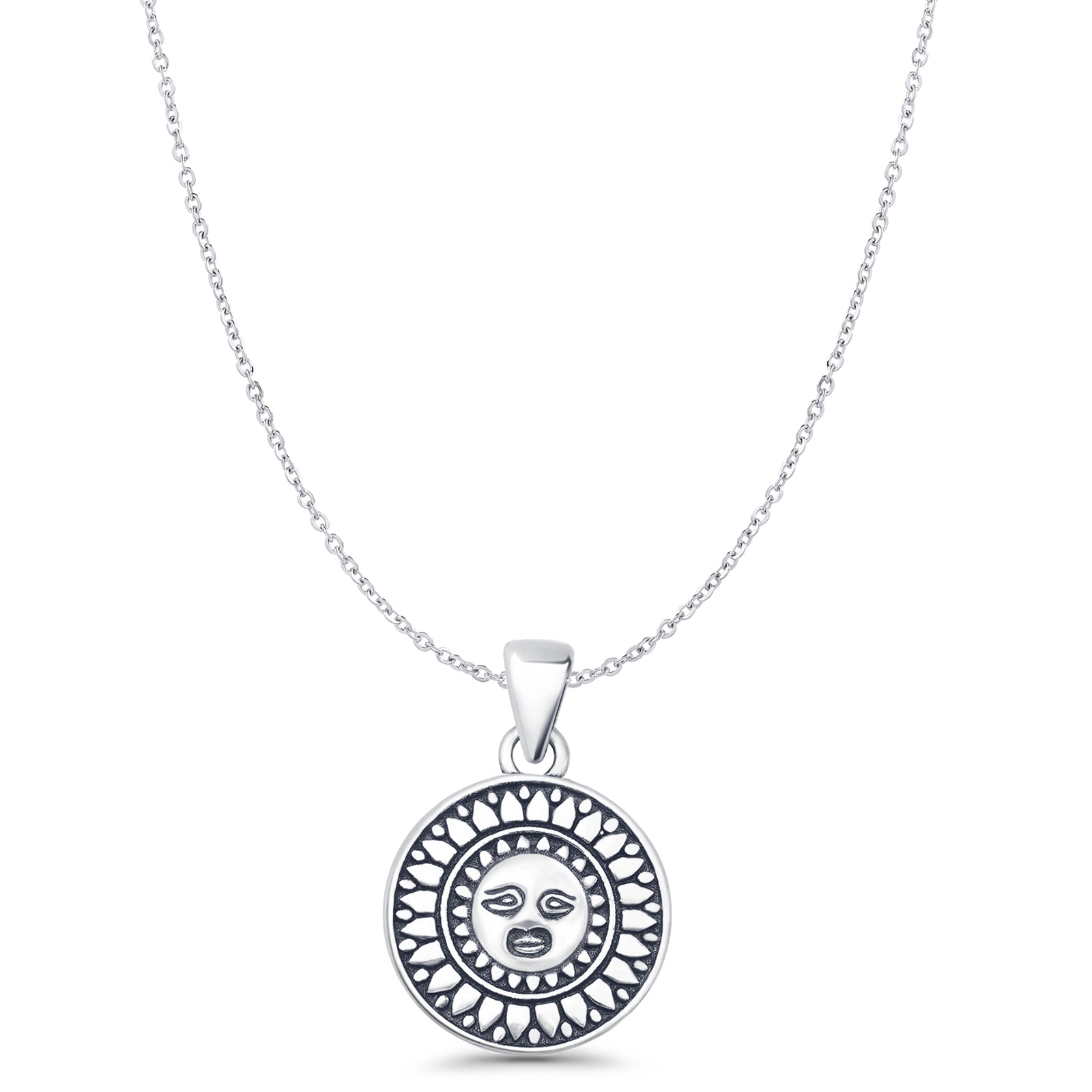 Sun Pendant Cable Chain Necklace Oxidized 925 Sterling Silver
