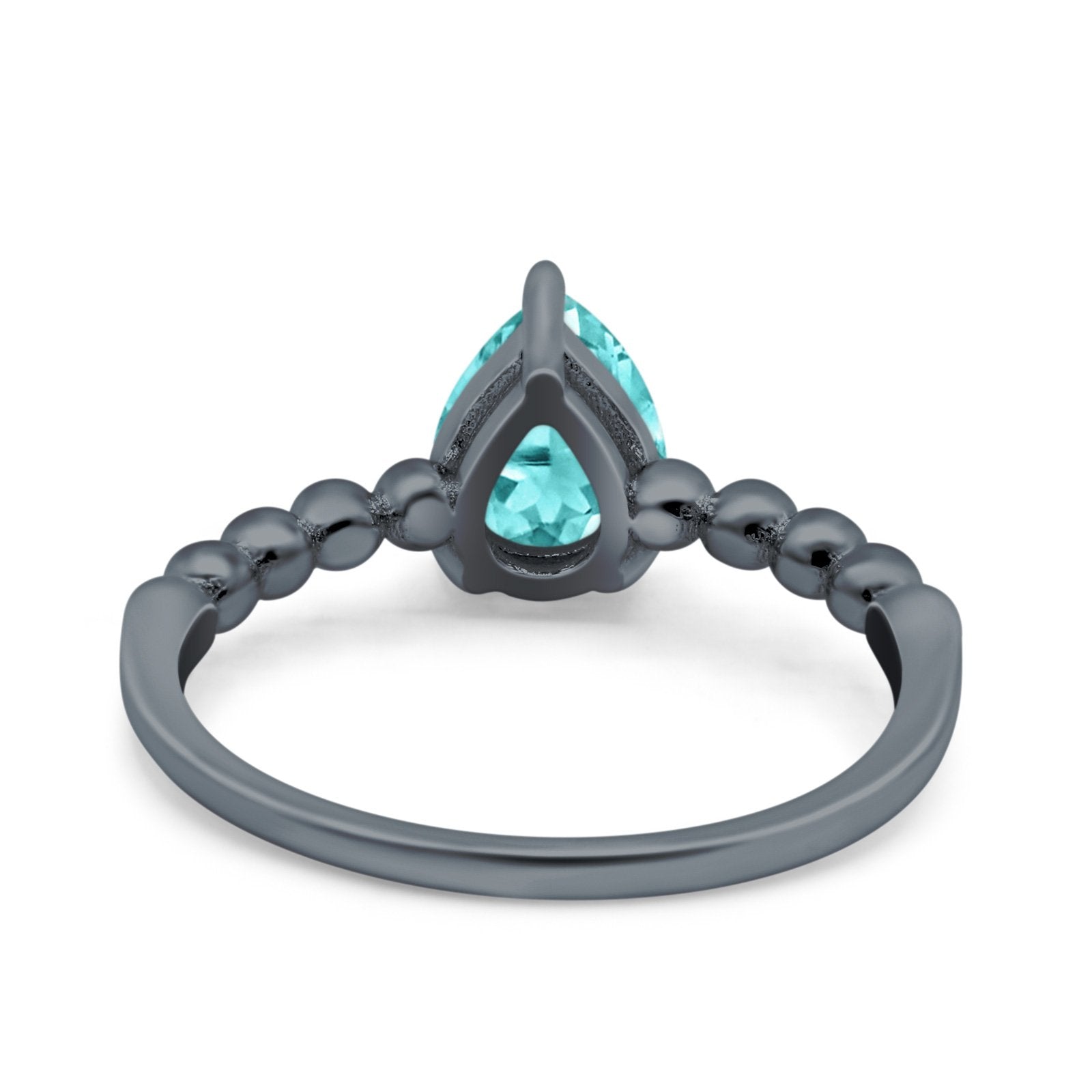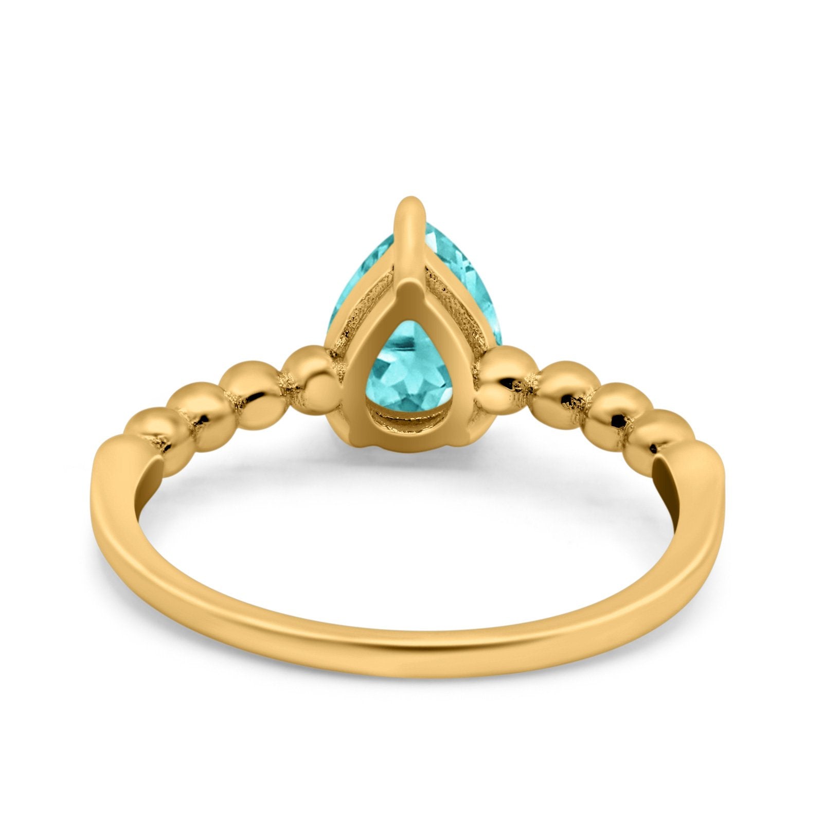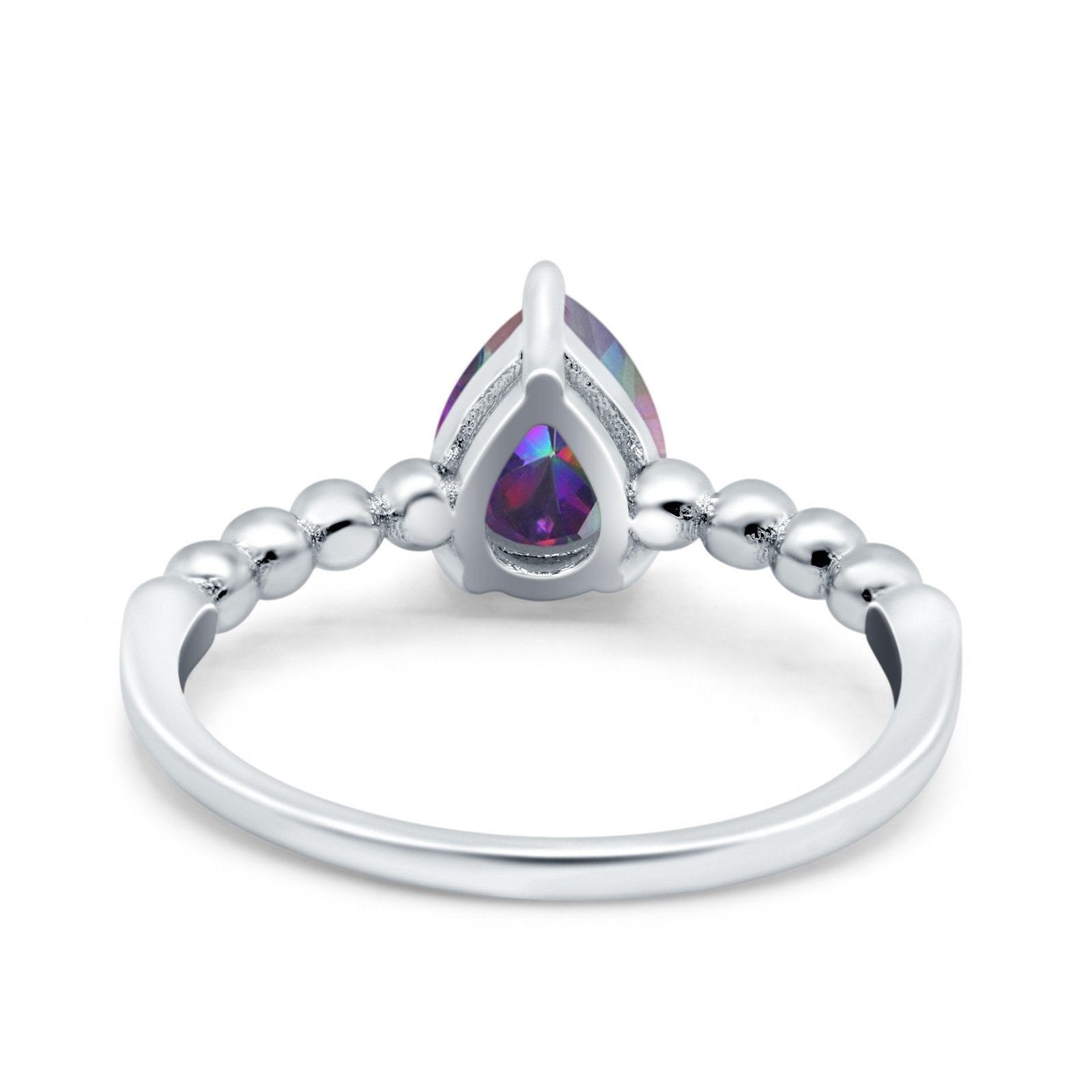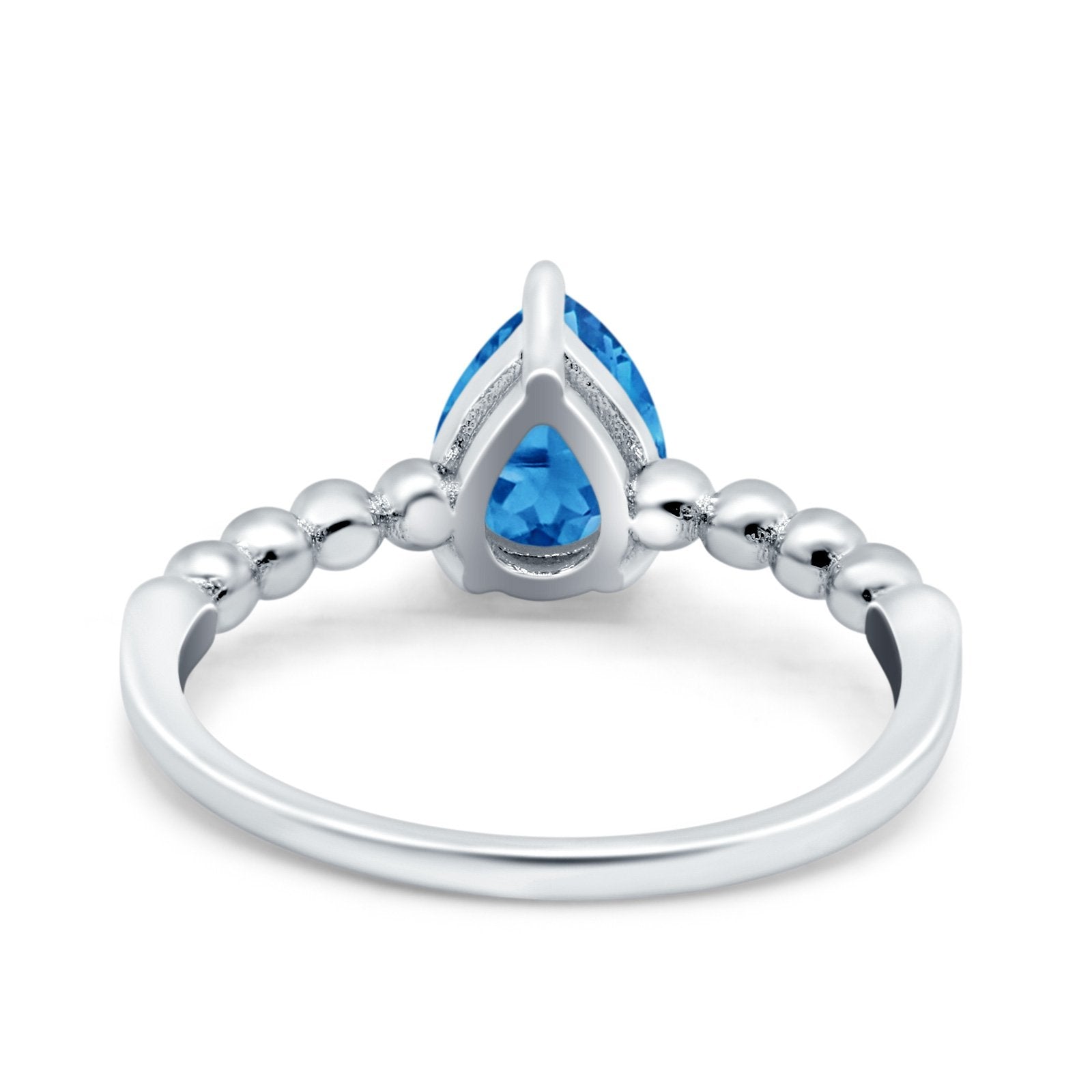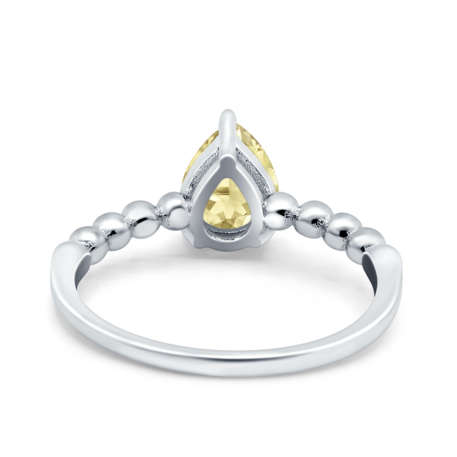 Teardrop Art Deco Pear Wedding Engagement Ring Round Simulated Cubic Zirconia 925 Sterling Silver