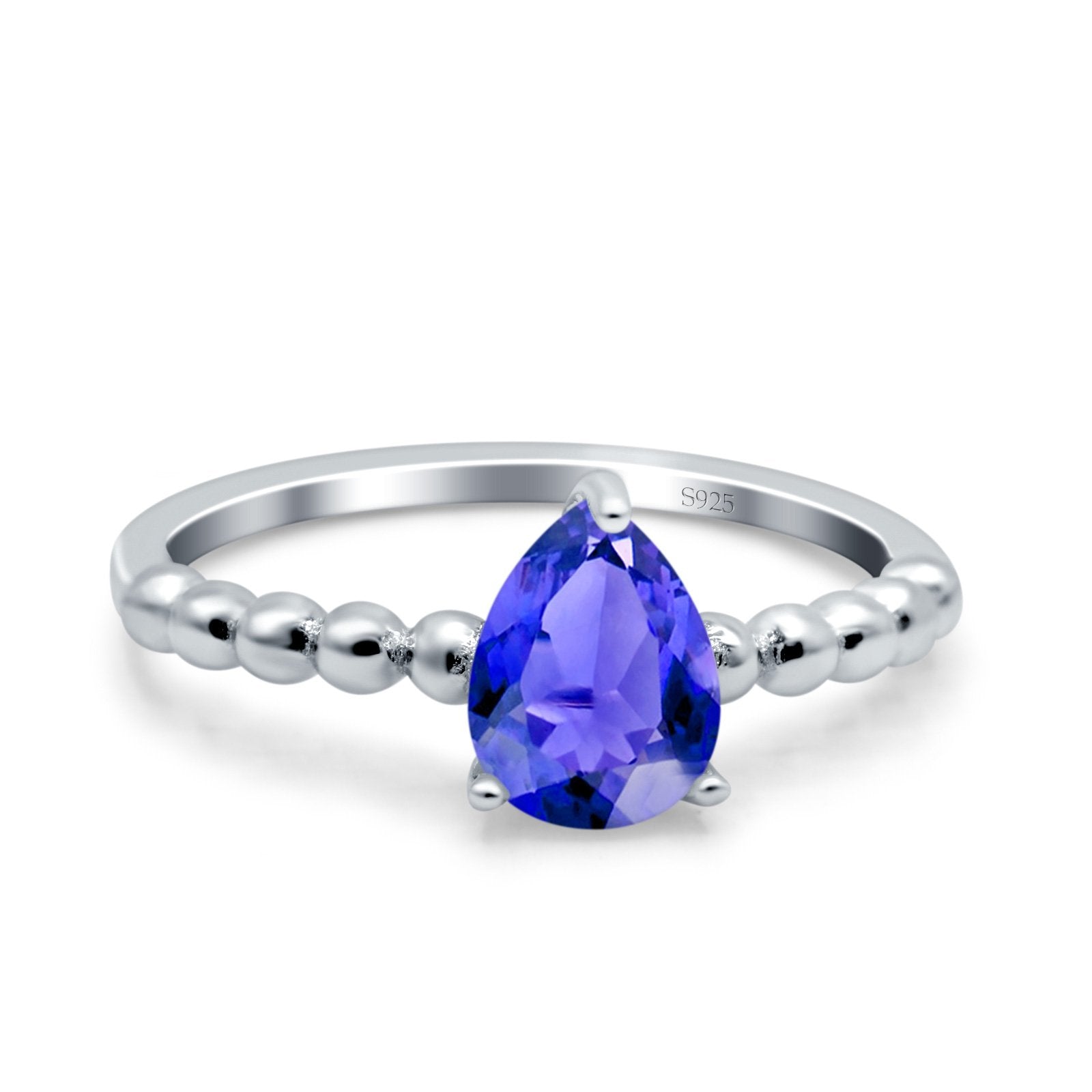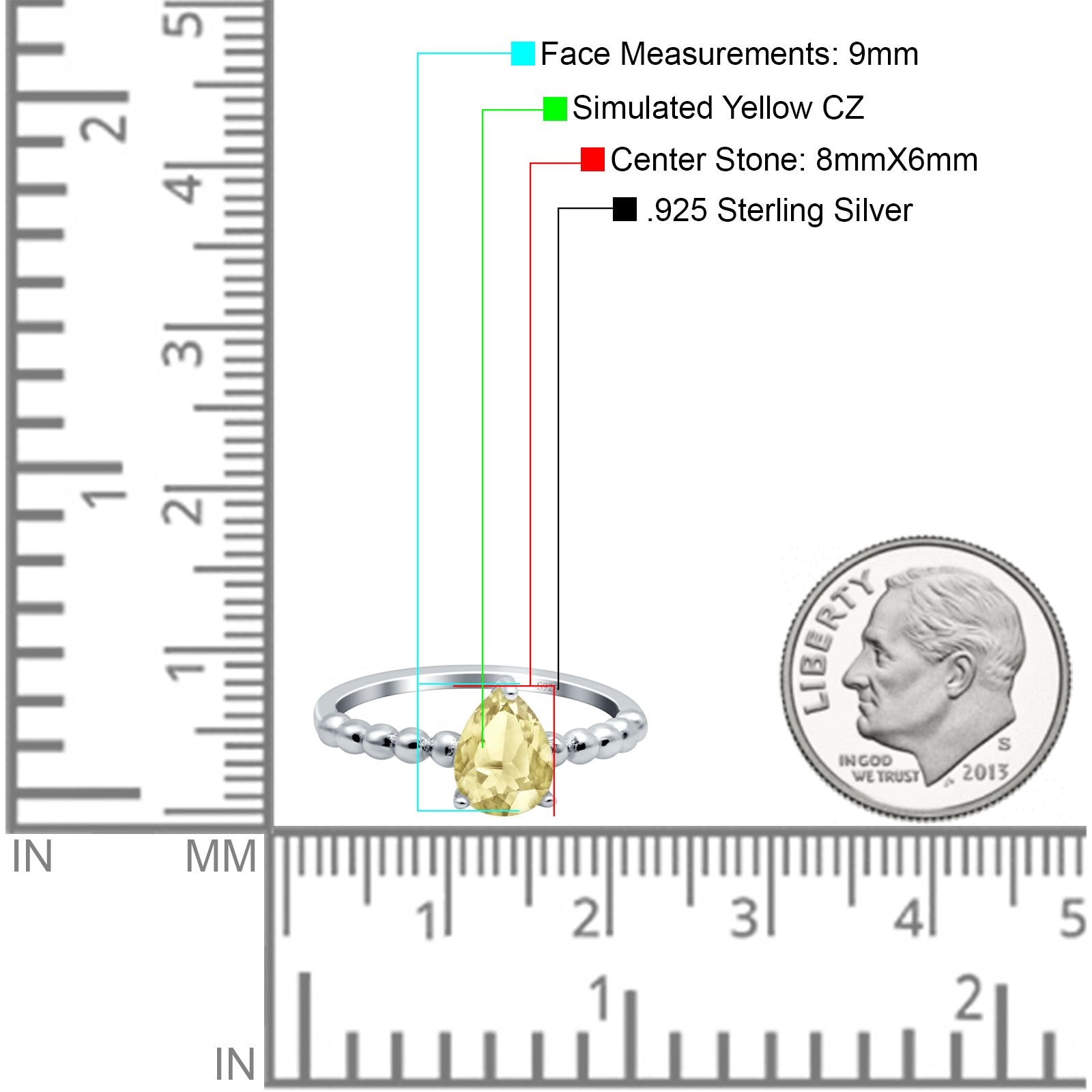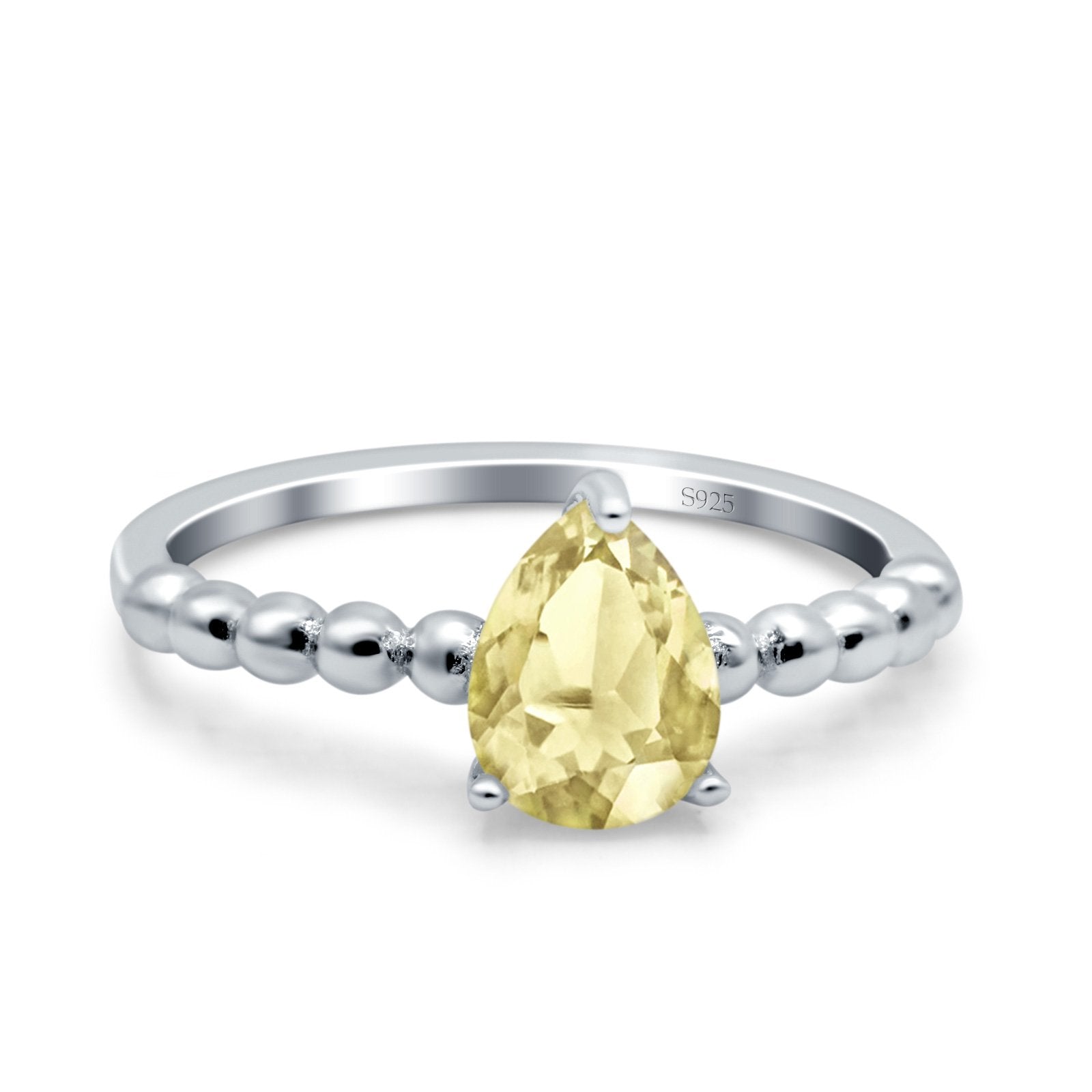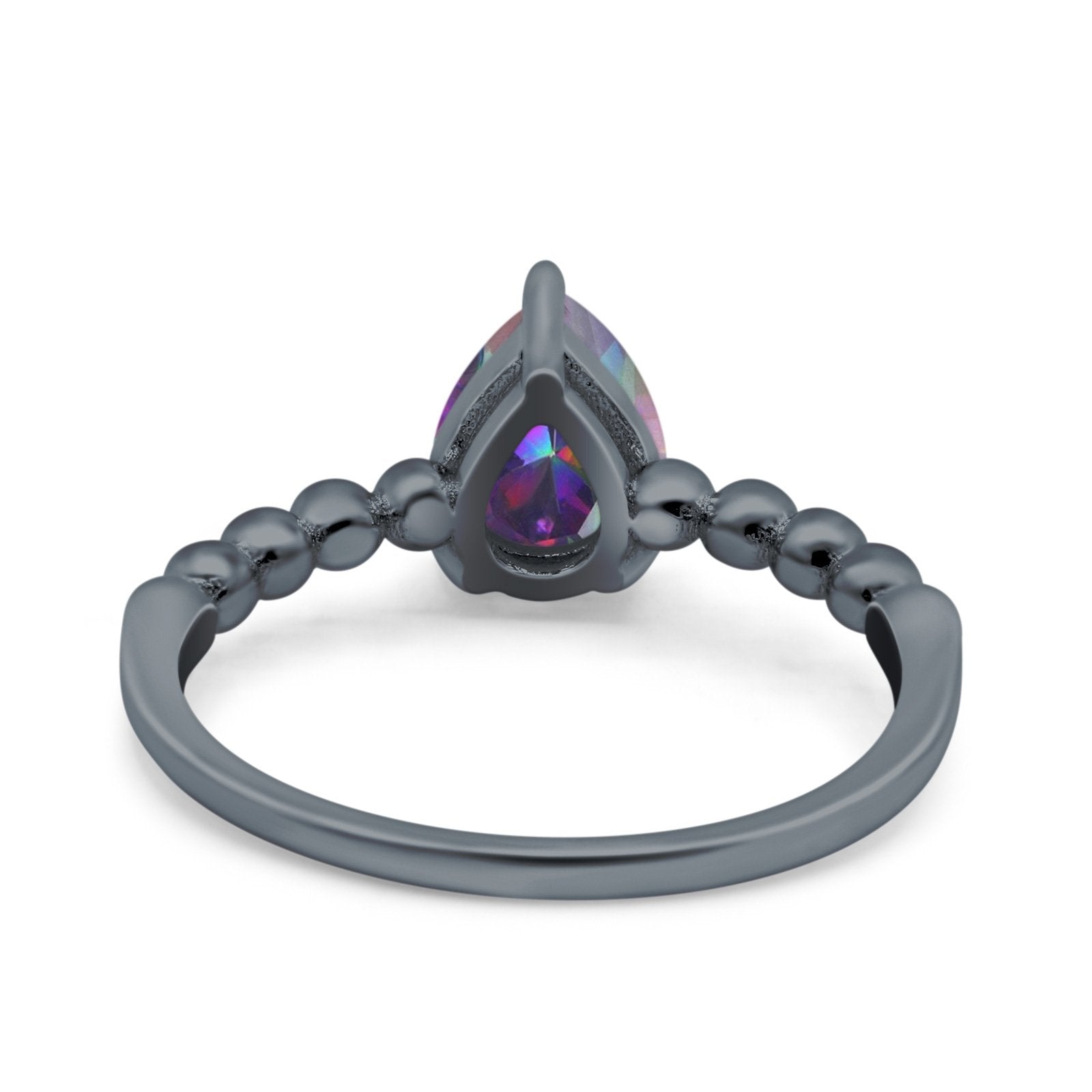 Teardrop Art Deco Pear Wedding Engagement Ring Round Simulated Cubic Zirconia 925 Sterling Silver