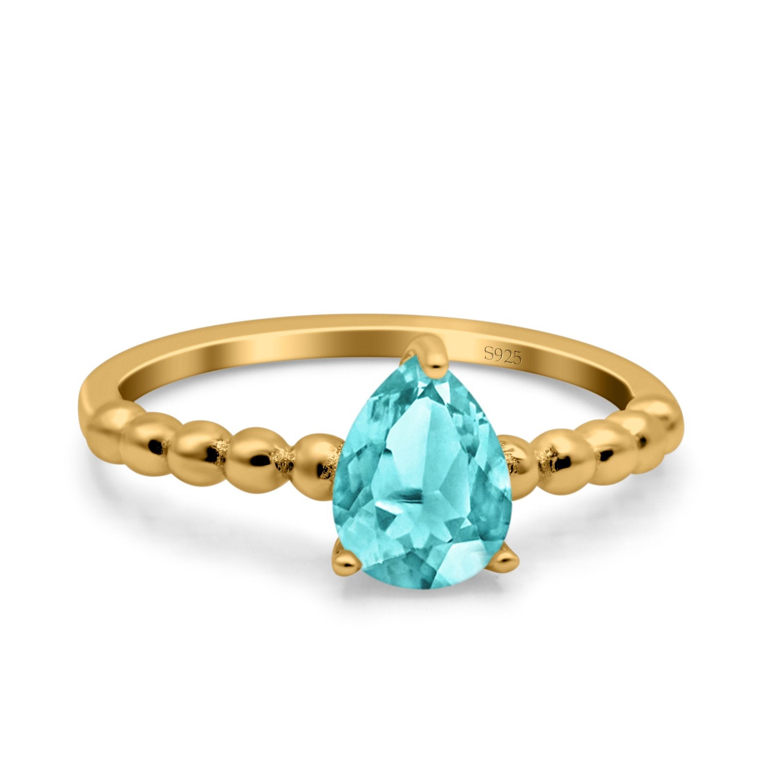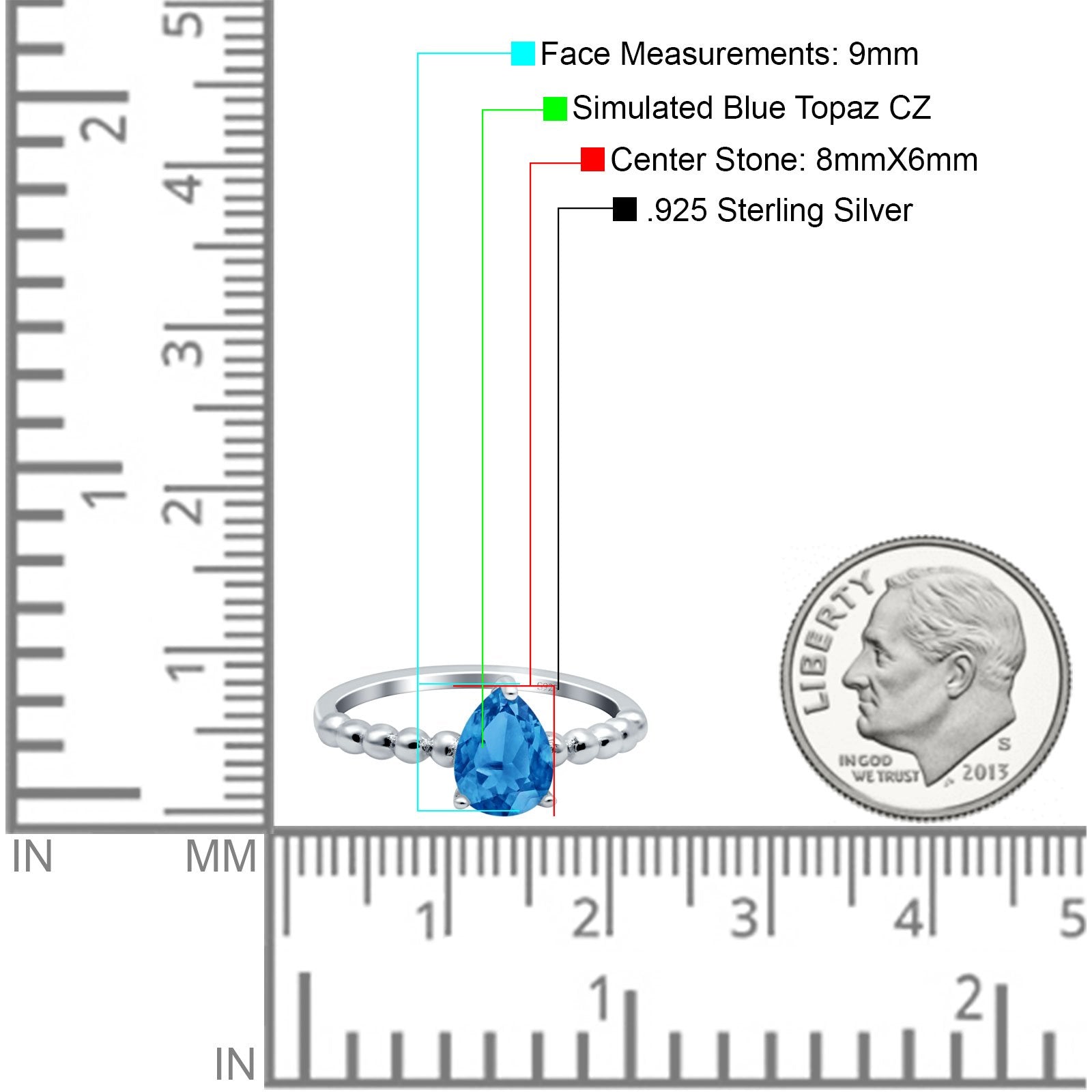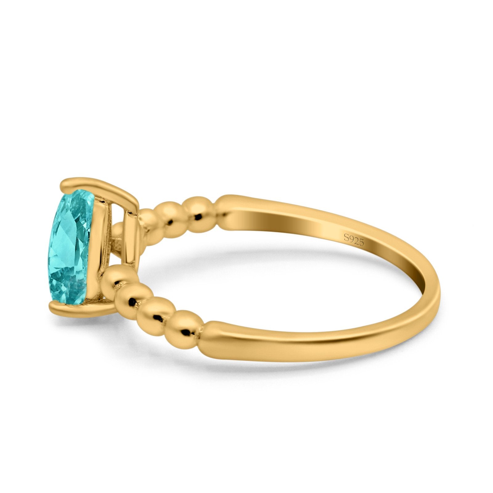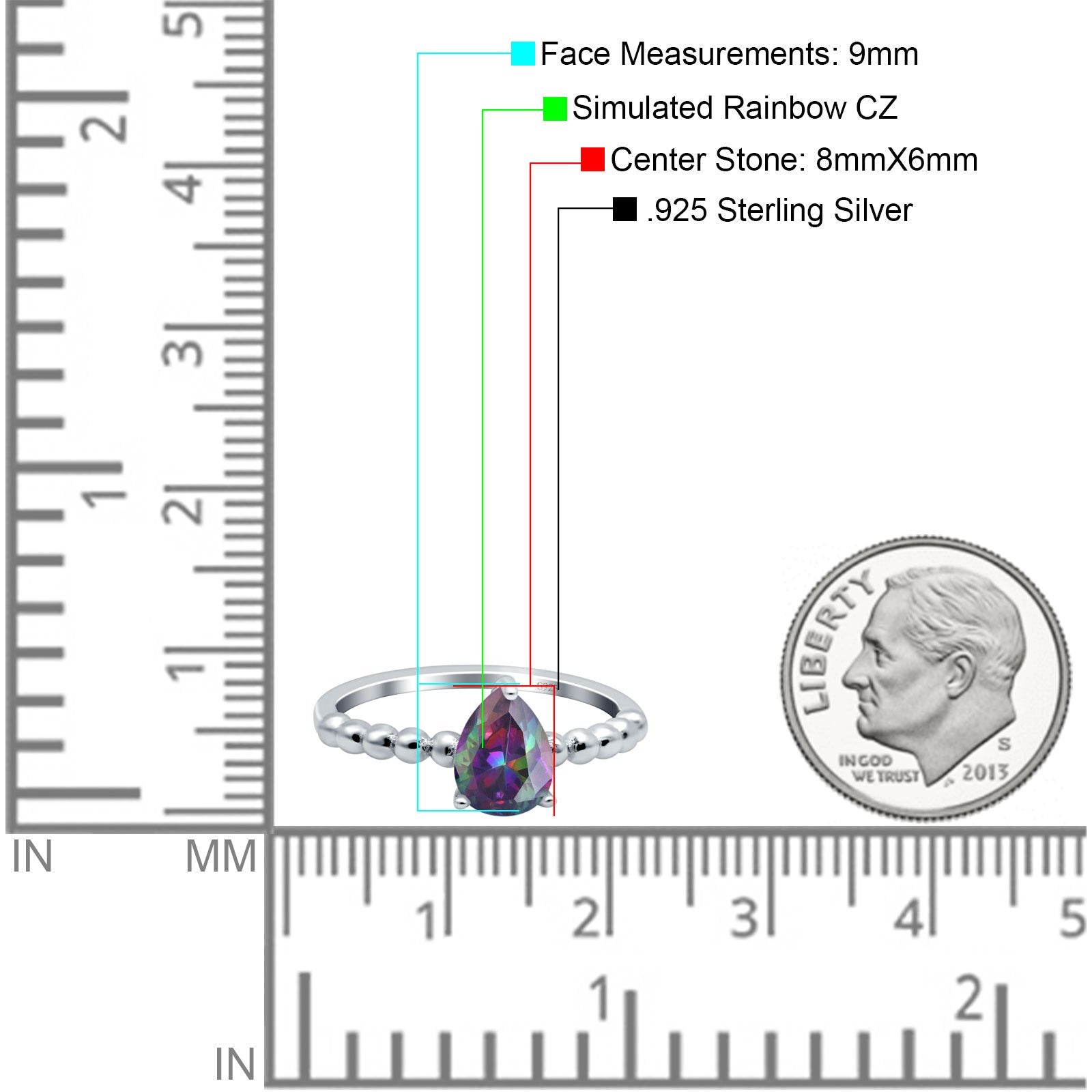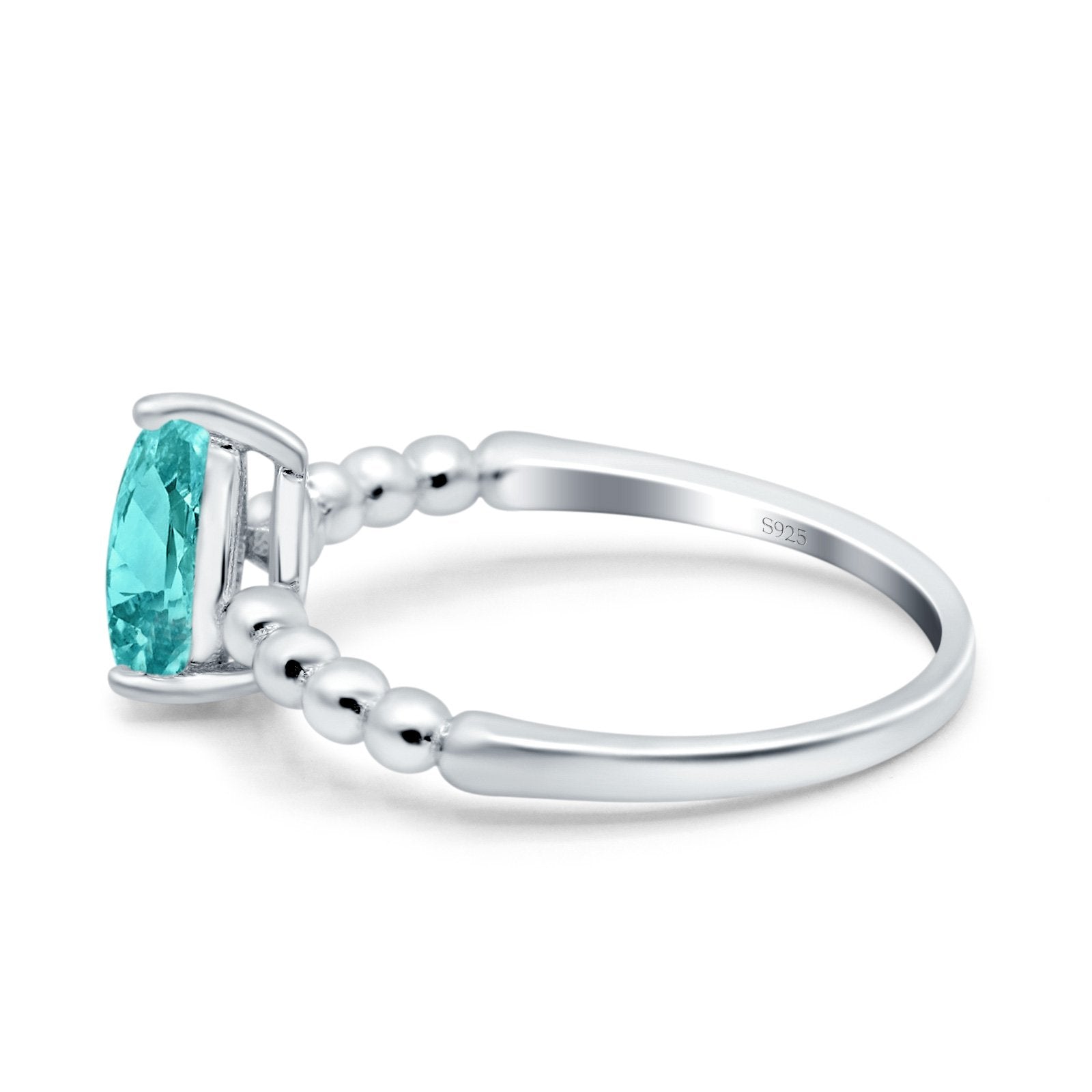 Teardrop Art Deco Pear Wedding Engagement Ring Round Simulated Cubic Zirconia 925 Sterling Silver