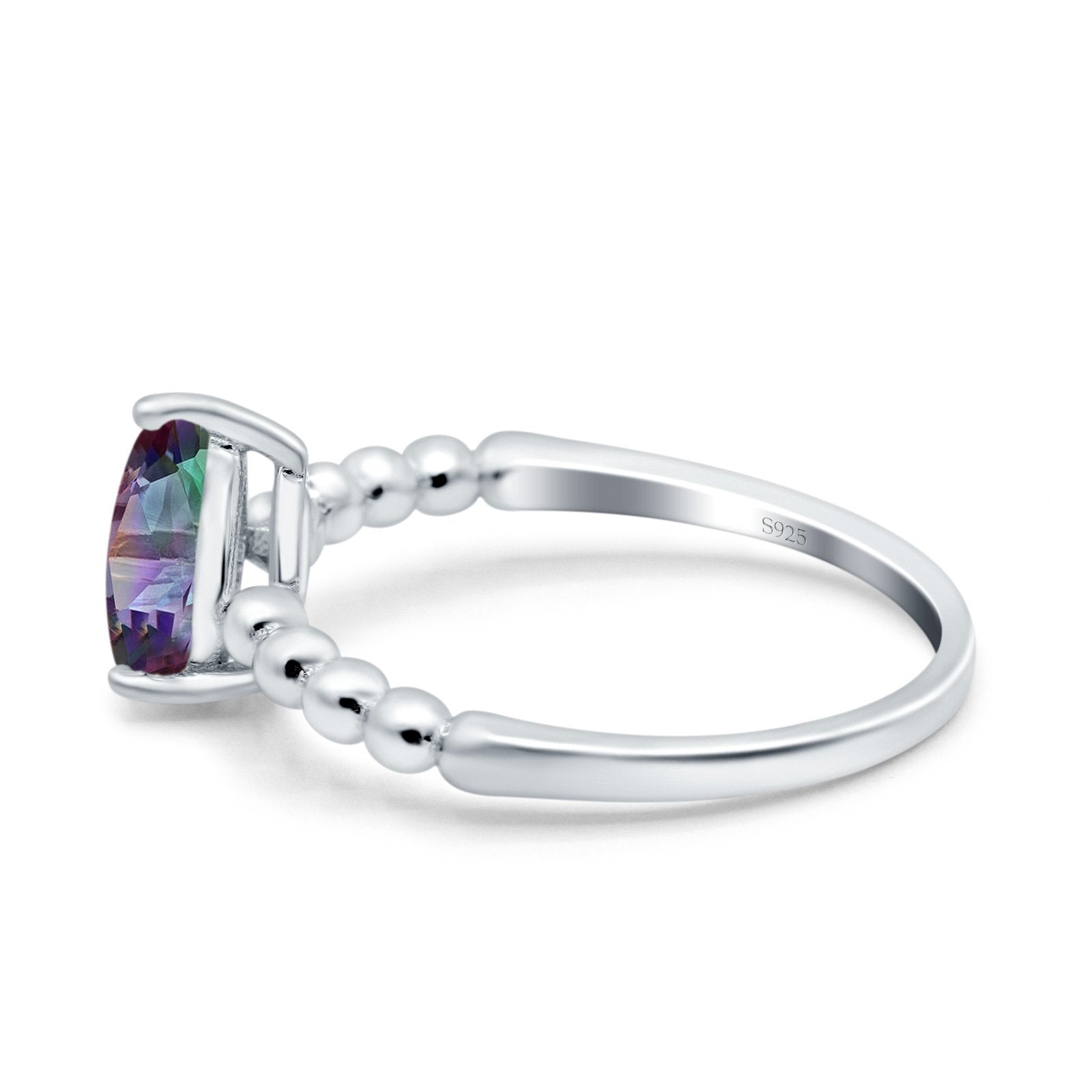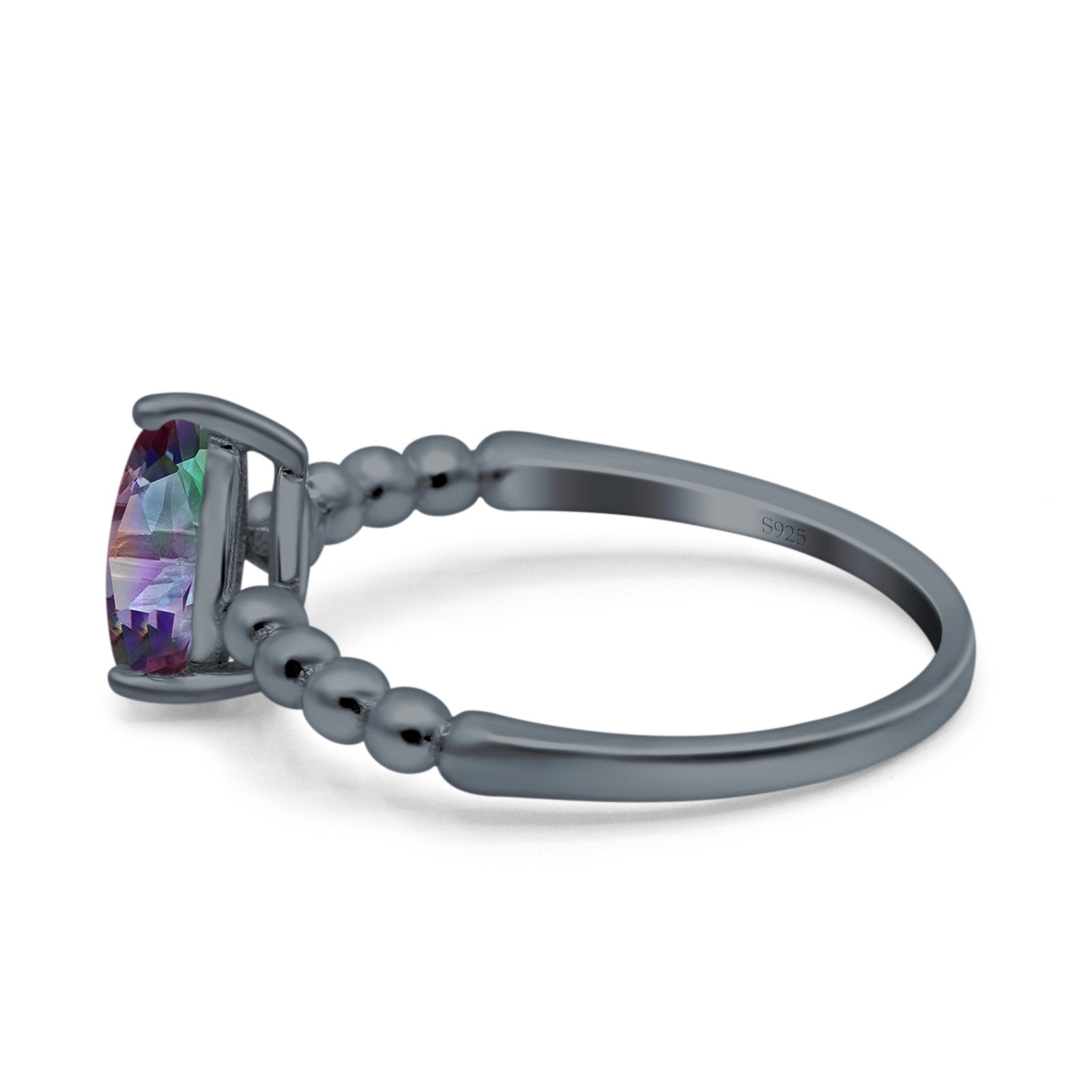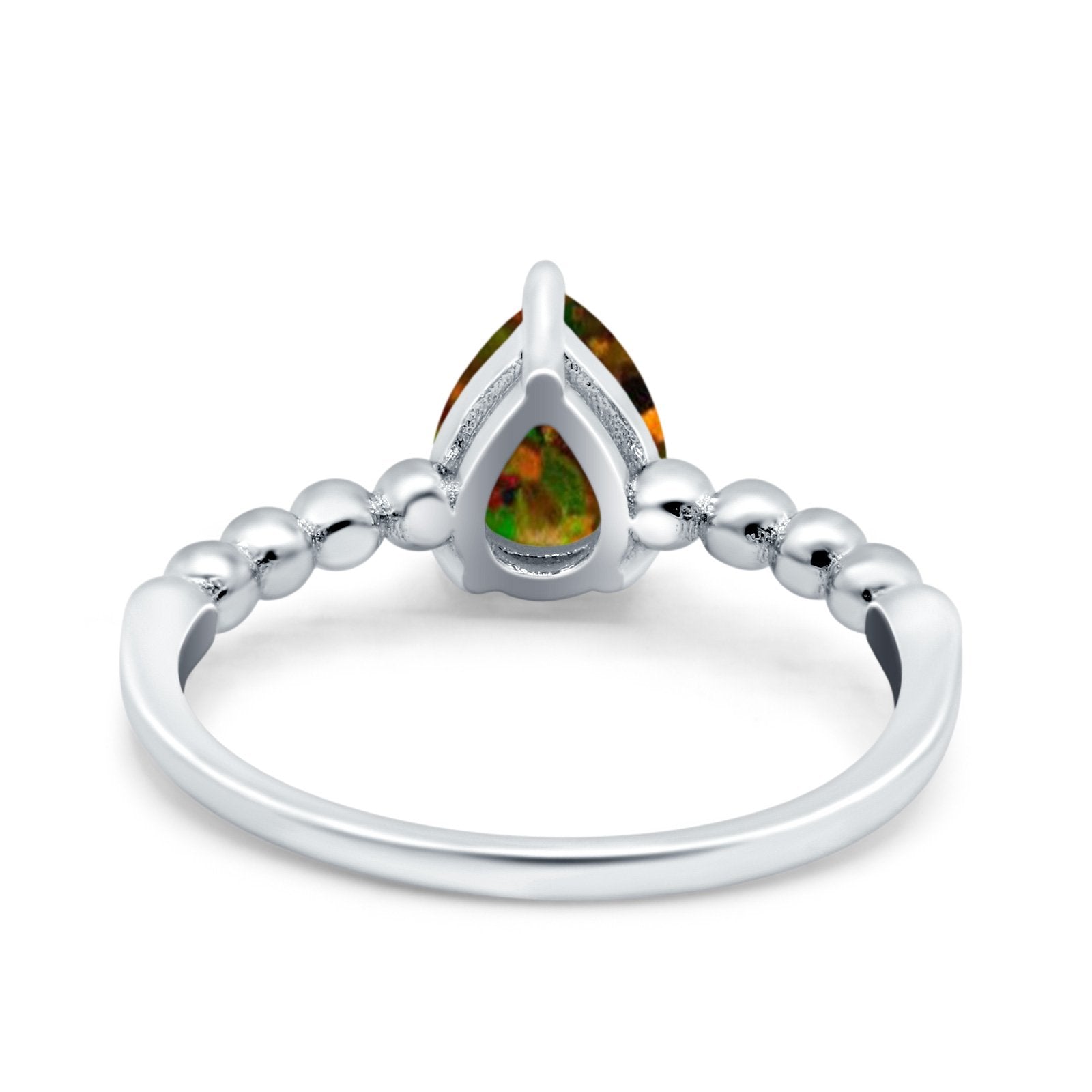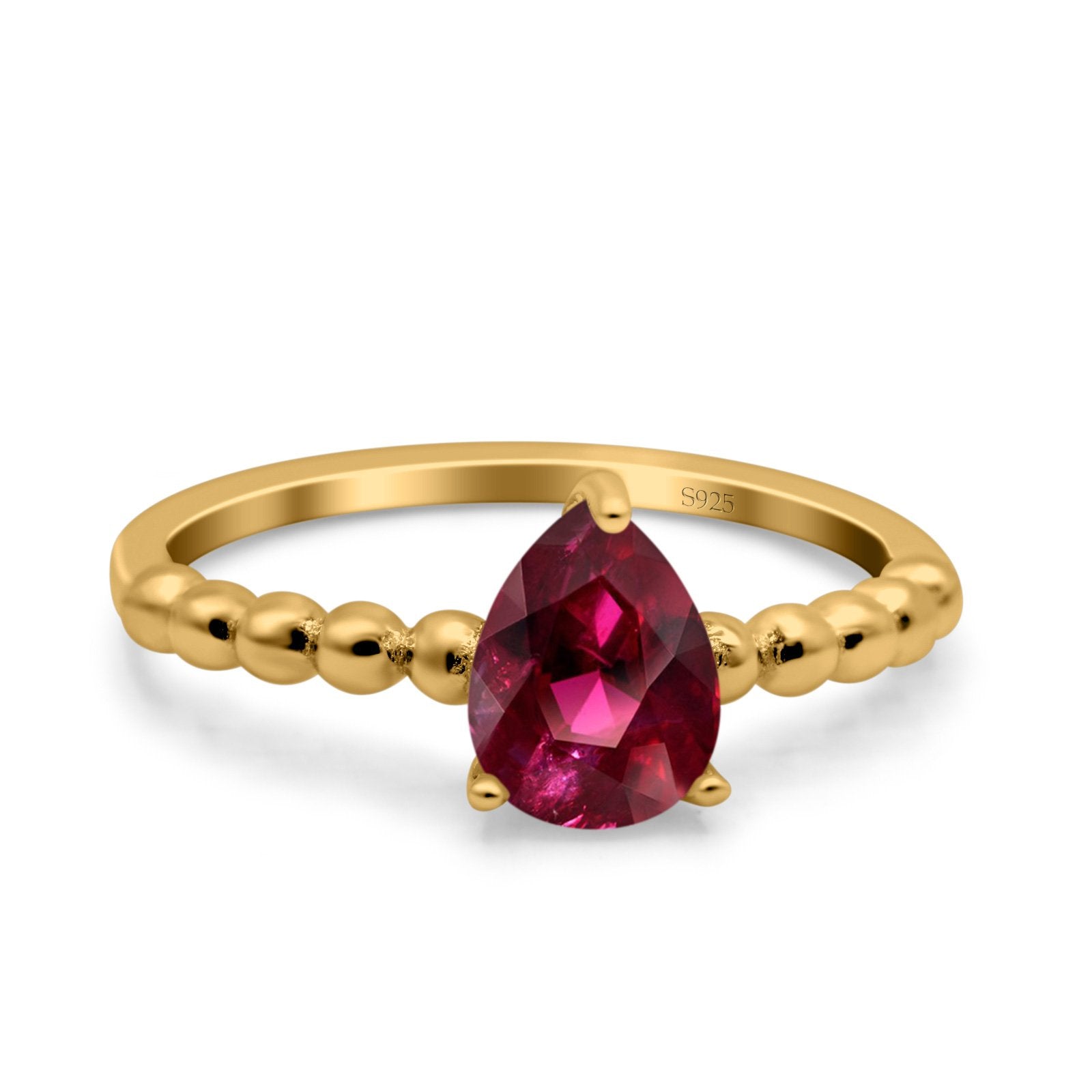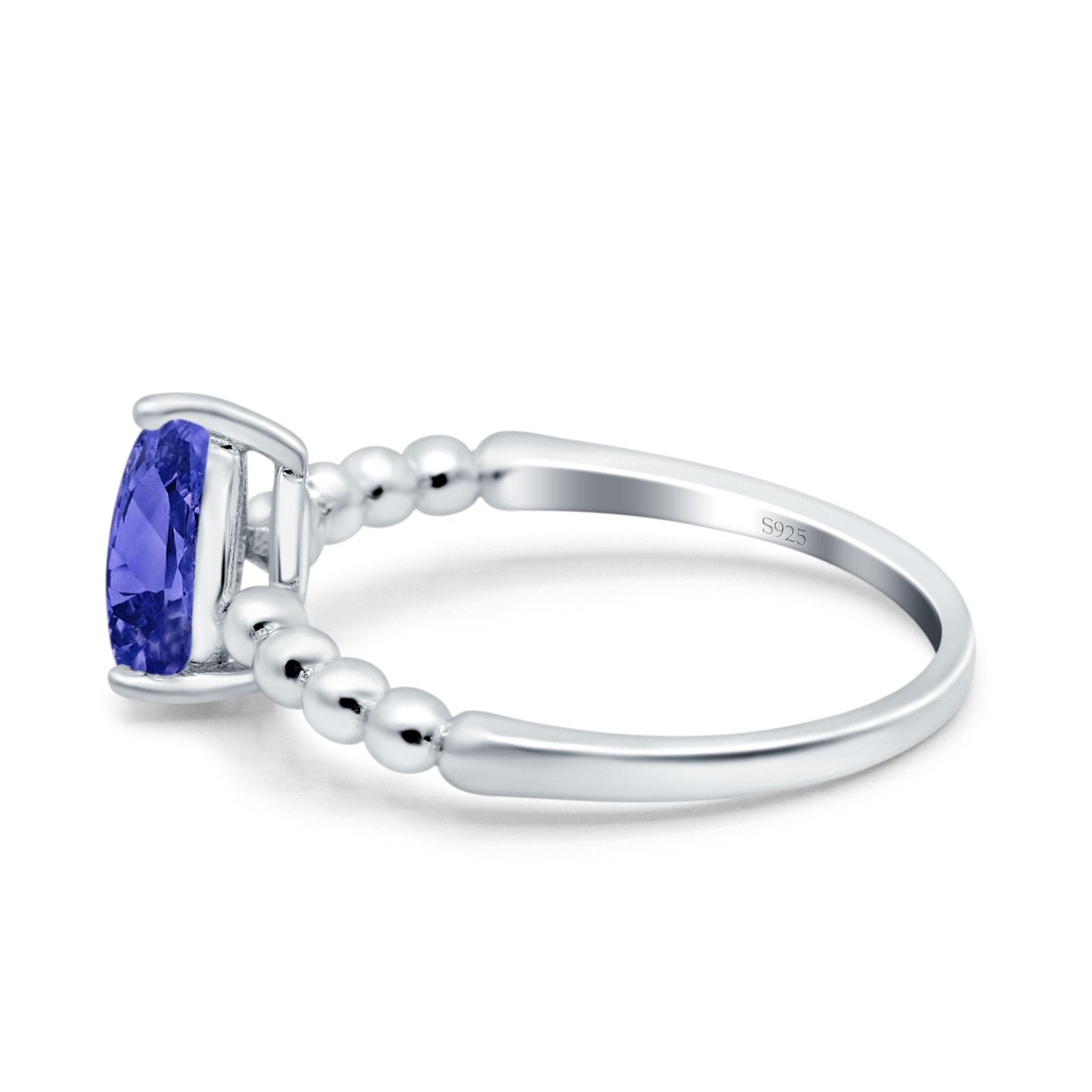 Teardrop Art Deco Pear Wedding Engagement Ring Round Simulated Cubic Zirconia 925 Sterling Silver