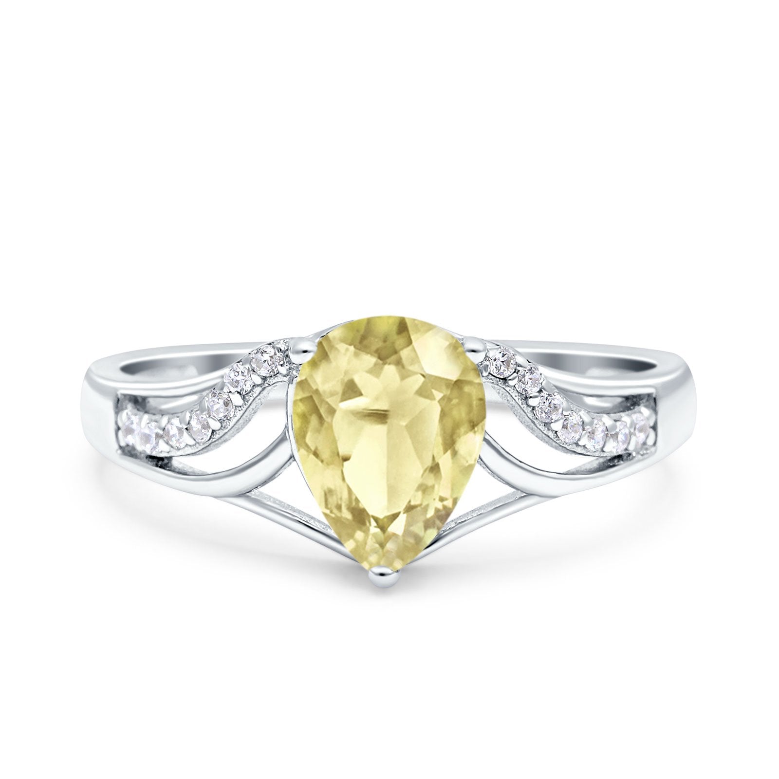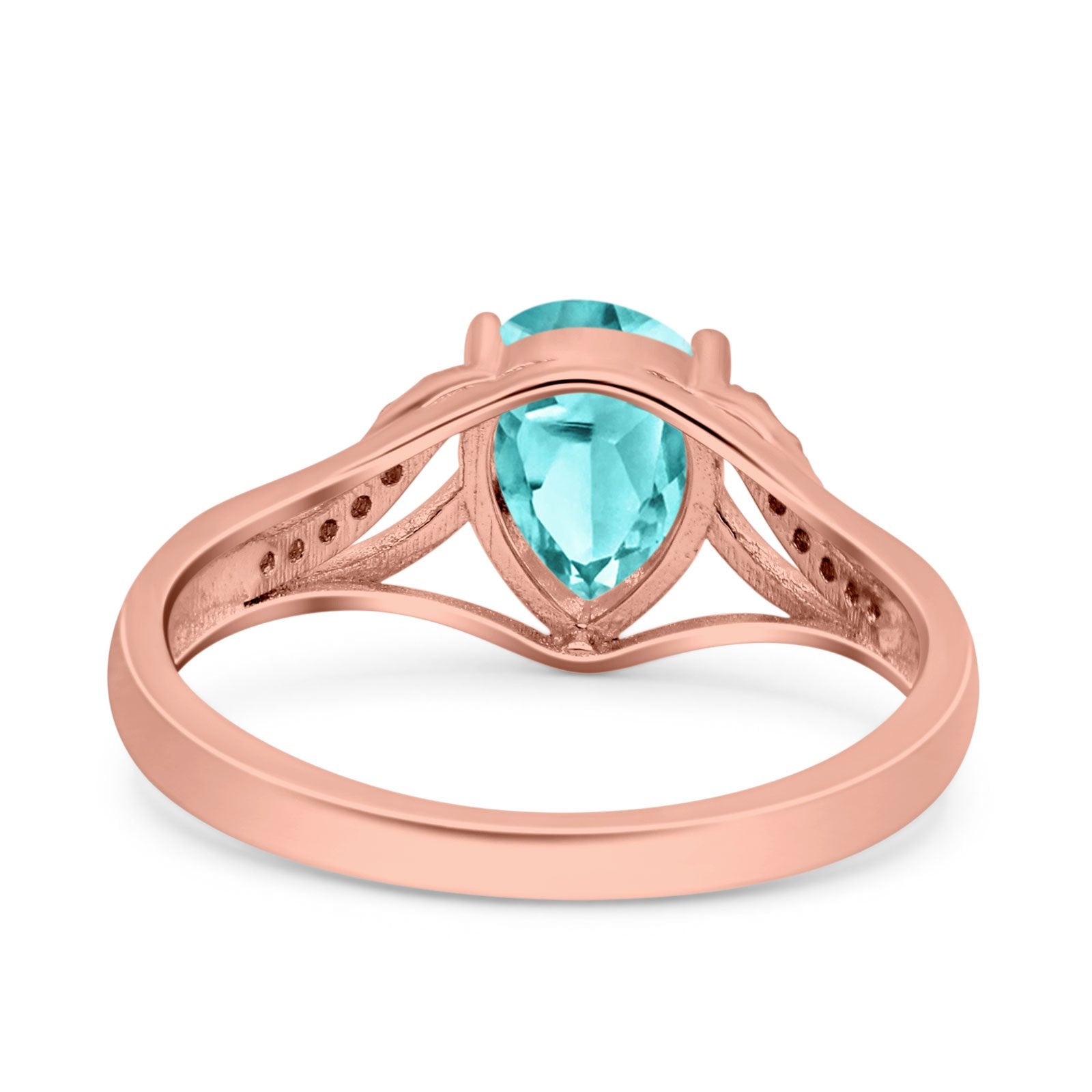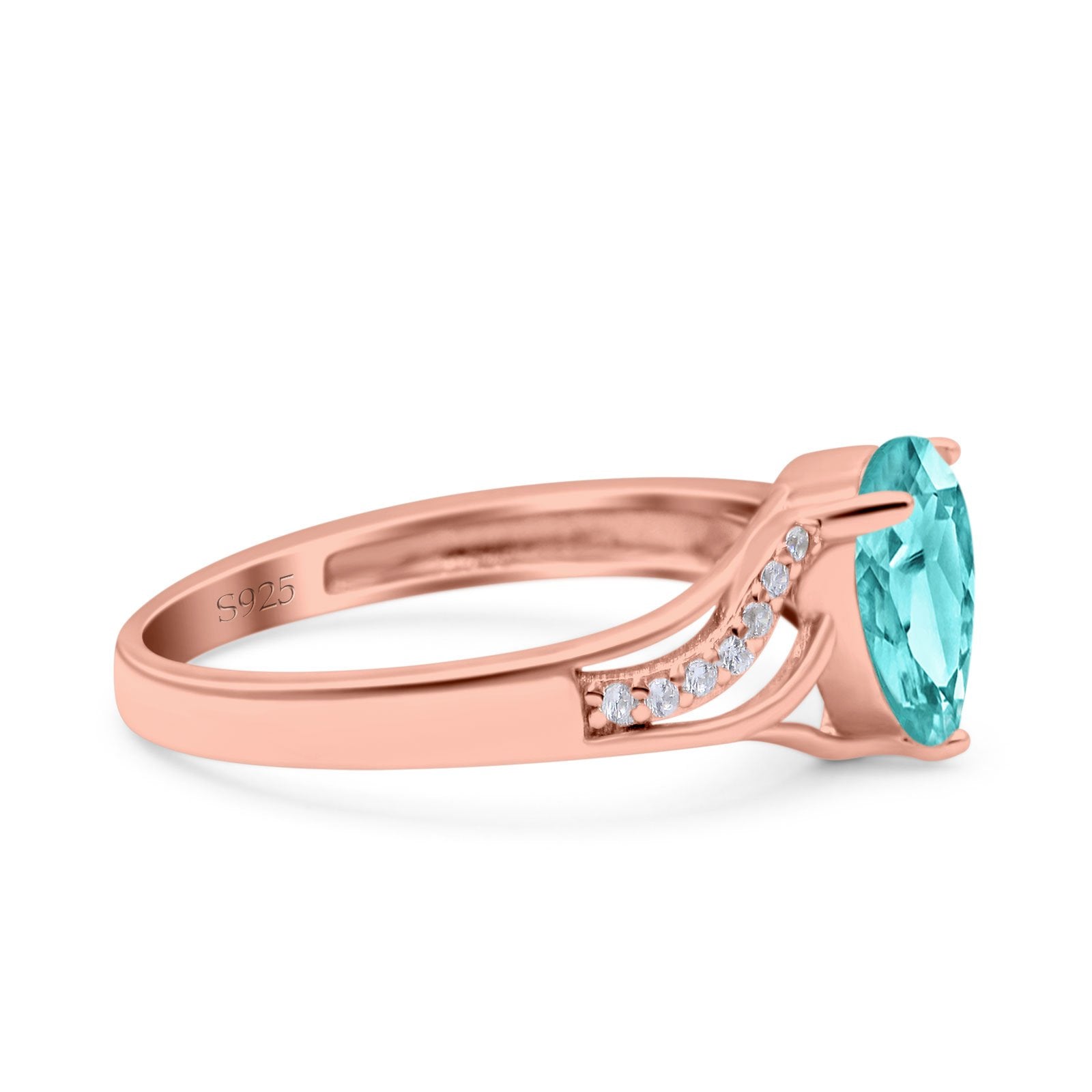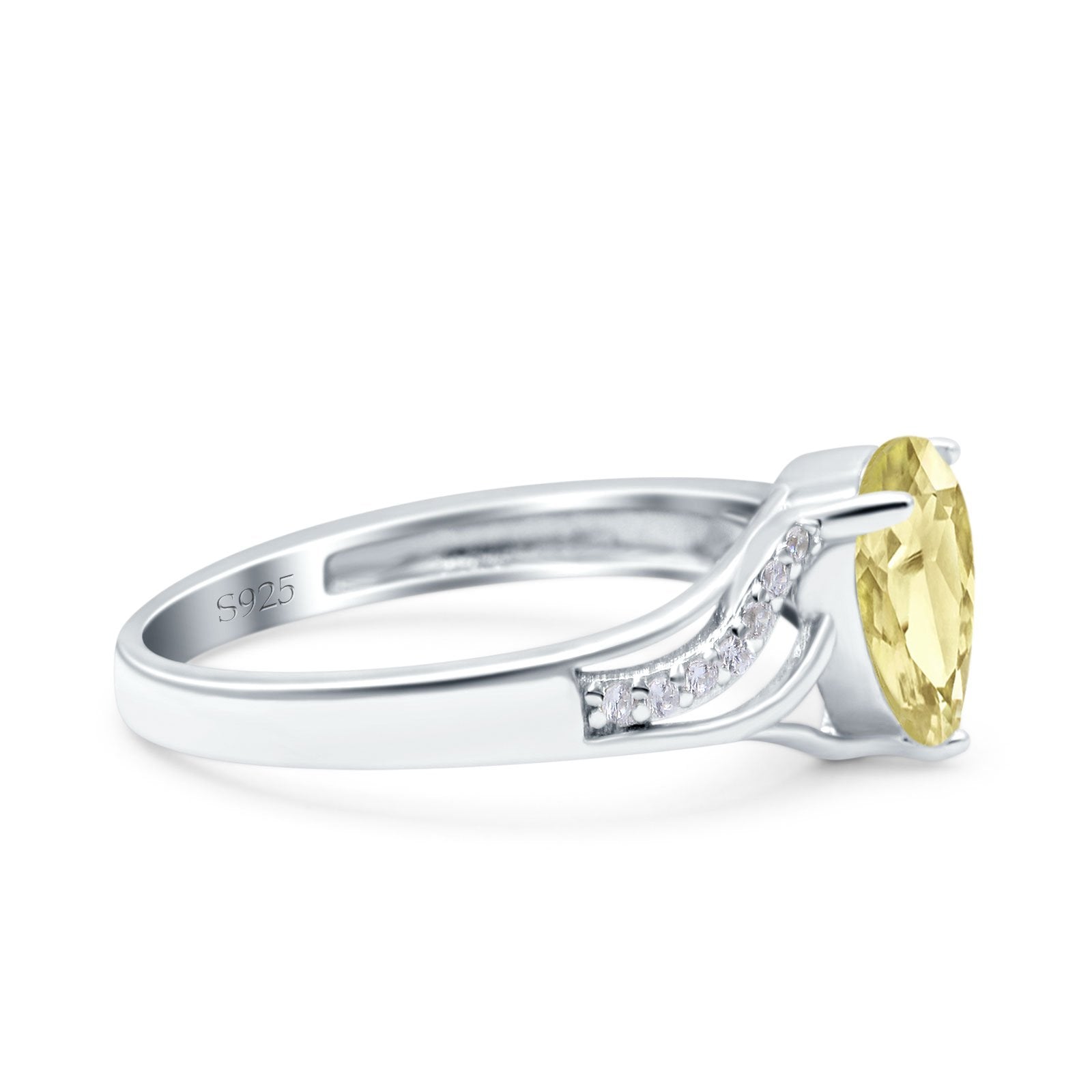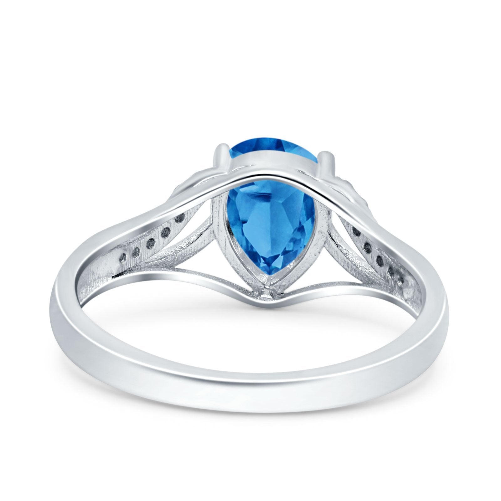 Teardrop Dainty Art Deco Pear Wedding Engagement Bridal Ring Round Simulated Cubic Zirconia 925 Sterling Silver