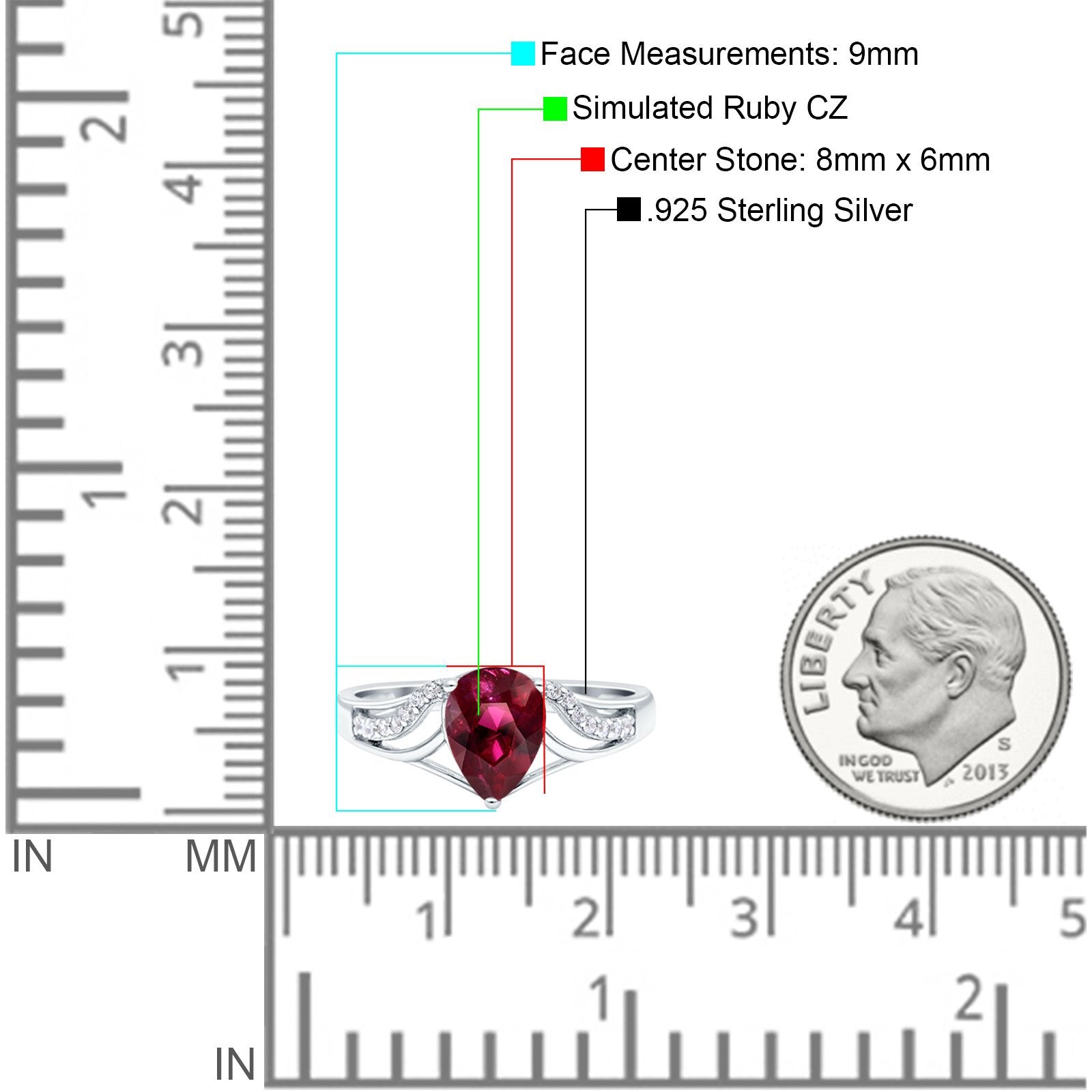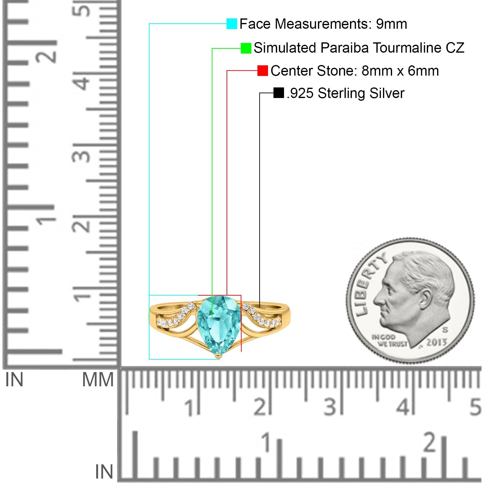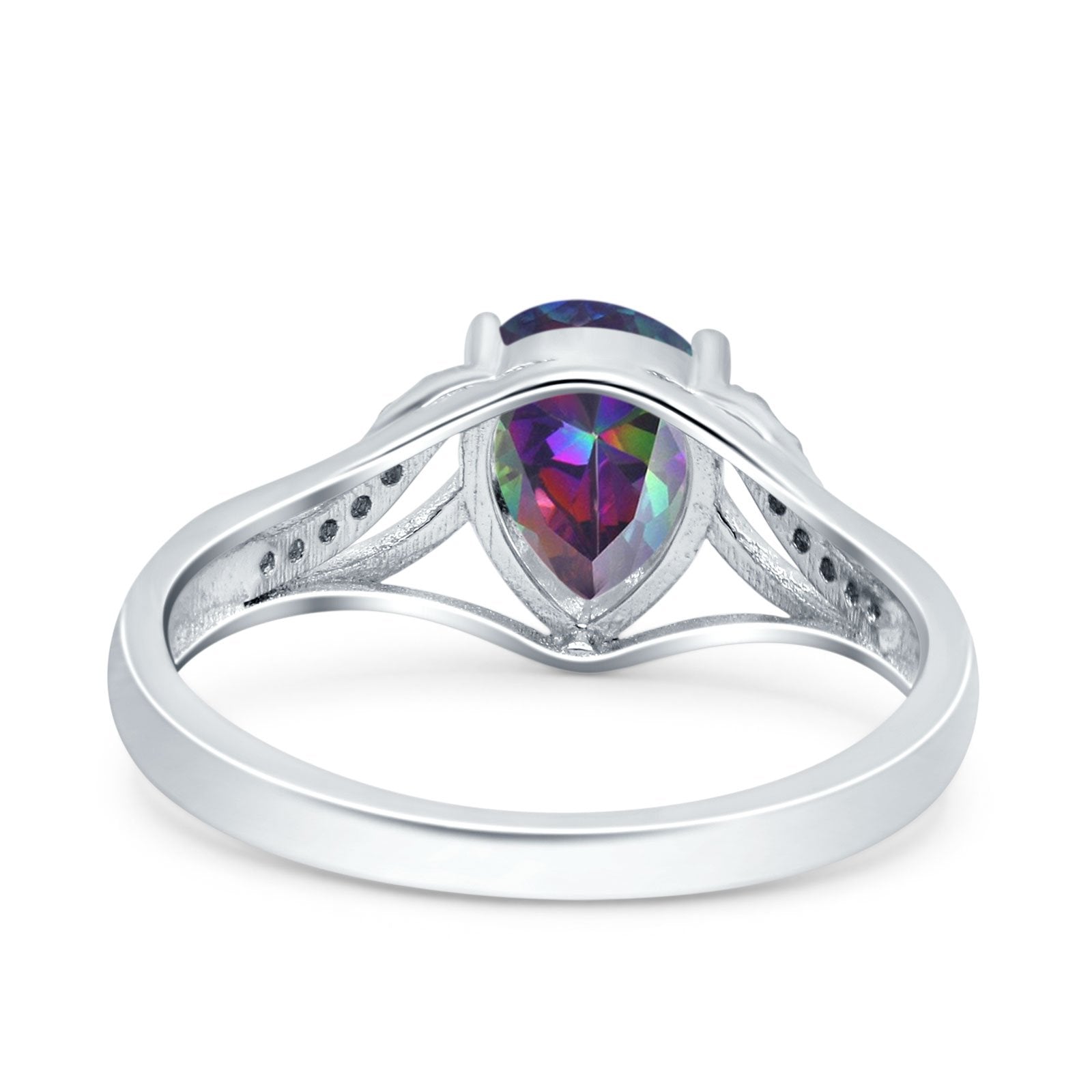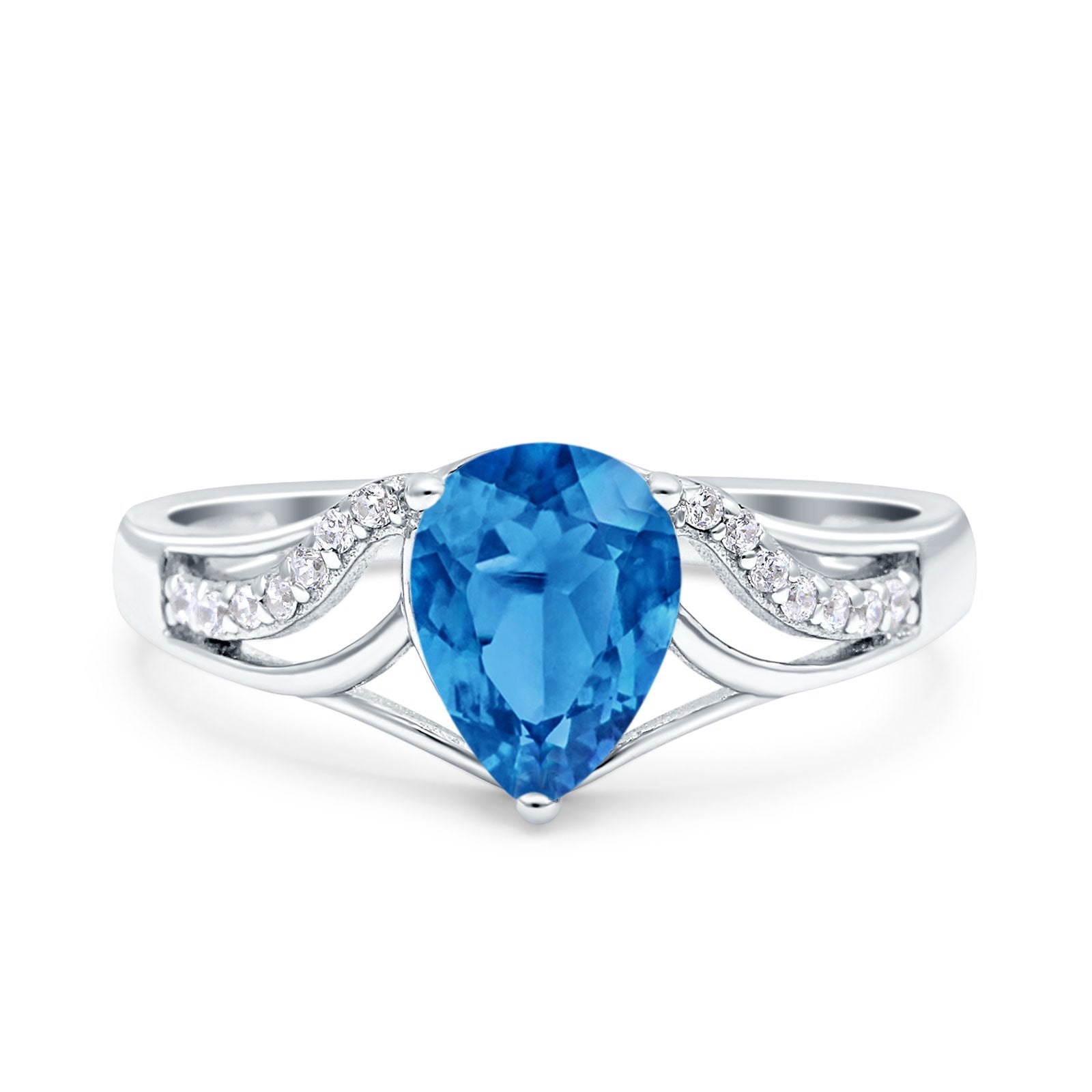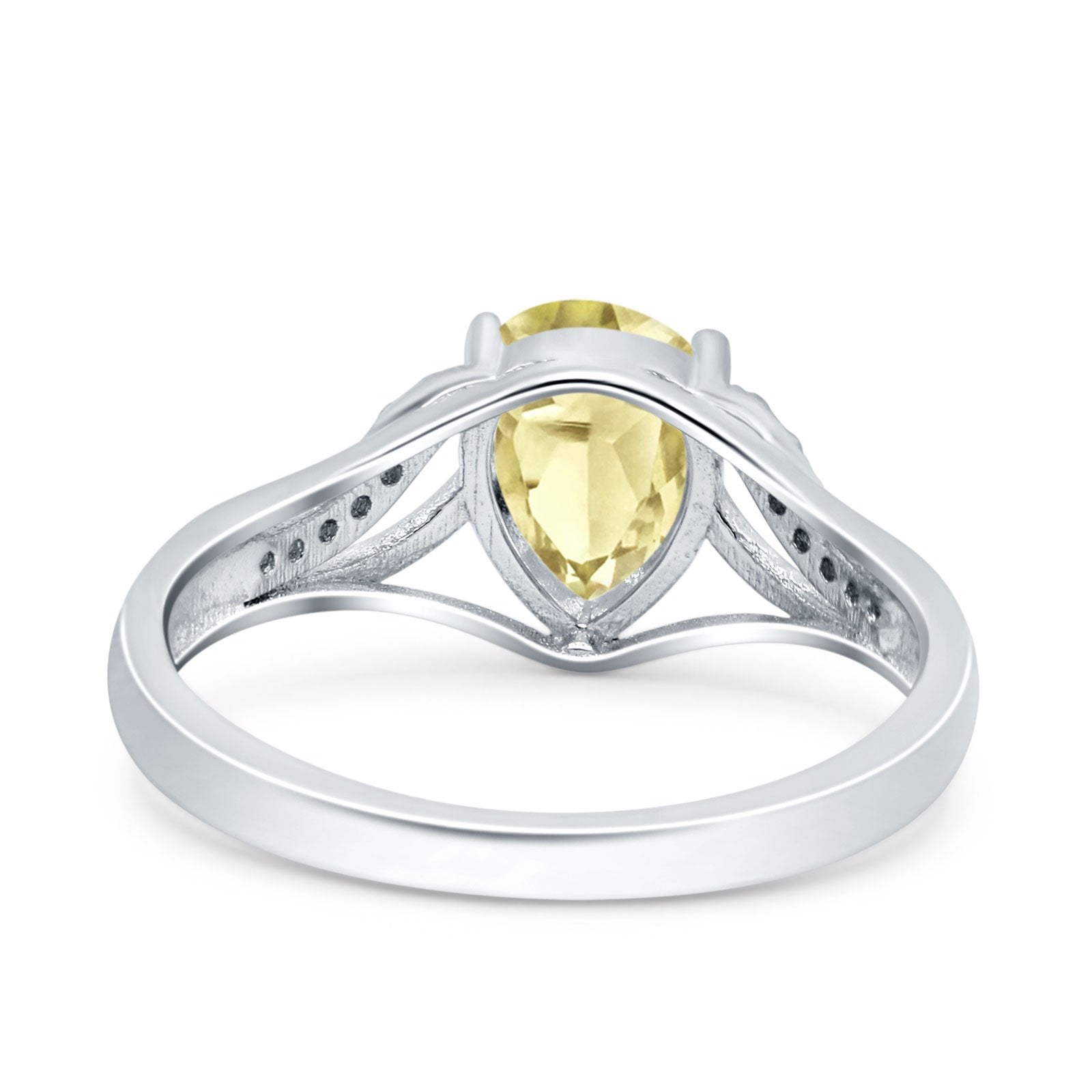 Teardrop Dainty Art Deco Pear Wedding Engagement Bridal Ring Round Simulated Cubic Zirconia 925 Sterling Silver