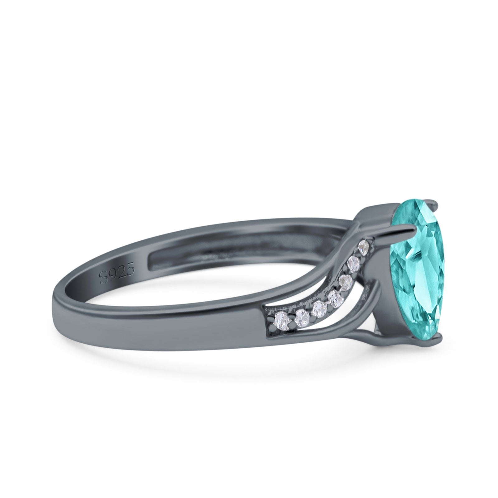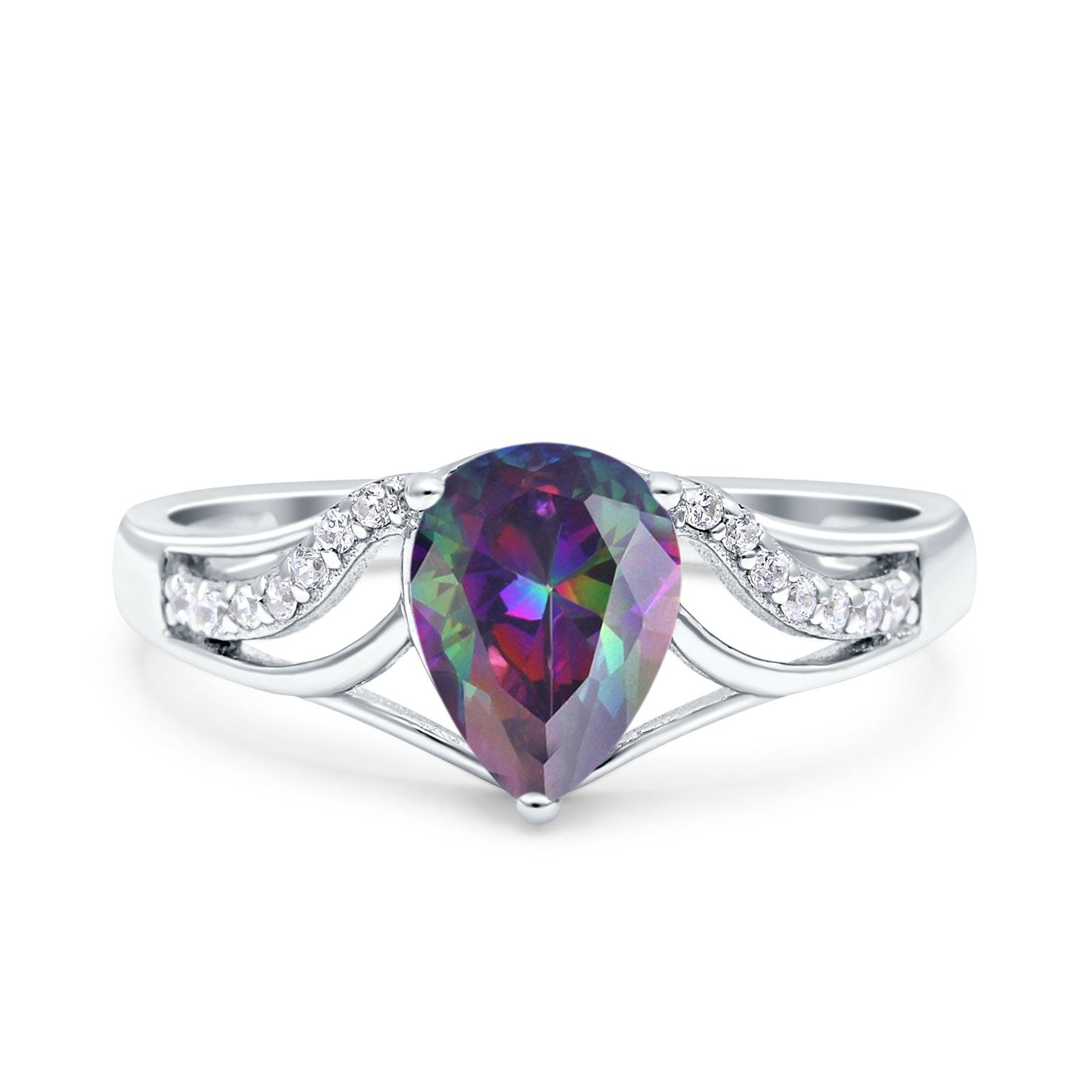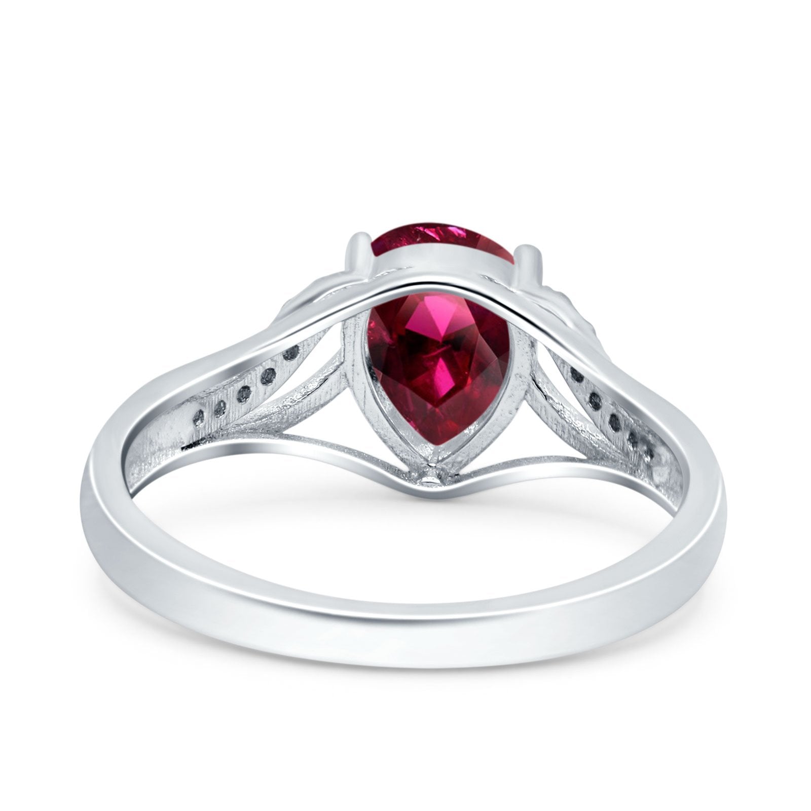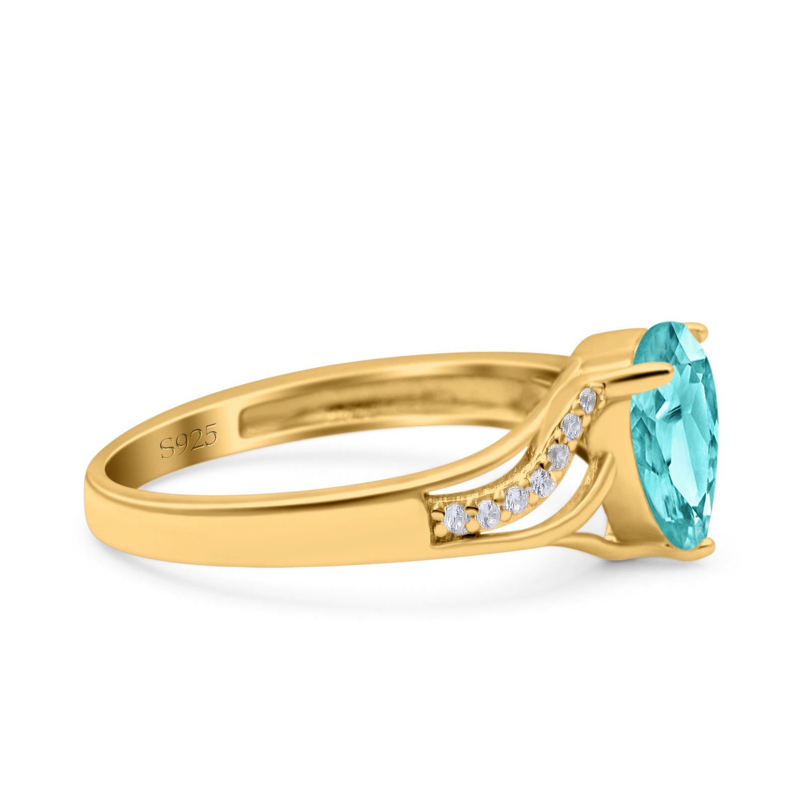 Teardrop Dainty Art Deco Pear Wedding Engagement Bridal Ring Round Simulated Cubic Zirconia 925 Sterling Silver