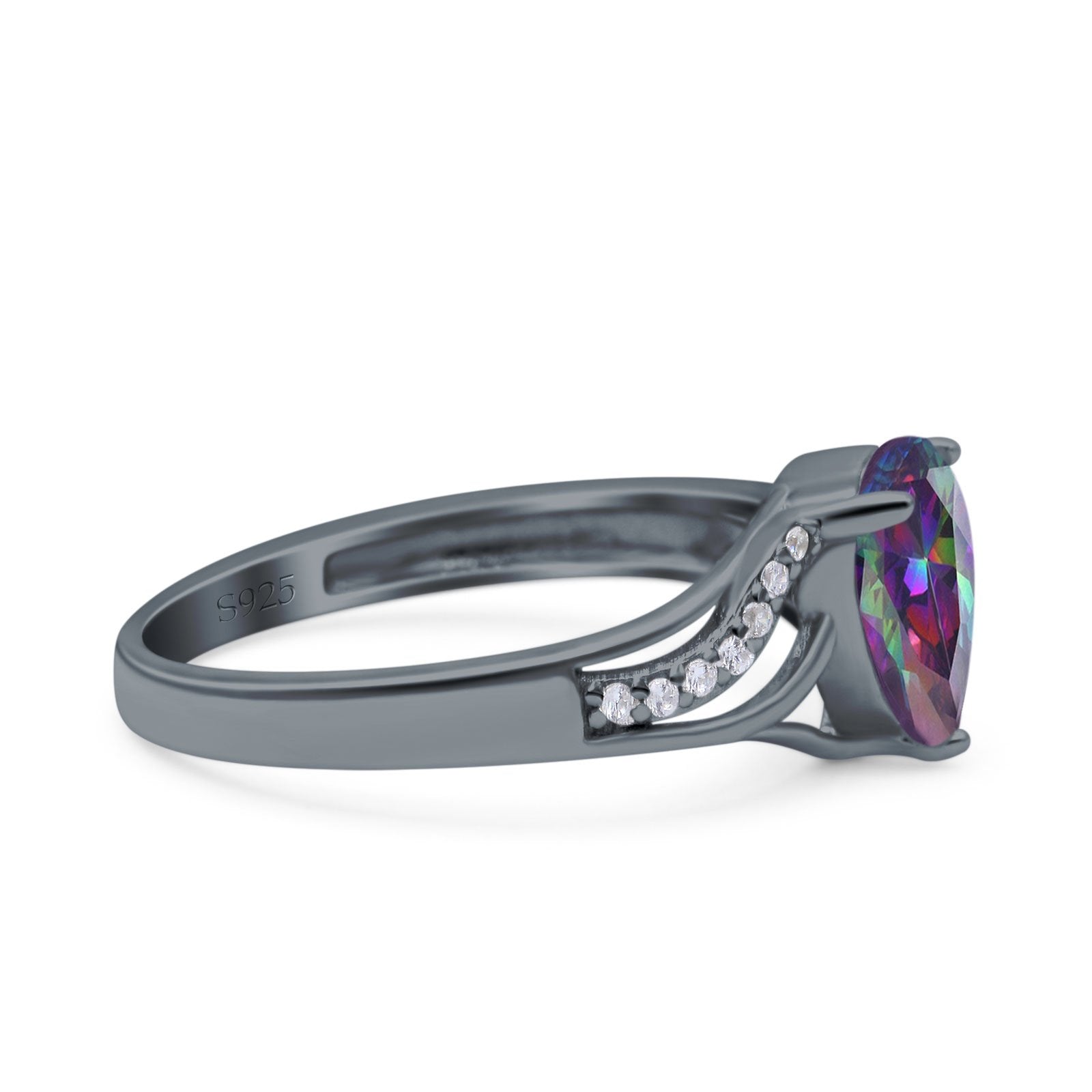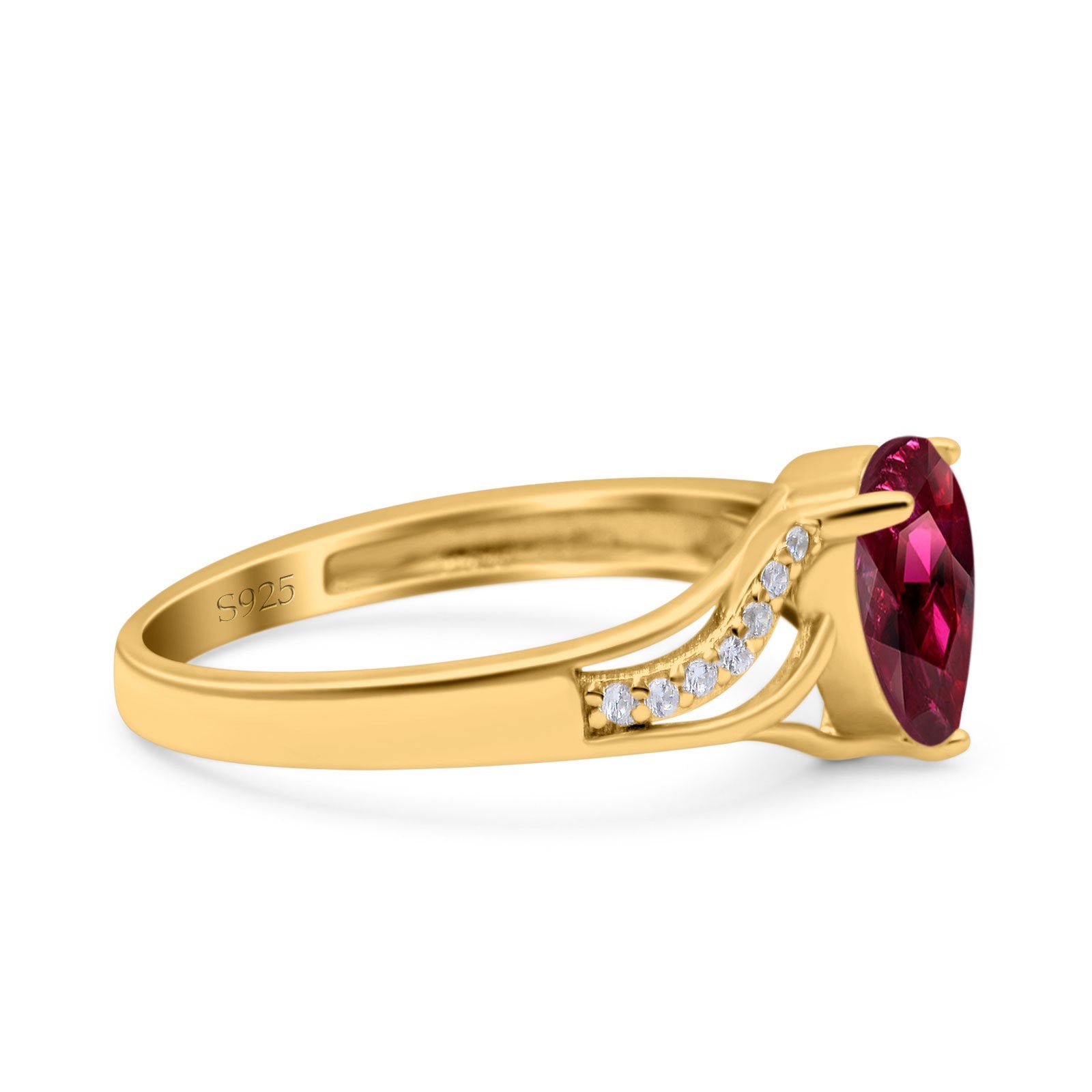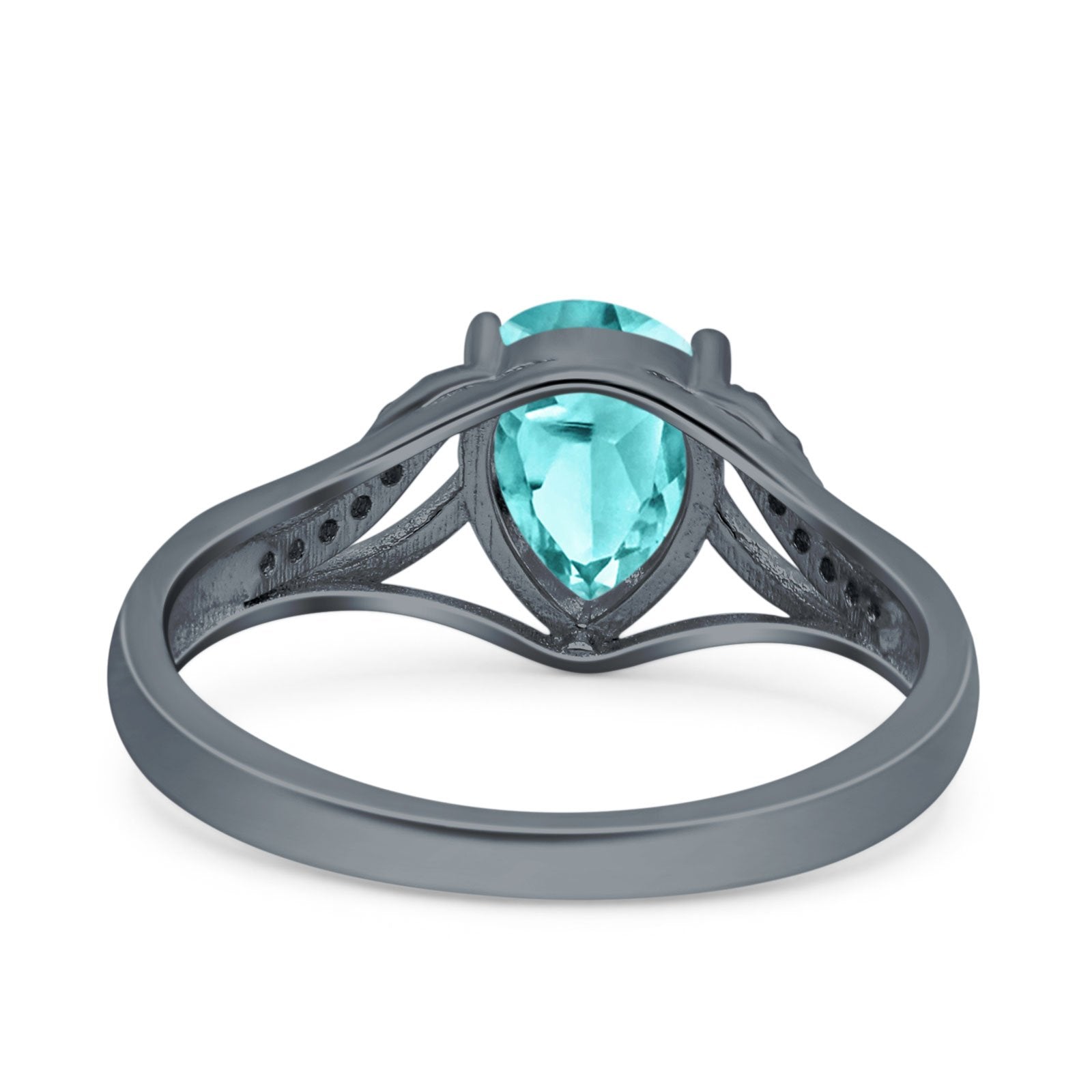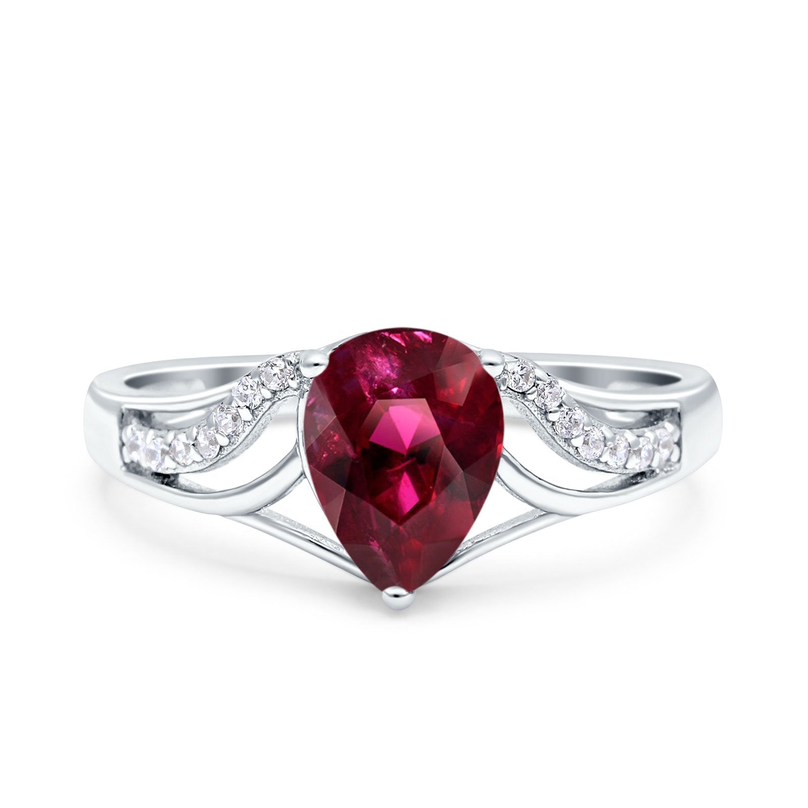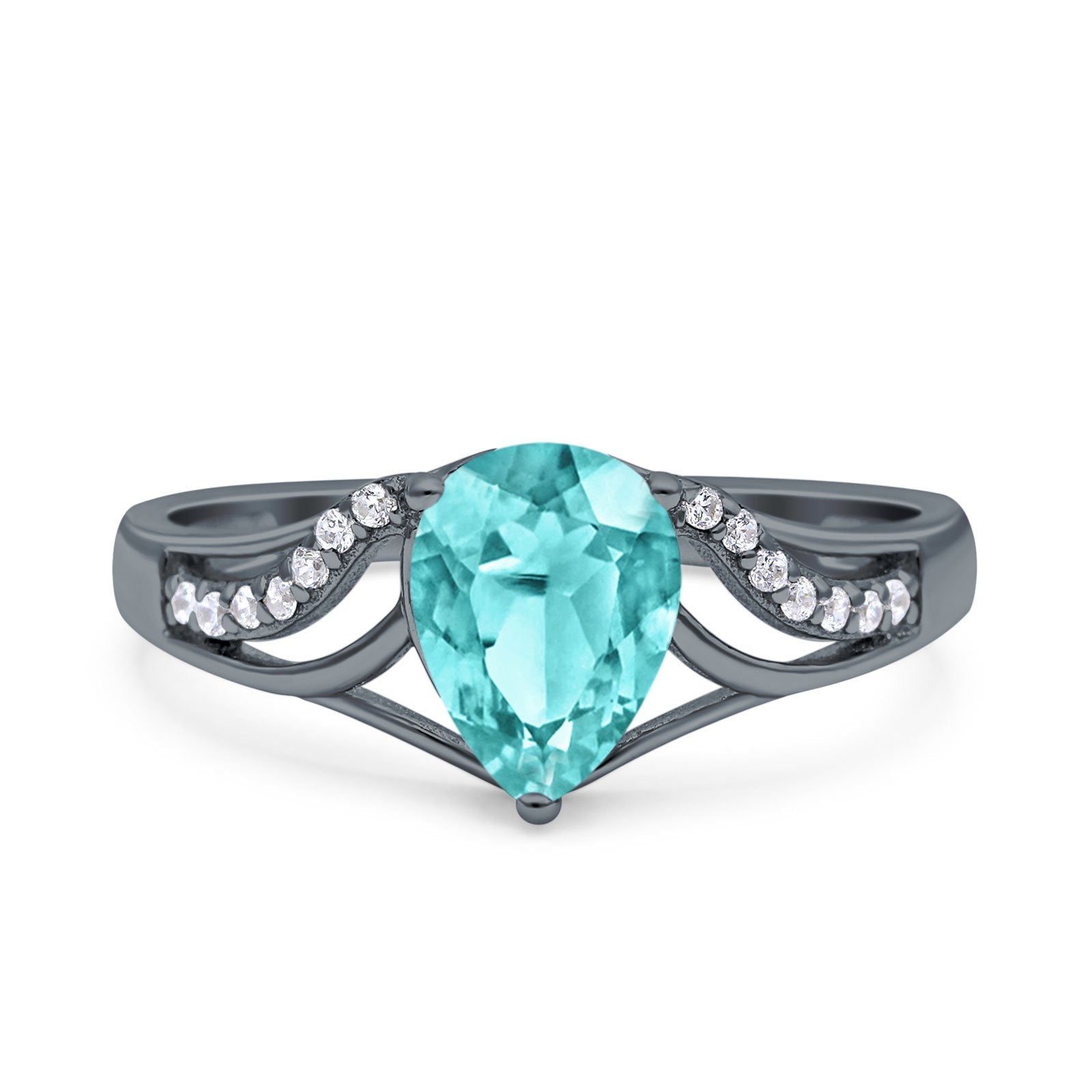 Teardrop Dainty Art Deco Pear Wedding Engagement Bridal Ring Round Simulated Cubic Zirconia 925 Sterling Silver