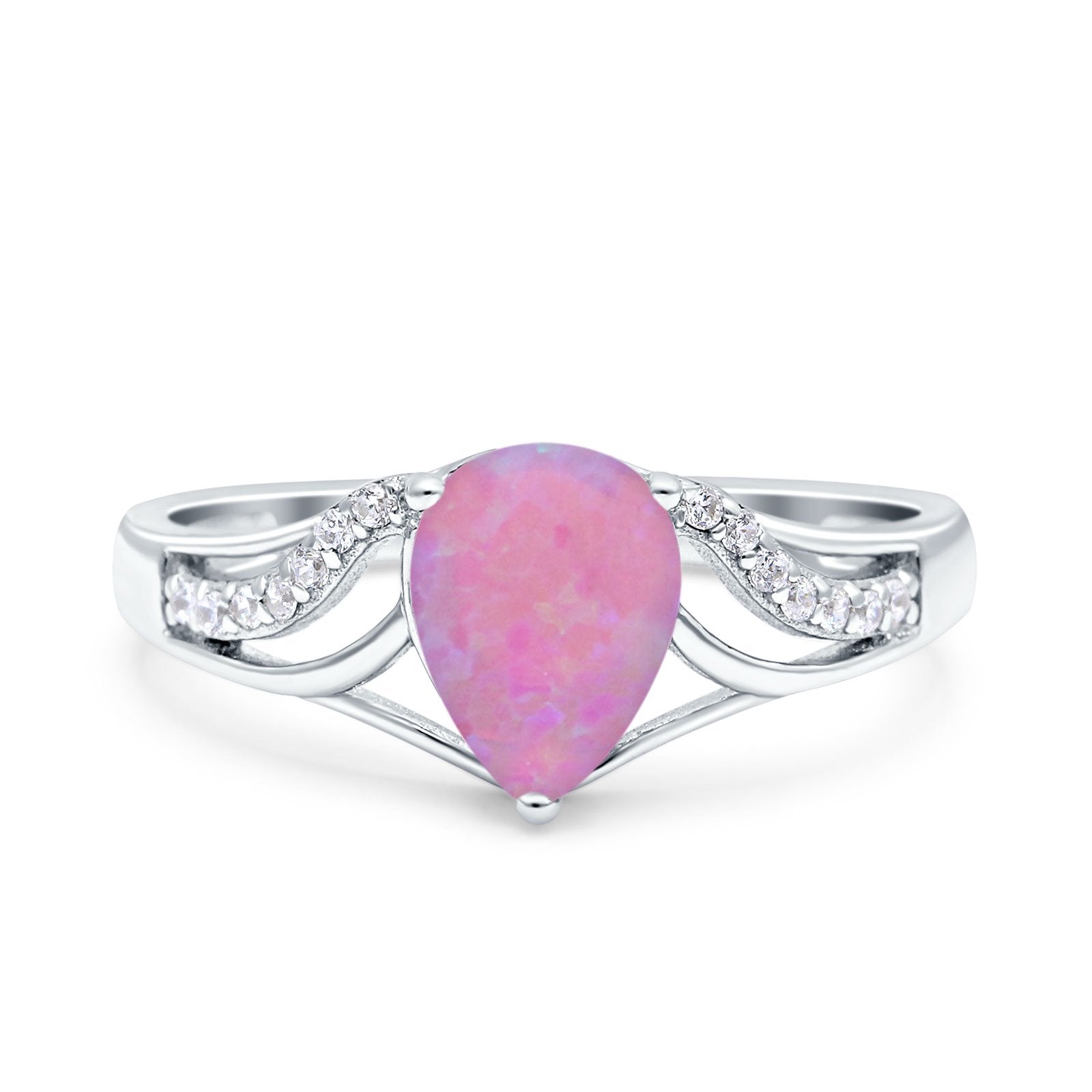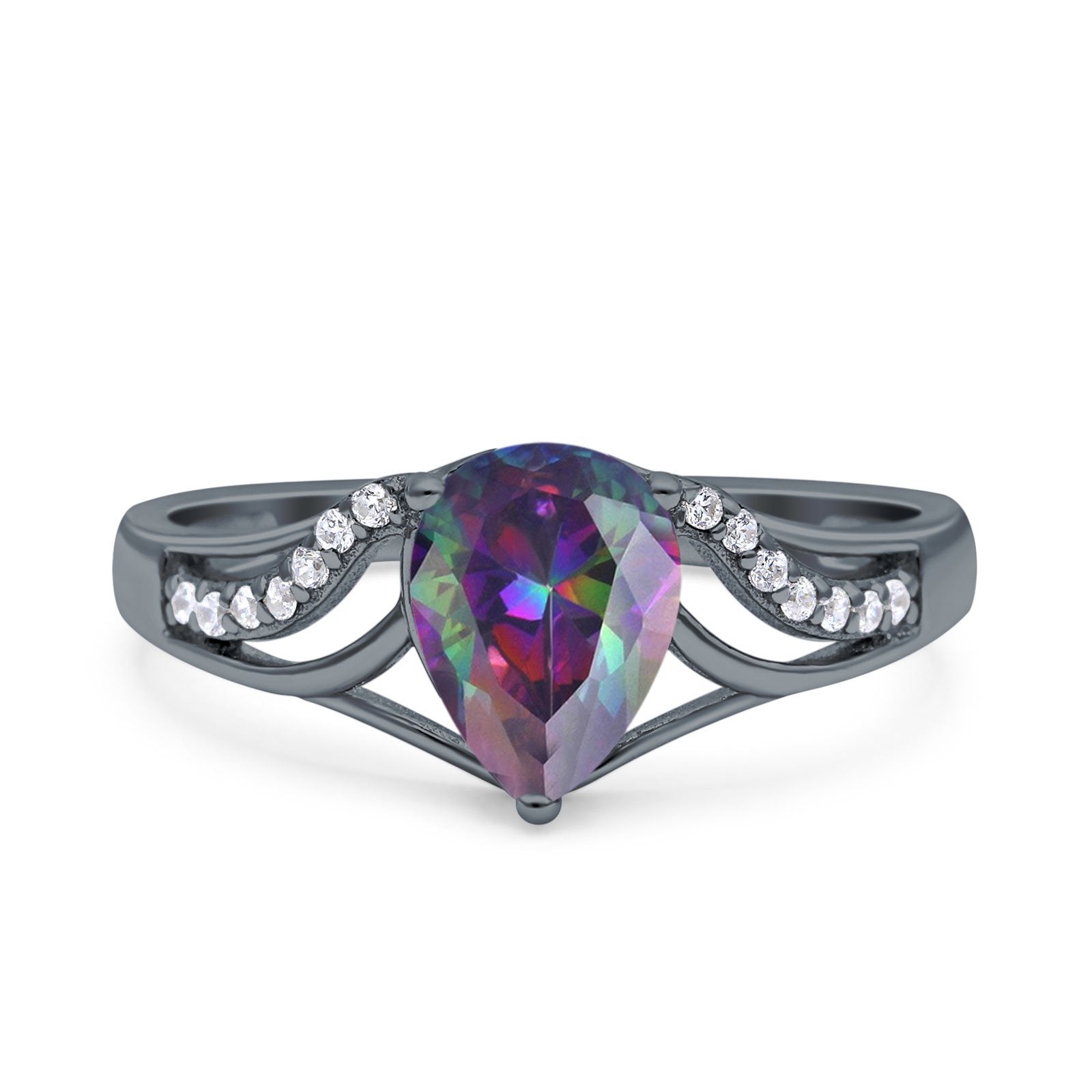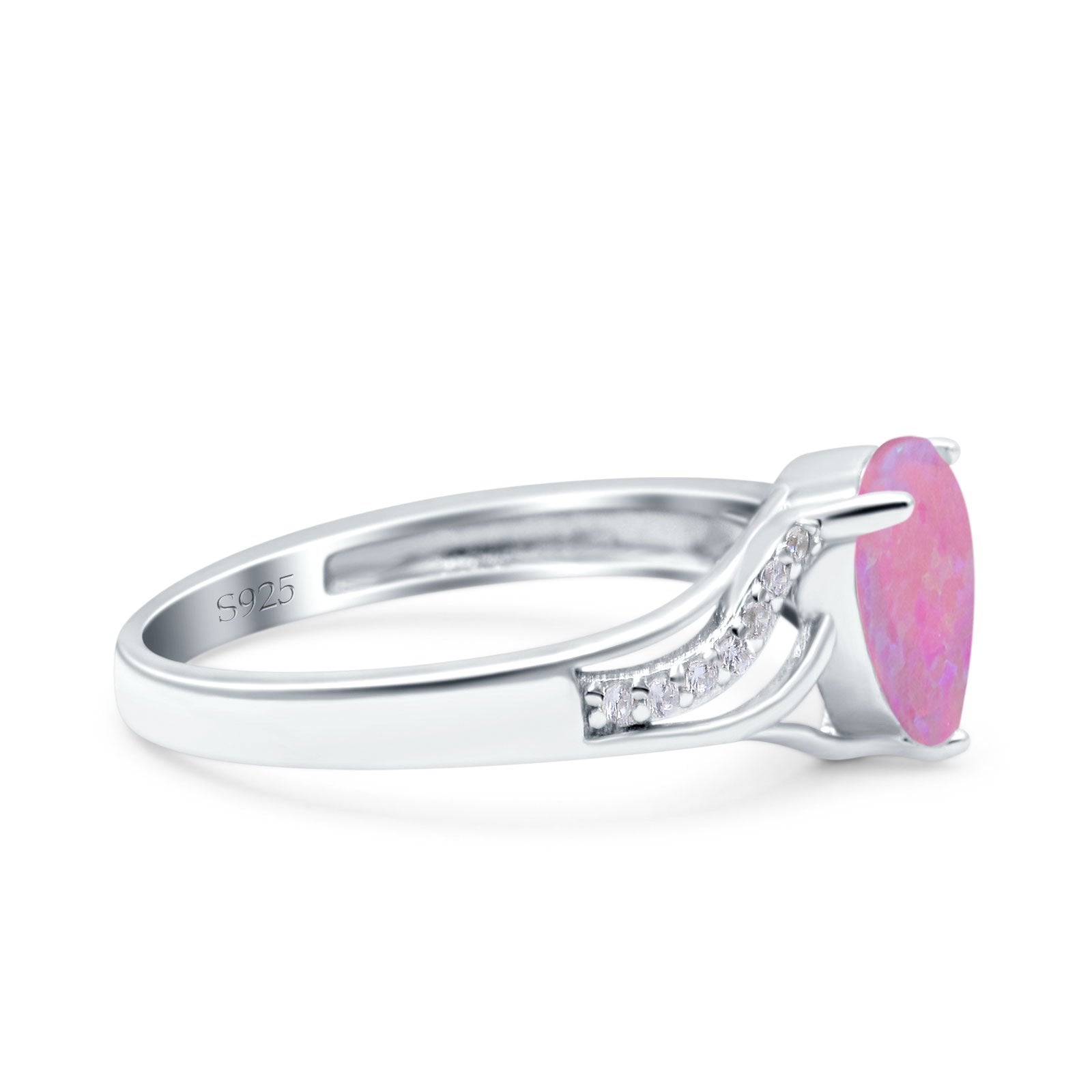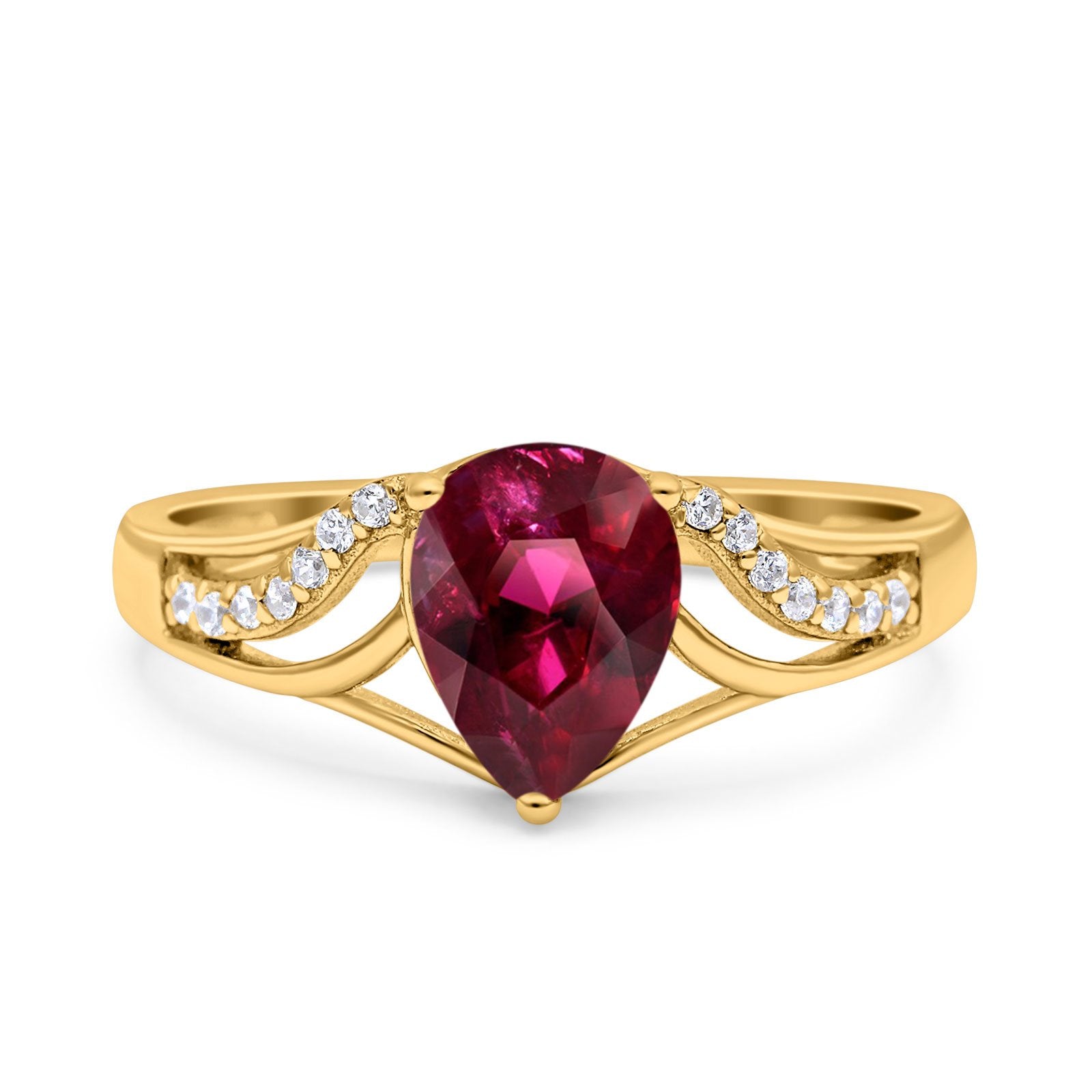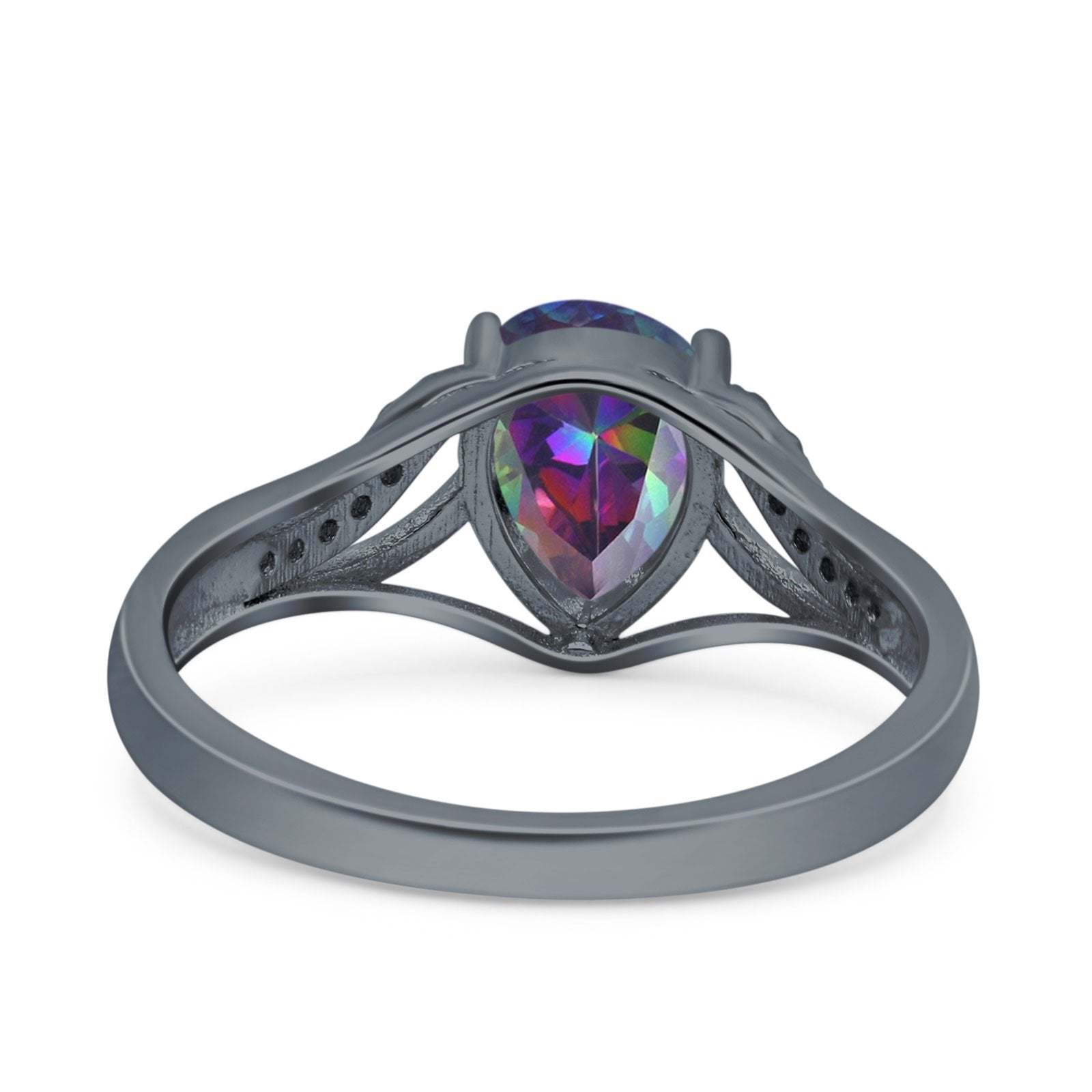Teardrop Dainty Art Deco Pear Wedding Engagement Bridal Ring Round Simulated Cubic Zirconia 925 Sterling Silver