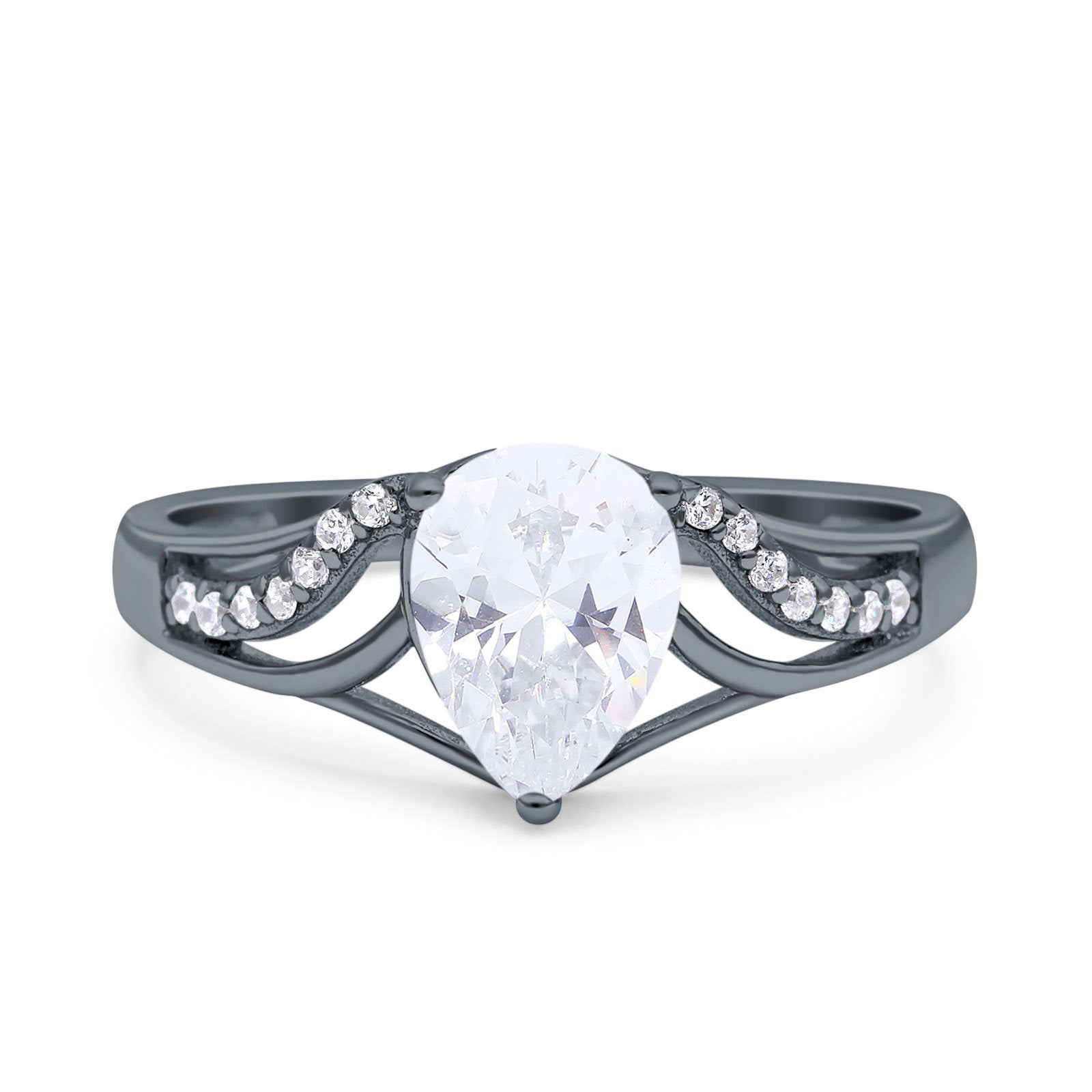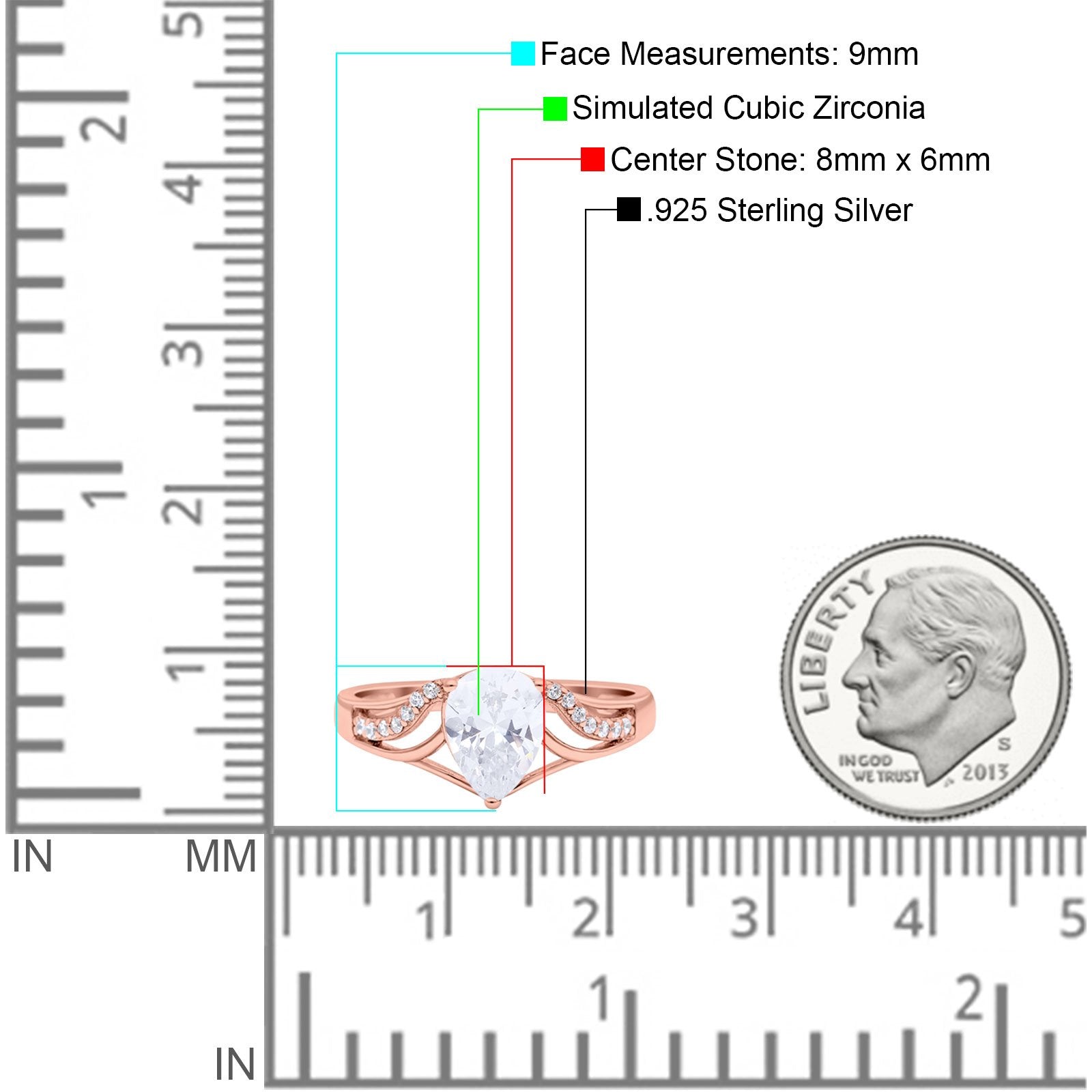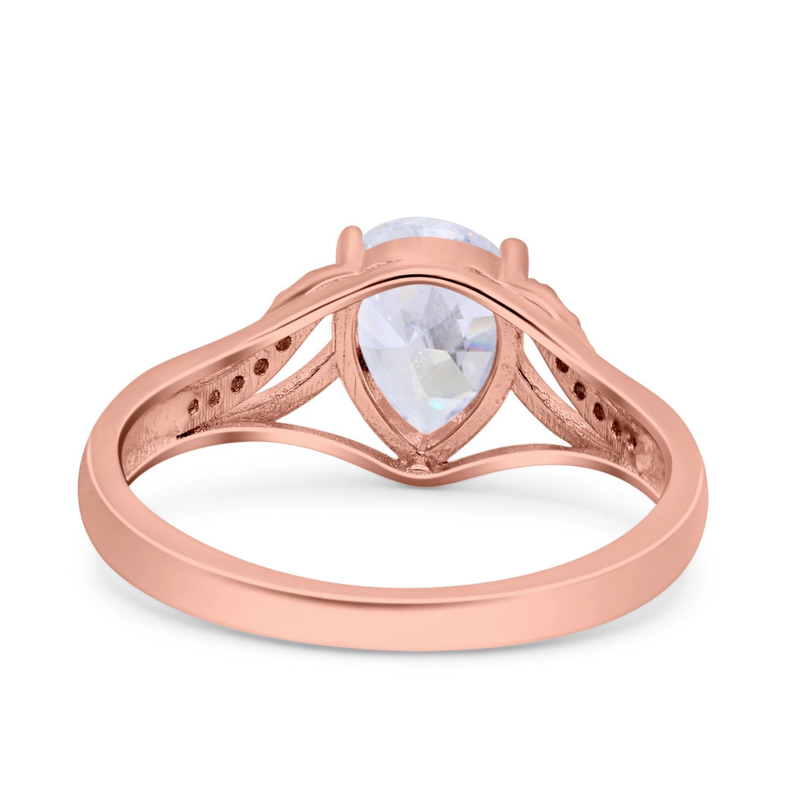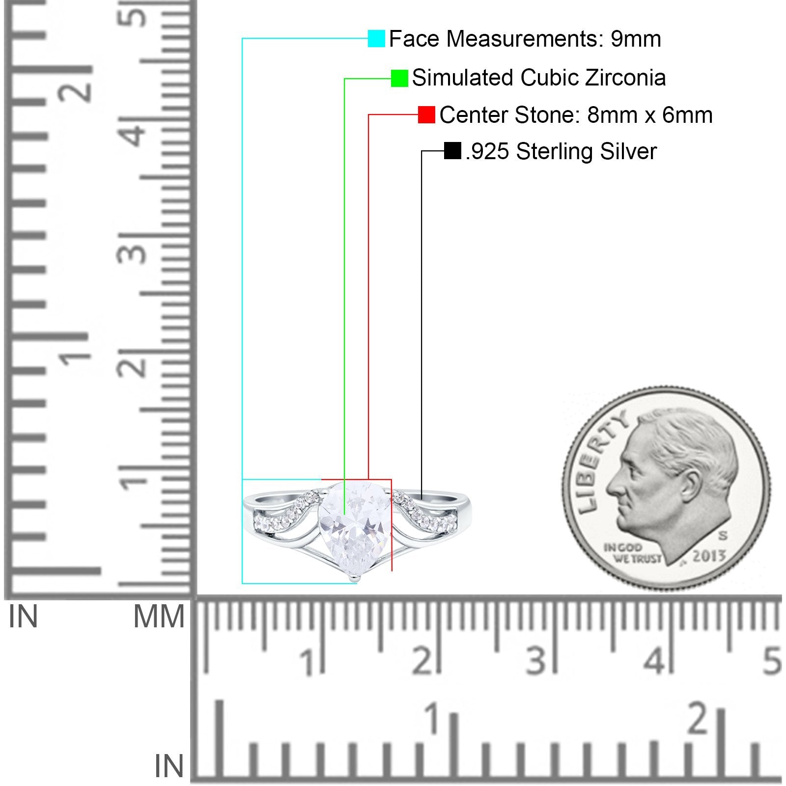 Teardrop Dainty Art Deco Pear Wedding Engagement Bridal Ring Round Simulated Cubic Zirconia 925 Sterling Silver