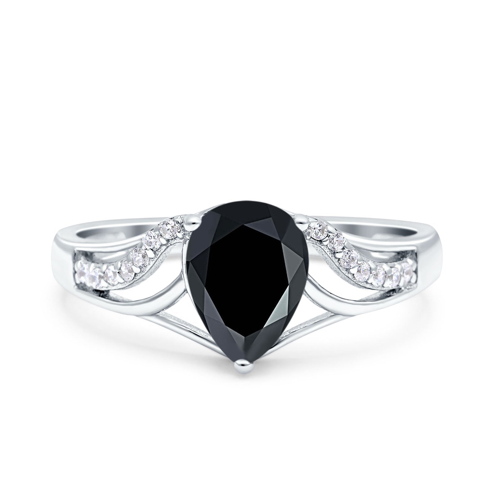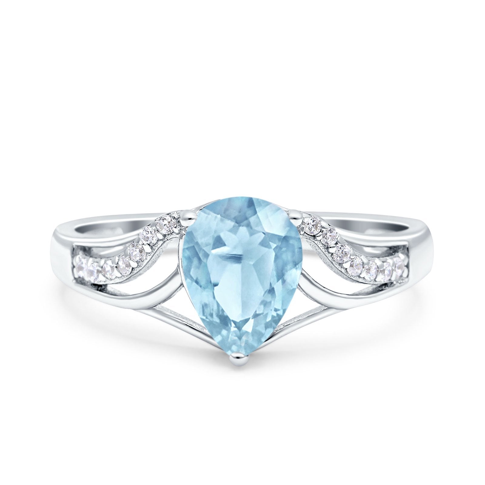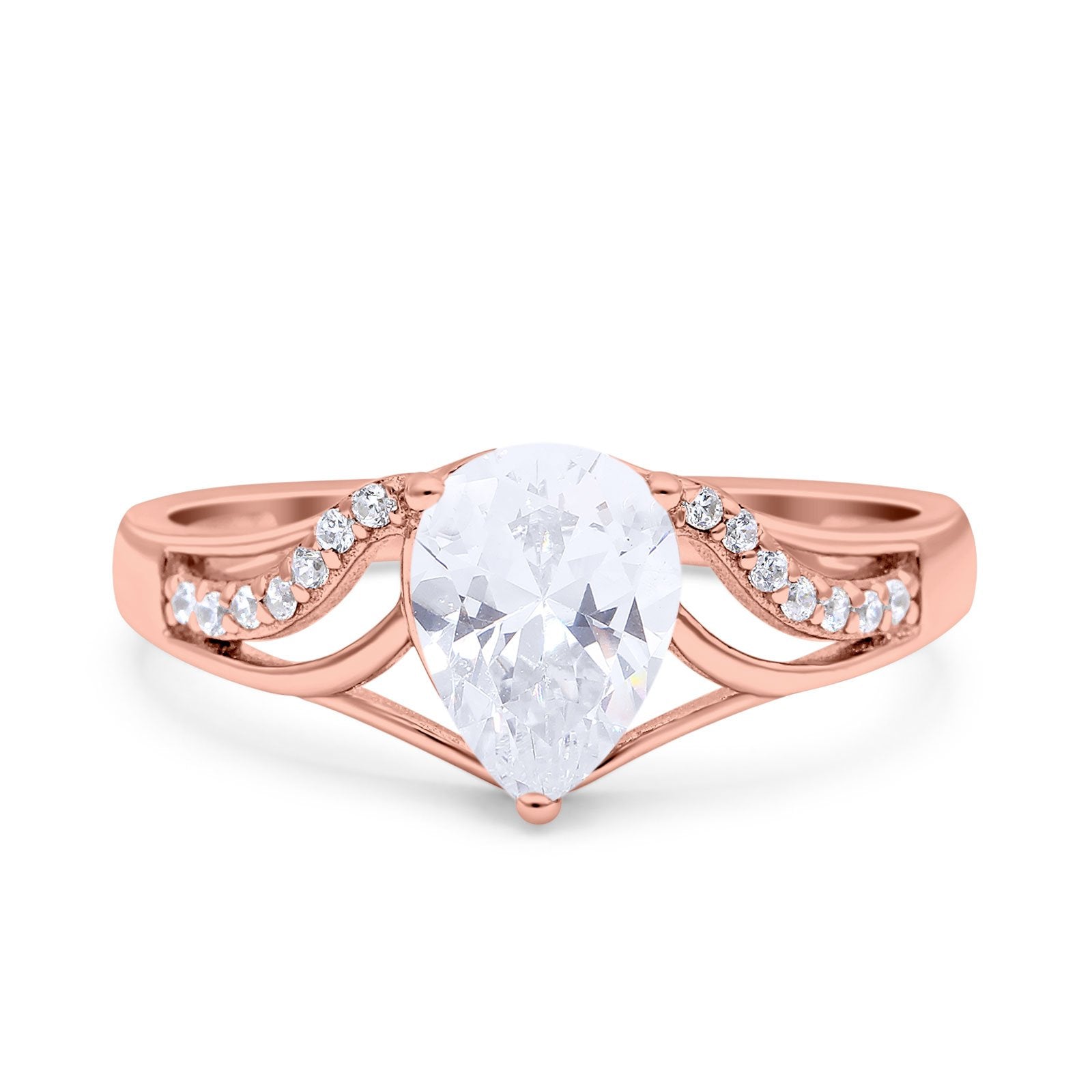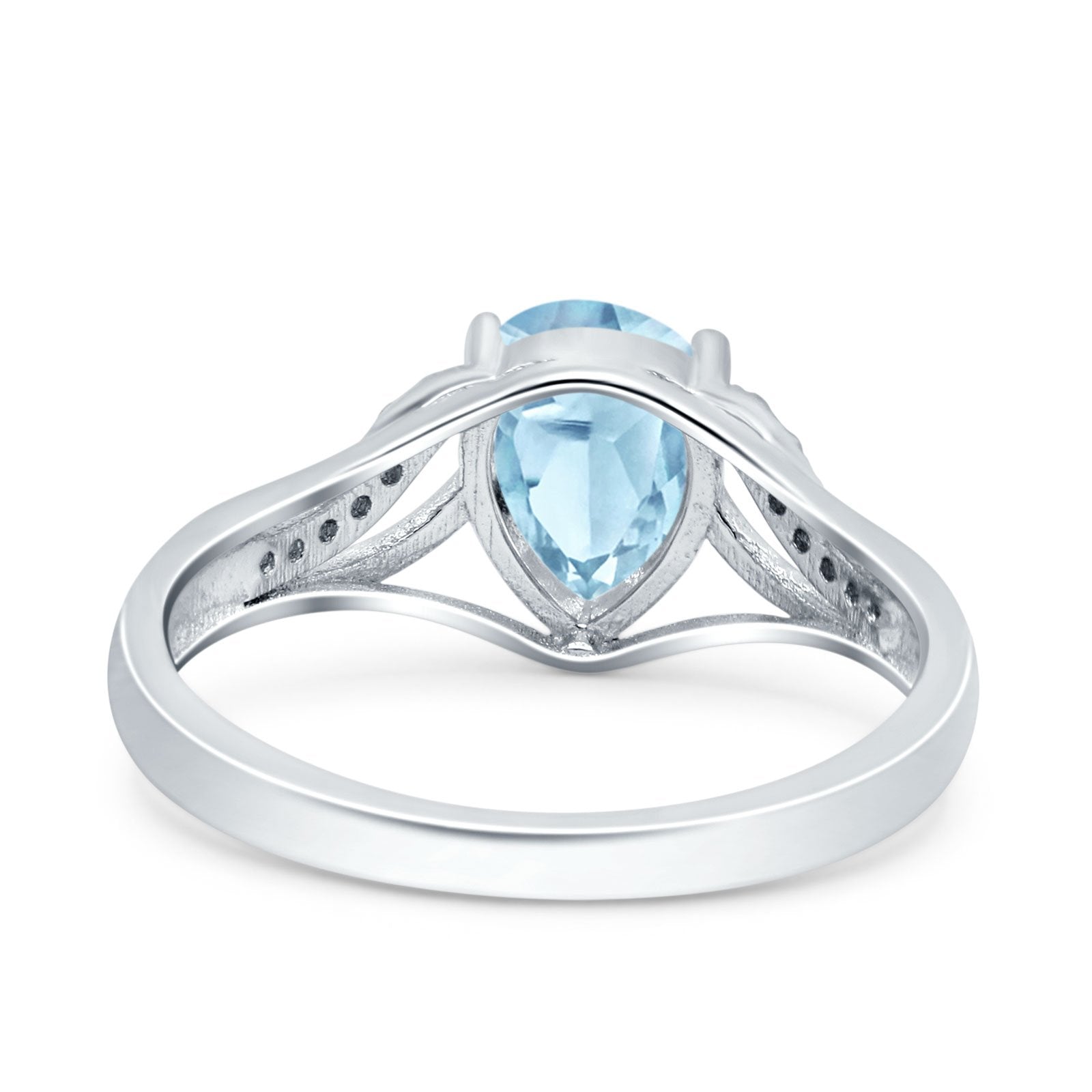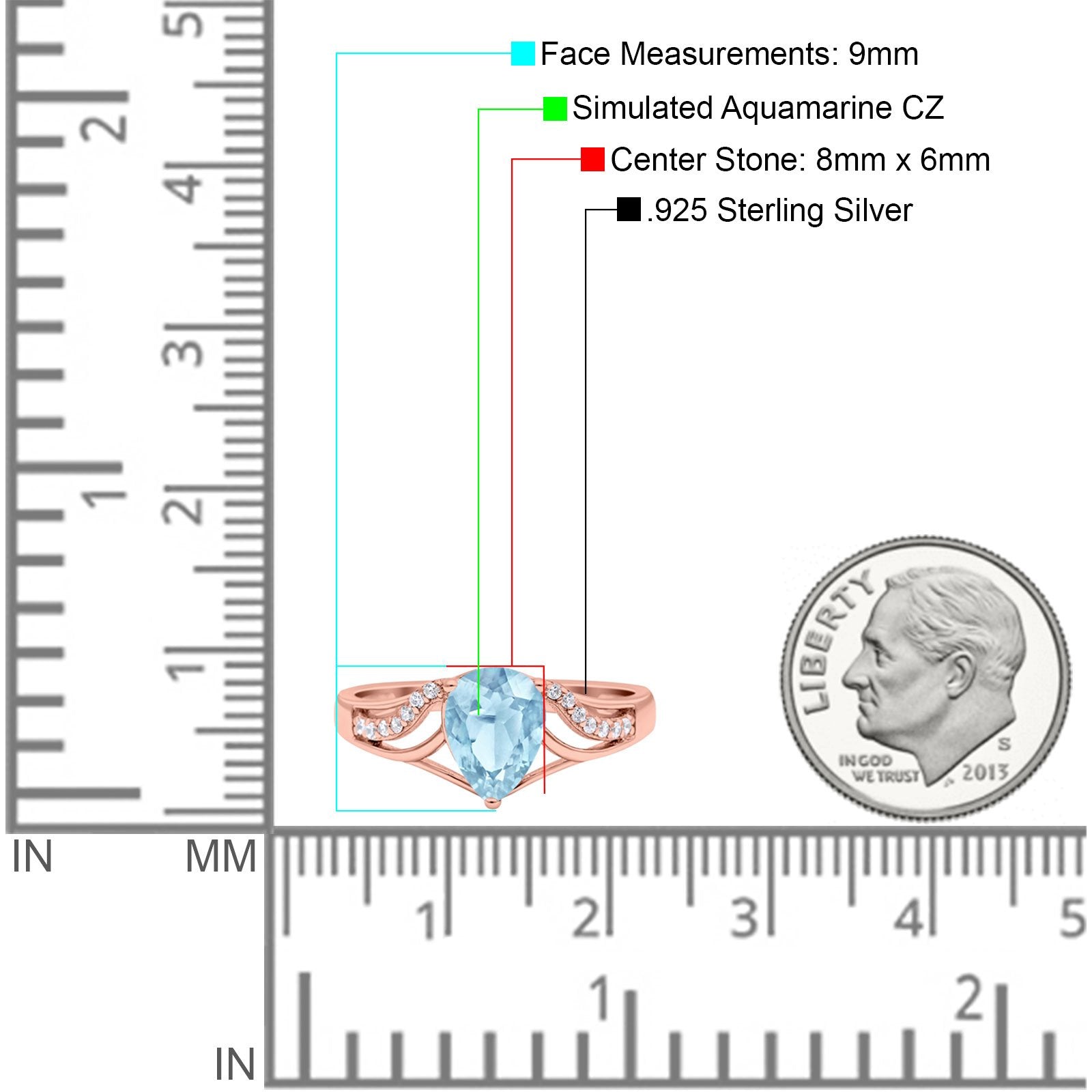 Teardrop Dainty Art Deco Pear Wedding Engagement Bridal Ring Round Simulated Cubic Zirconia 925 Sterling Silver