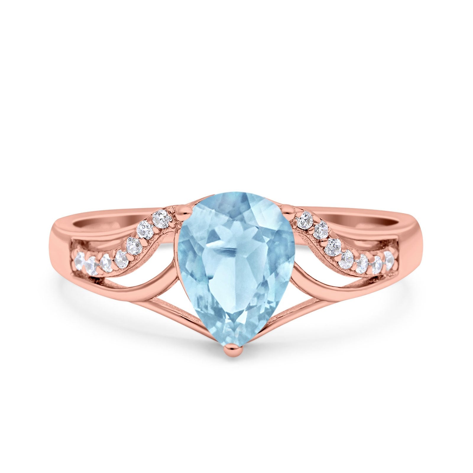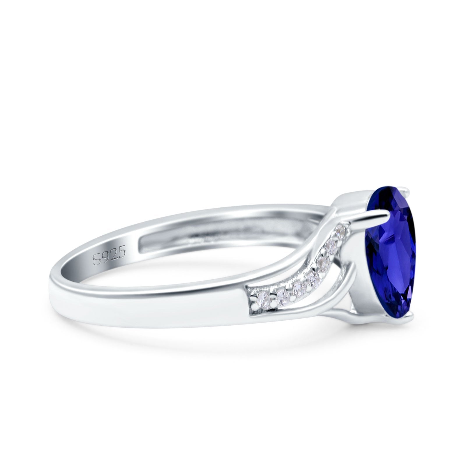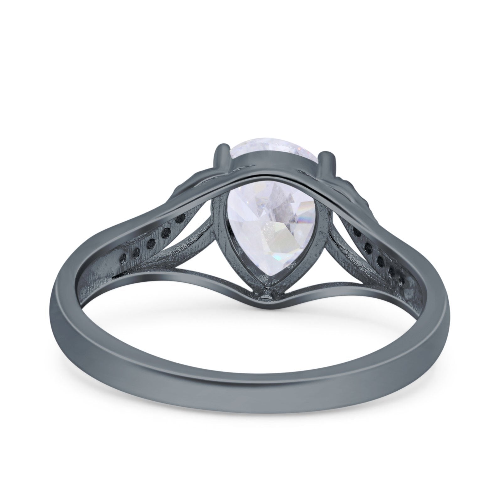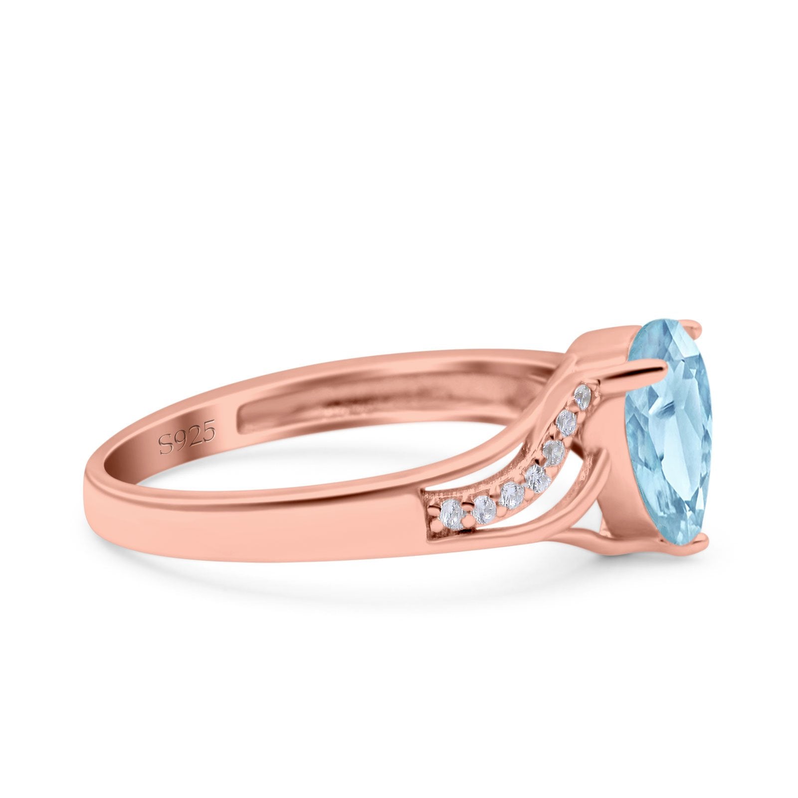 Teardrop Dainty Art Deco Pear Wedding Engagement Bridal Ring Round Simulated Cubic Zirconia 925 Sterling Silver