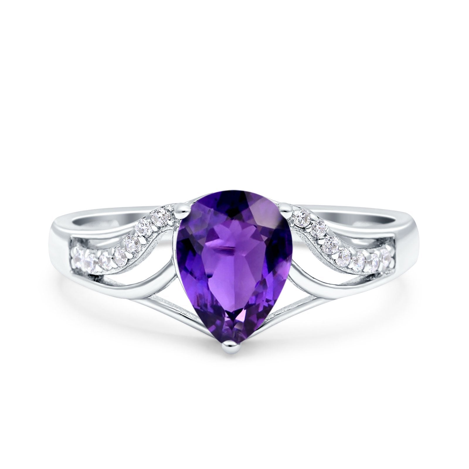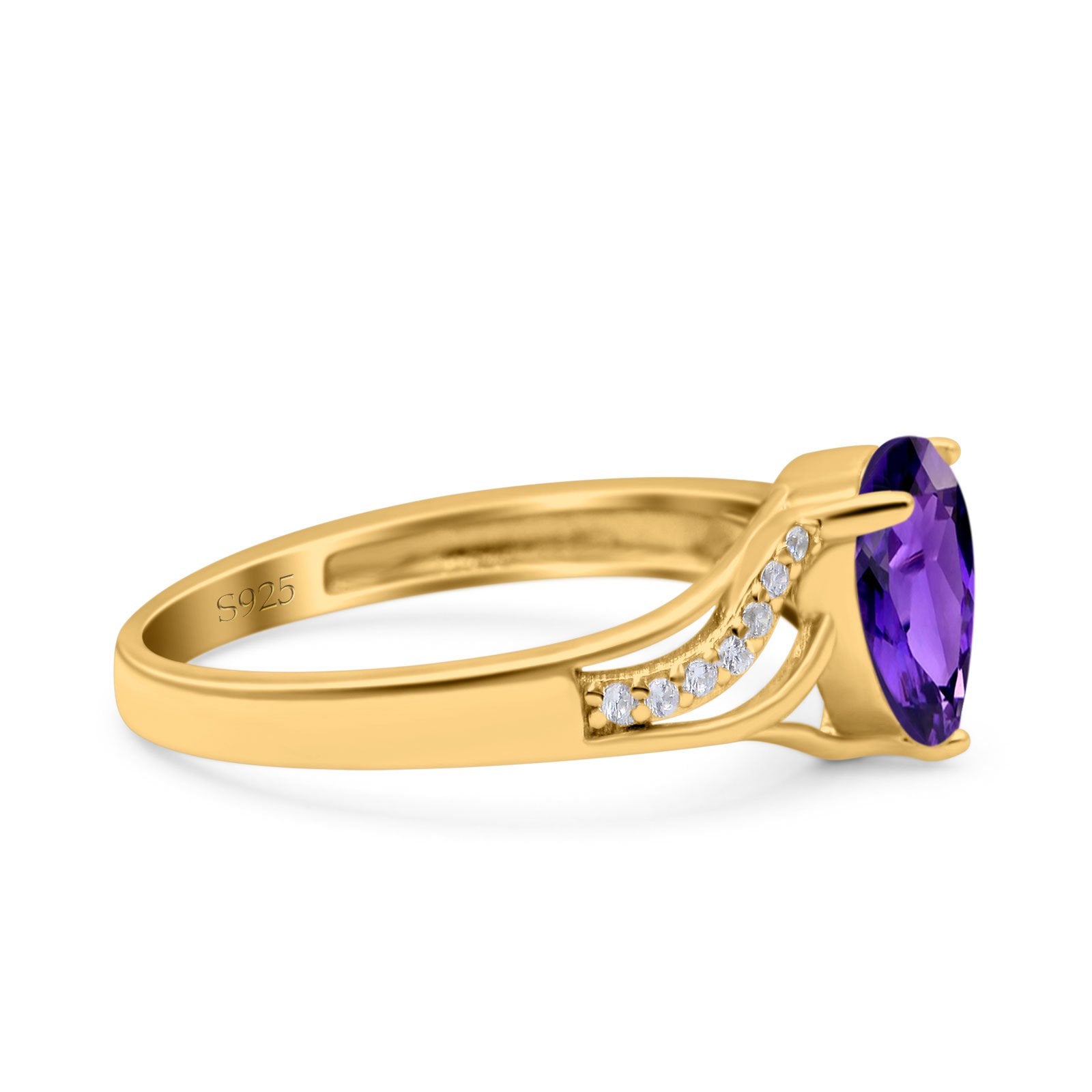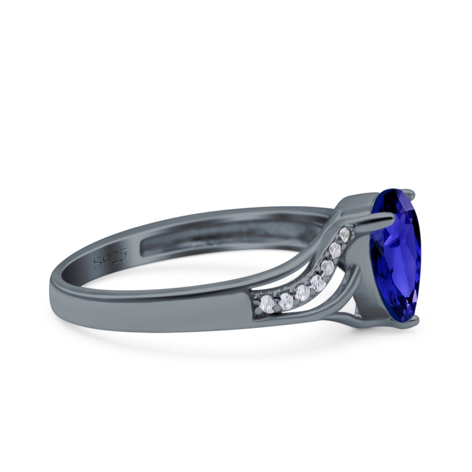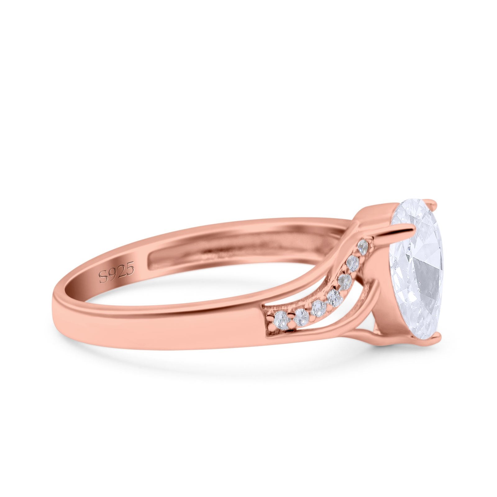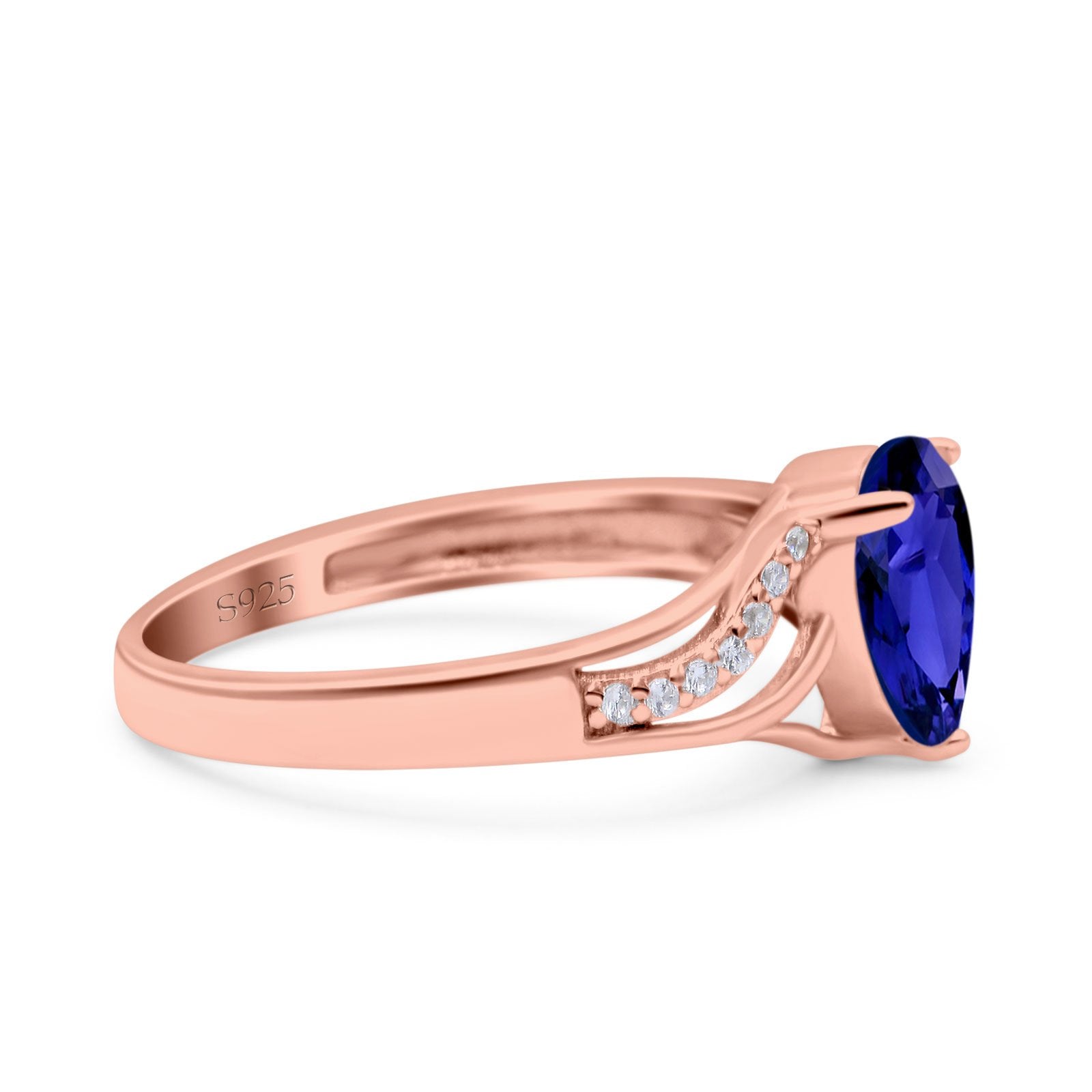 Teardrop Dainty Art Deco Pear Wedding Engagement Bridal Ring Round Simulated Cubic Zirconia 925 Sterling Silver