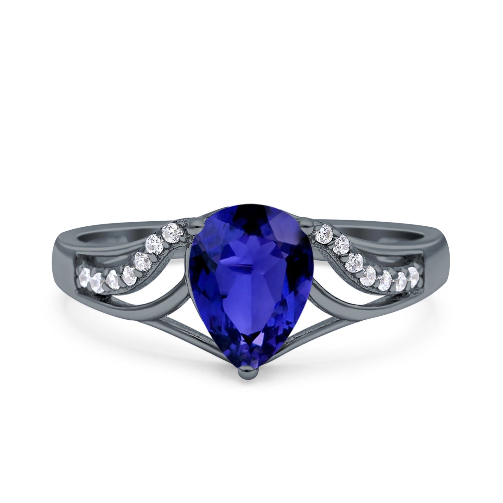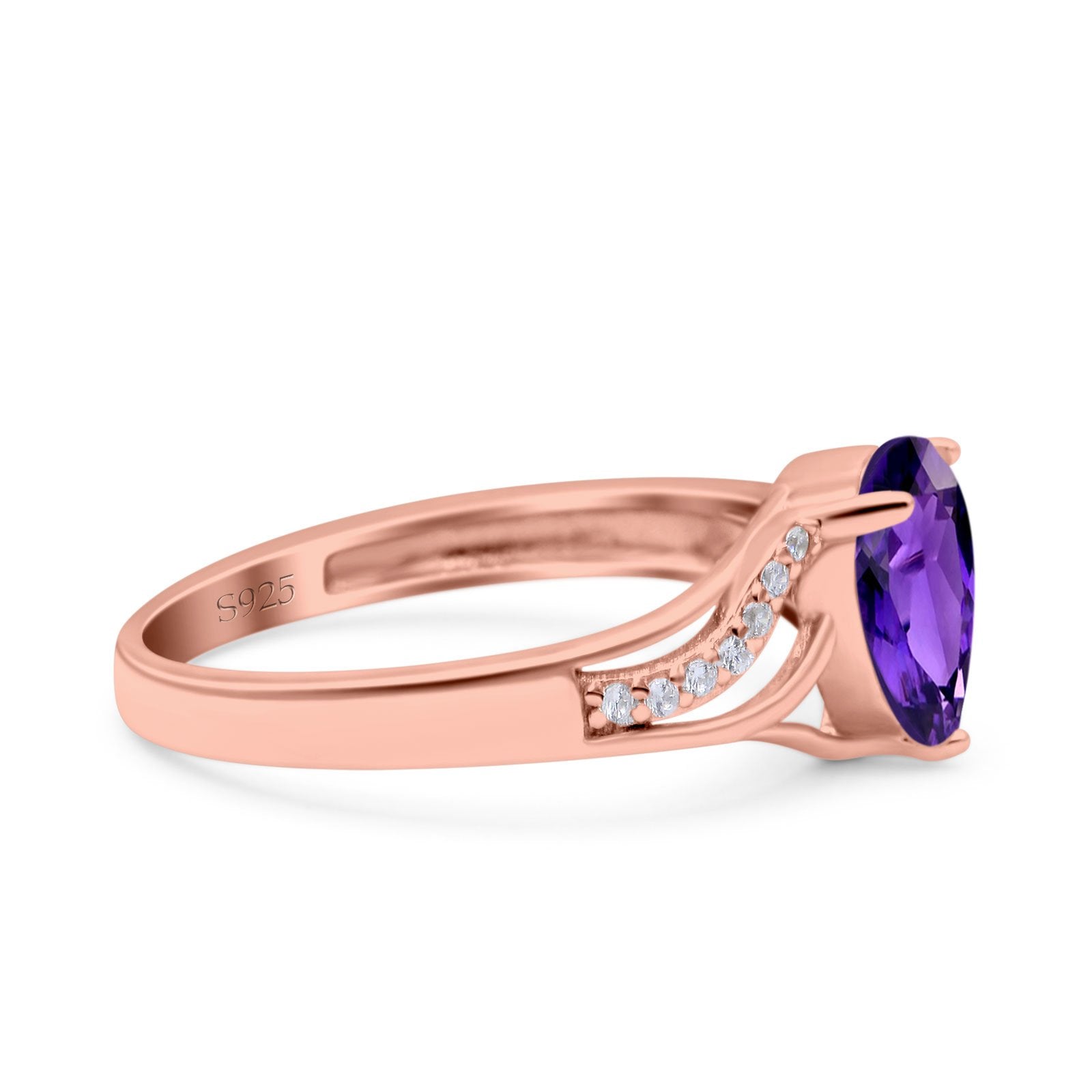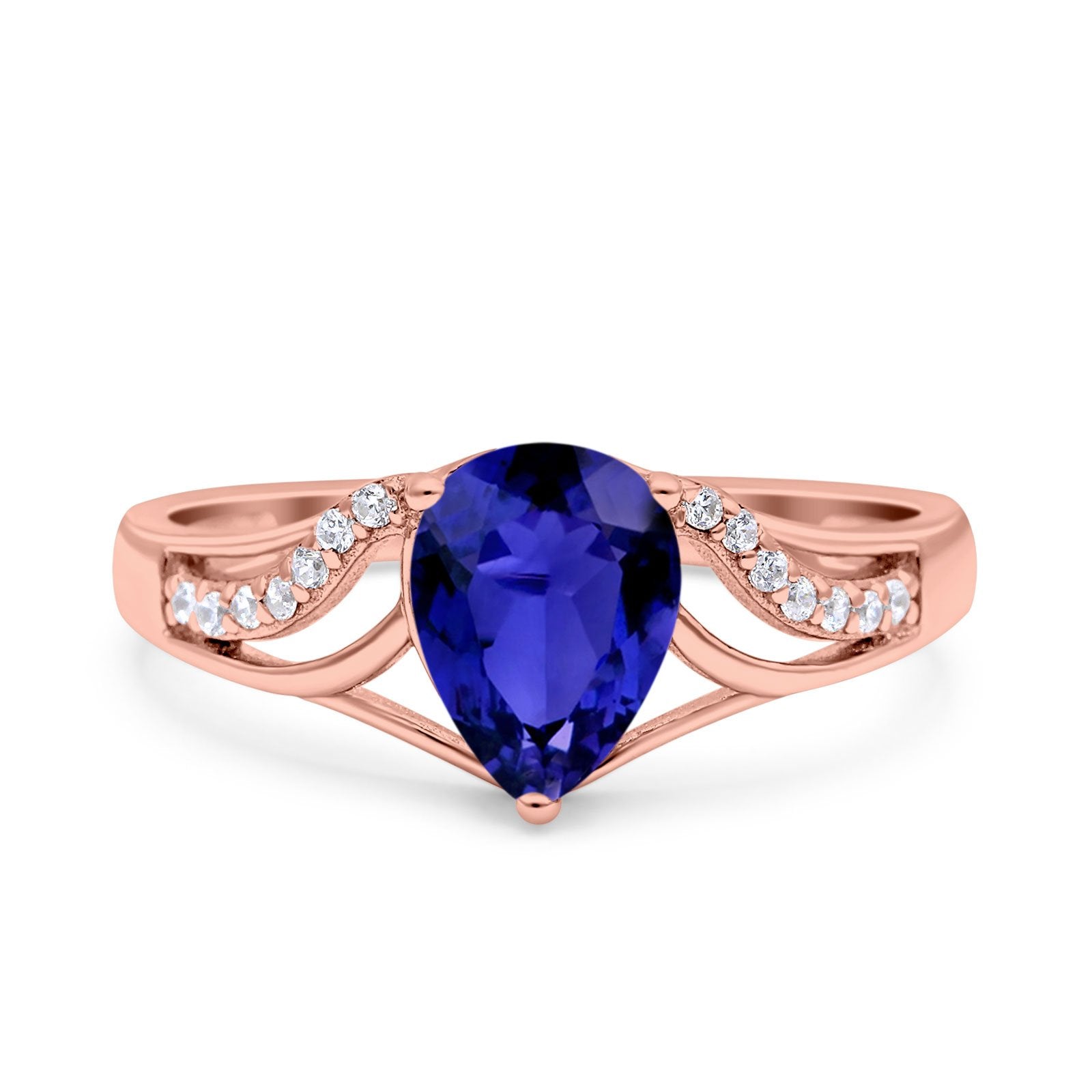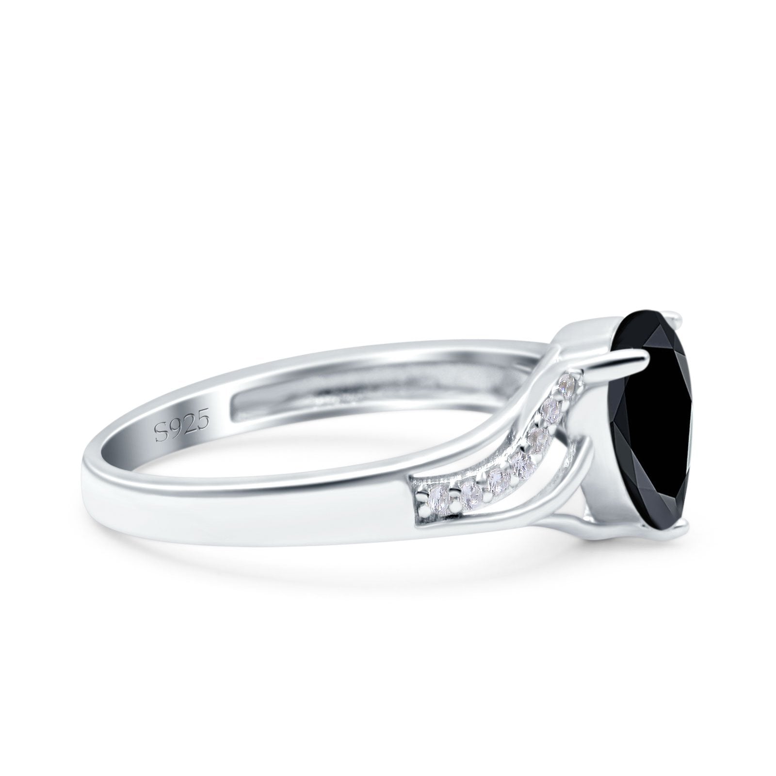 Teardrop Dainty Art Deco Pear Wedding Engagement Bridal Ring Round Simulated Cubic Zirconia 925 Sterling Silver