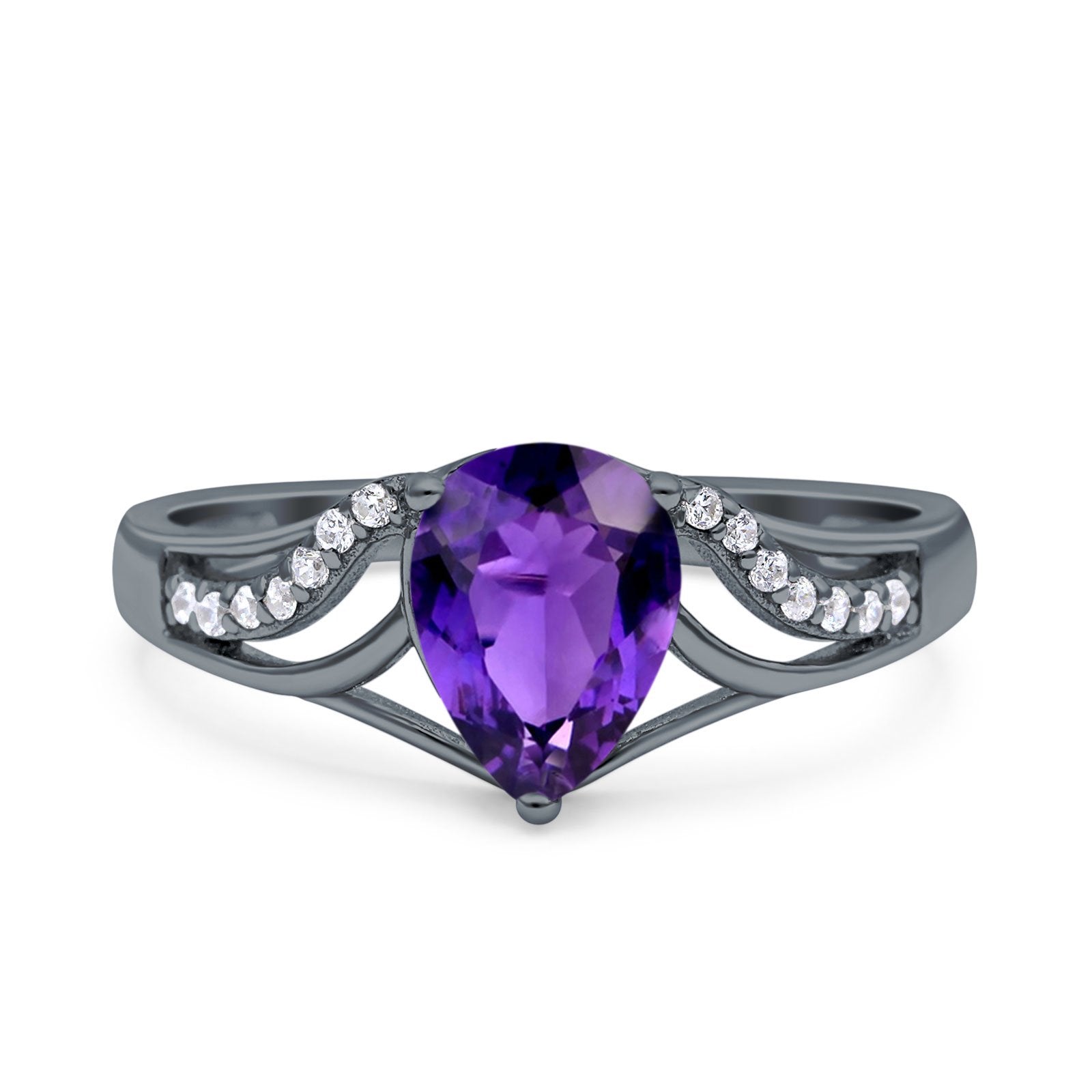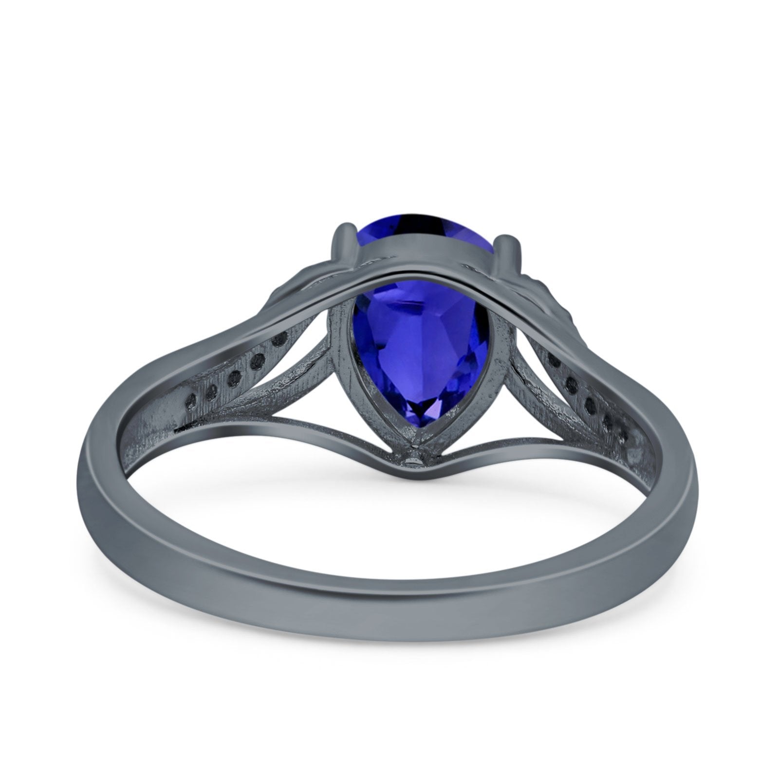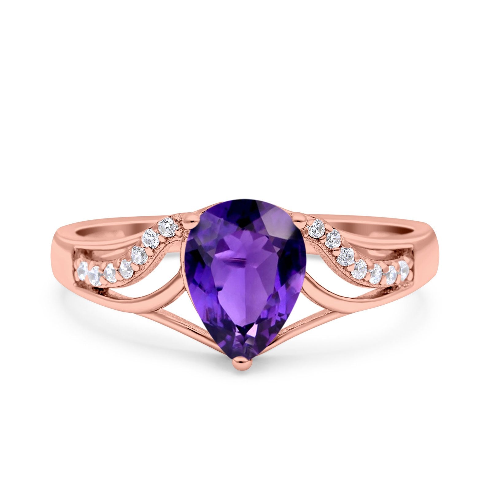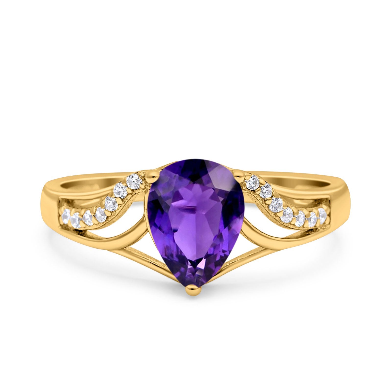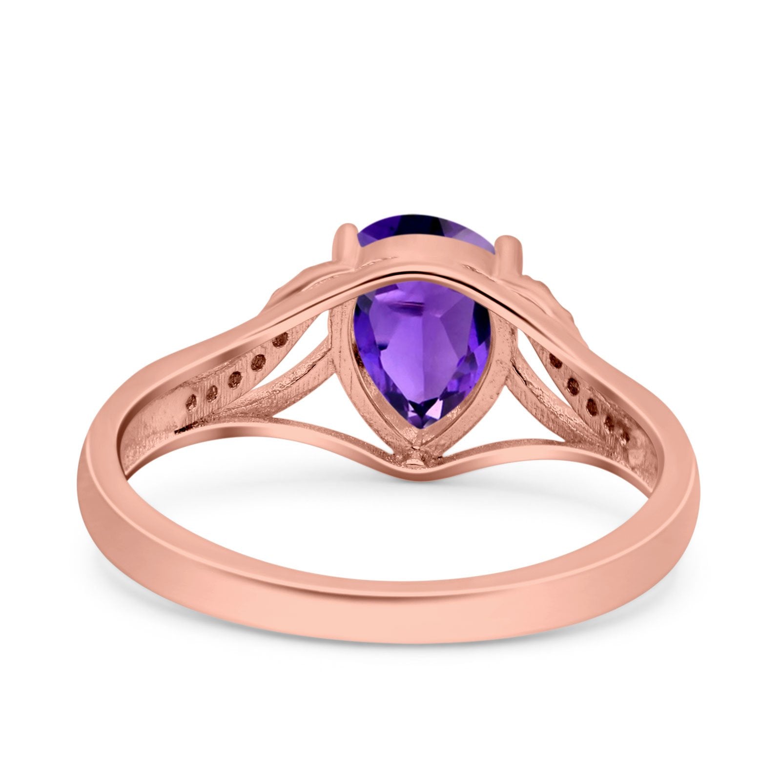 Teardrop Dainty Art Deco Pear Wedding Engagement Bridal Ring Round Simulated Cubic Zirconia 925 Sterling Silver