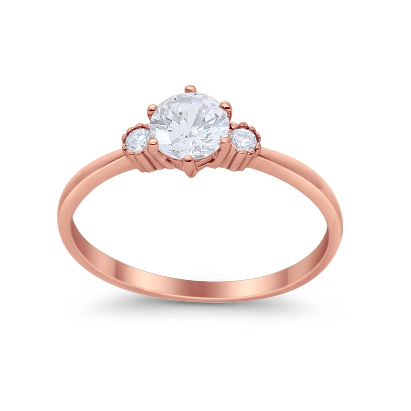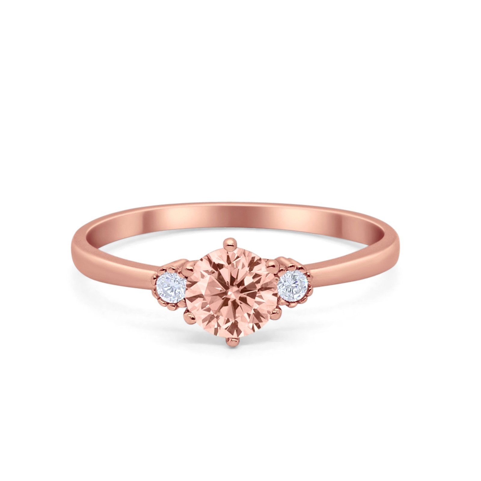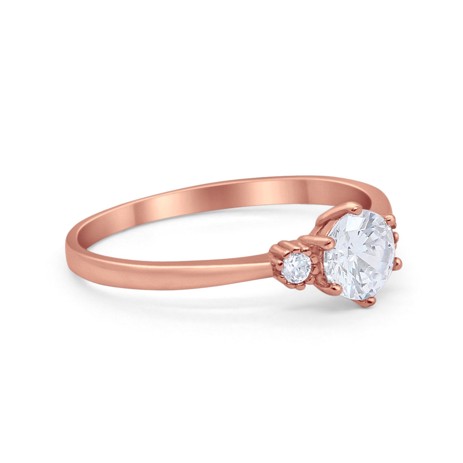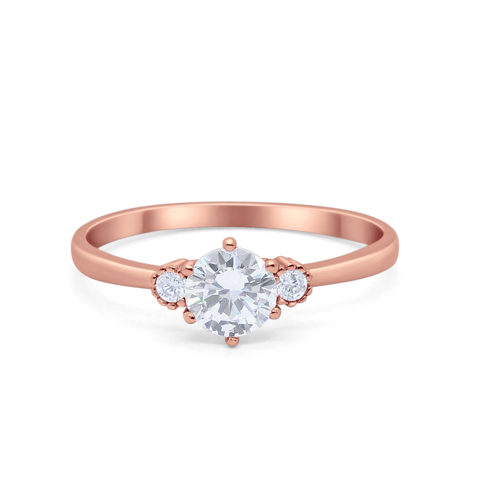 Three Stone Art Deco Wedding Engagement Ring Round Cubic Zirconia 925 Sterling Silver