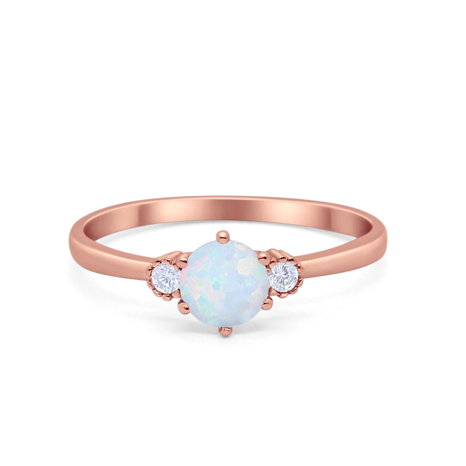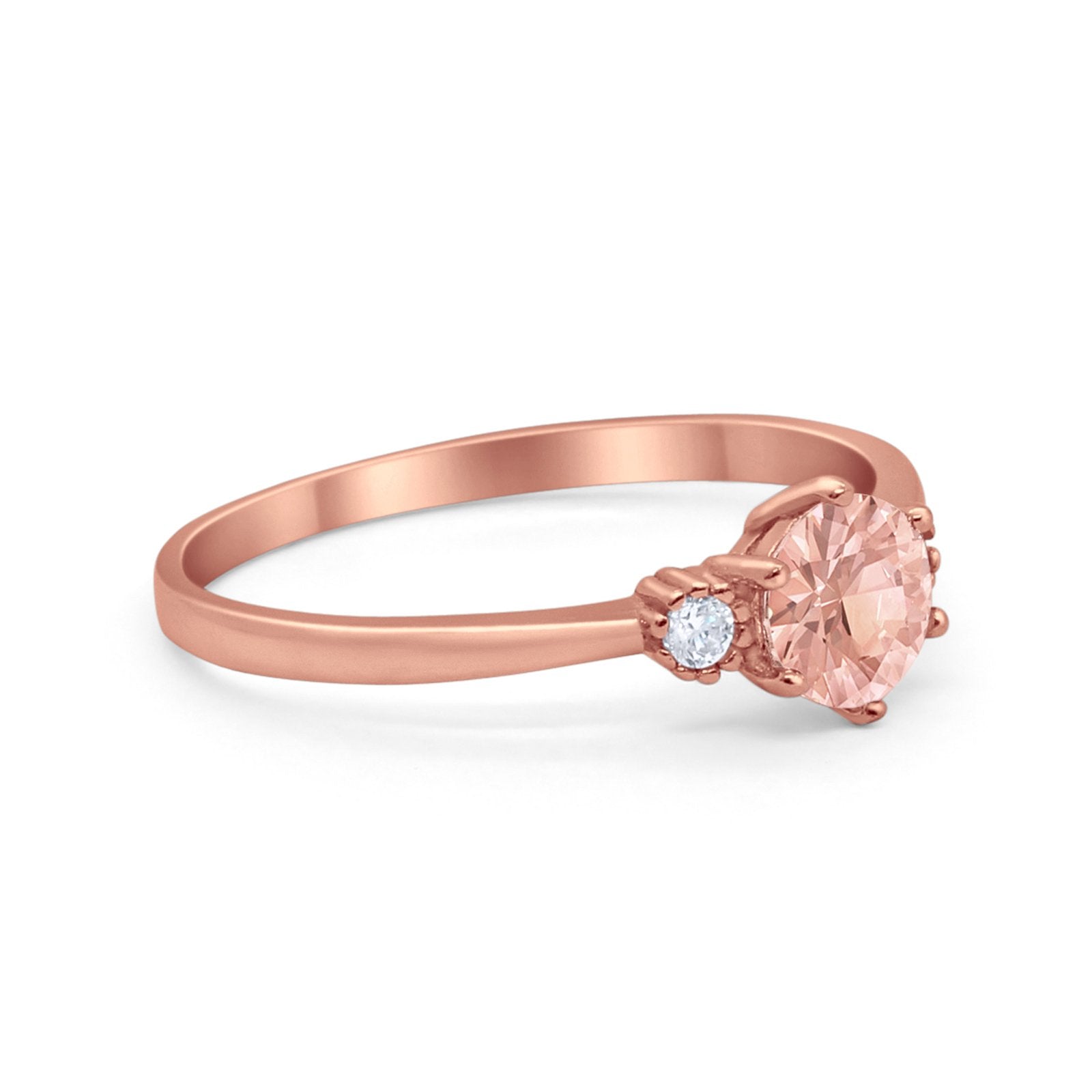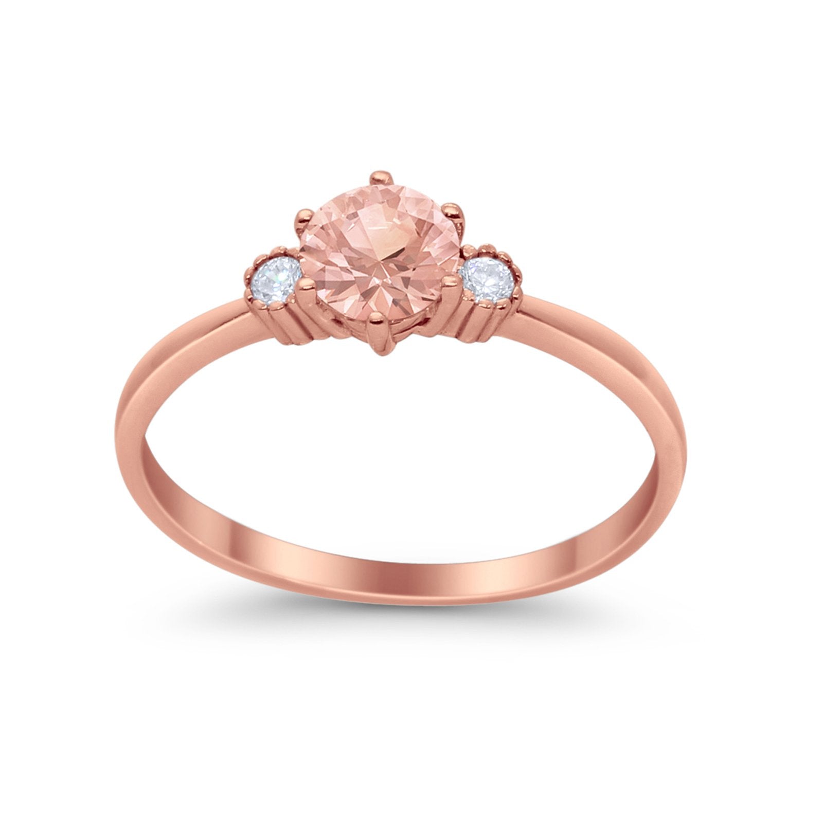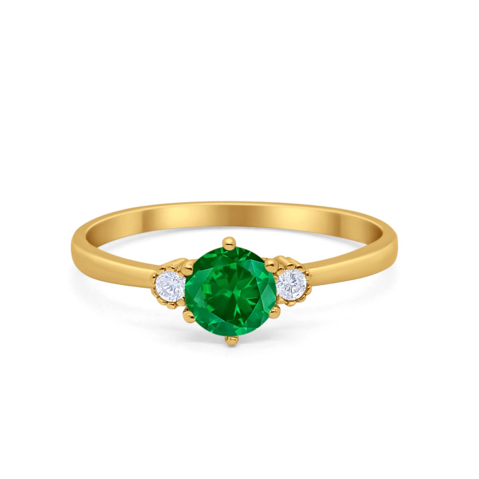 Three Stone Art Deco Wedding Engagement Ring Round Cubic Zirconia 925 Sterling Silver