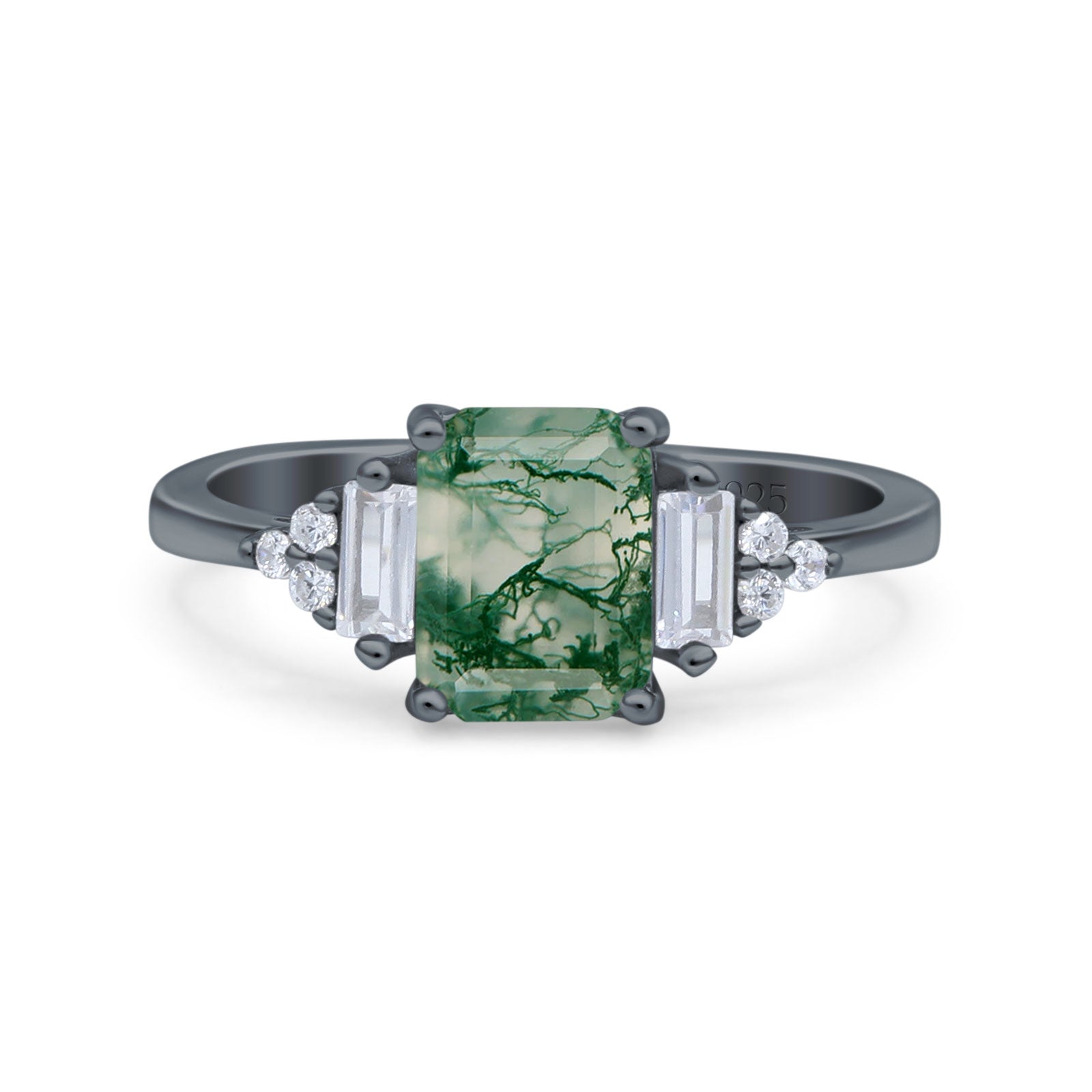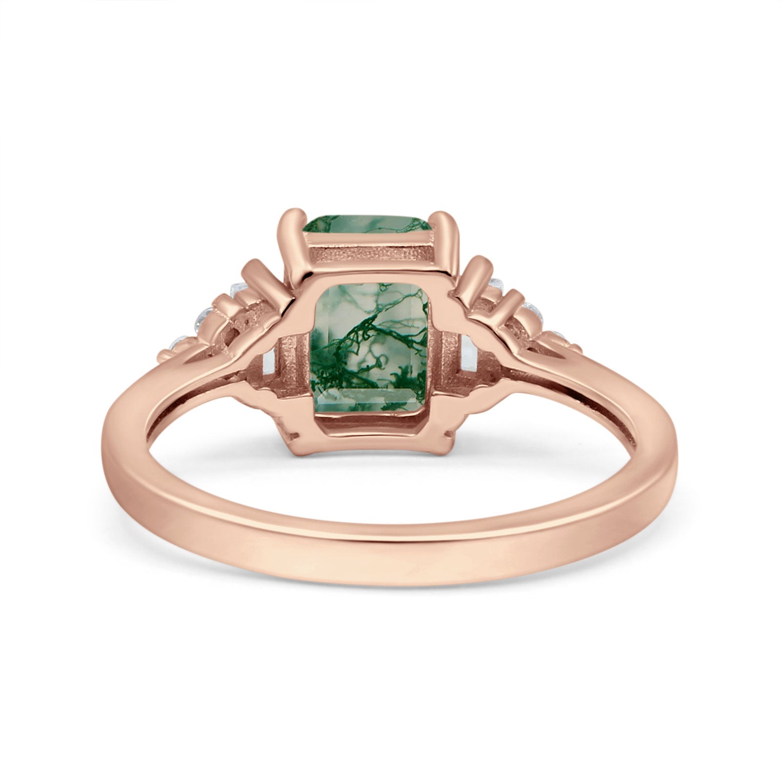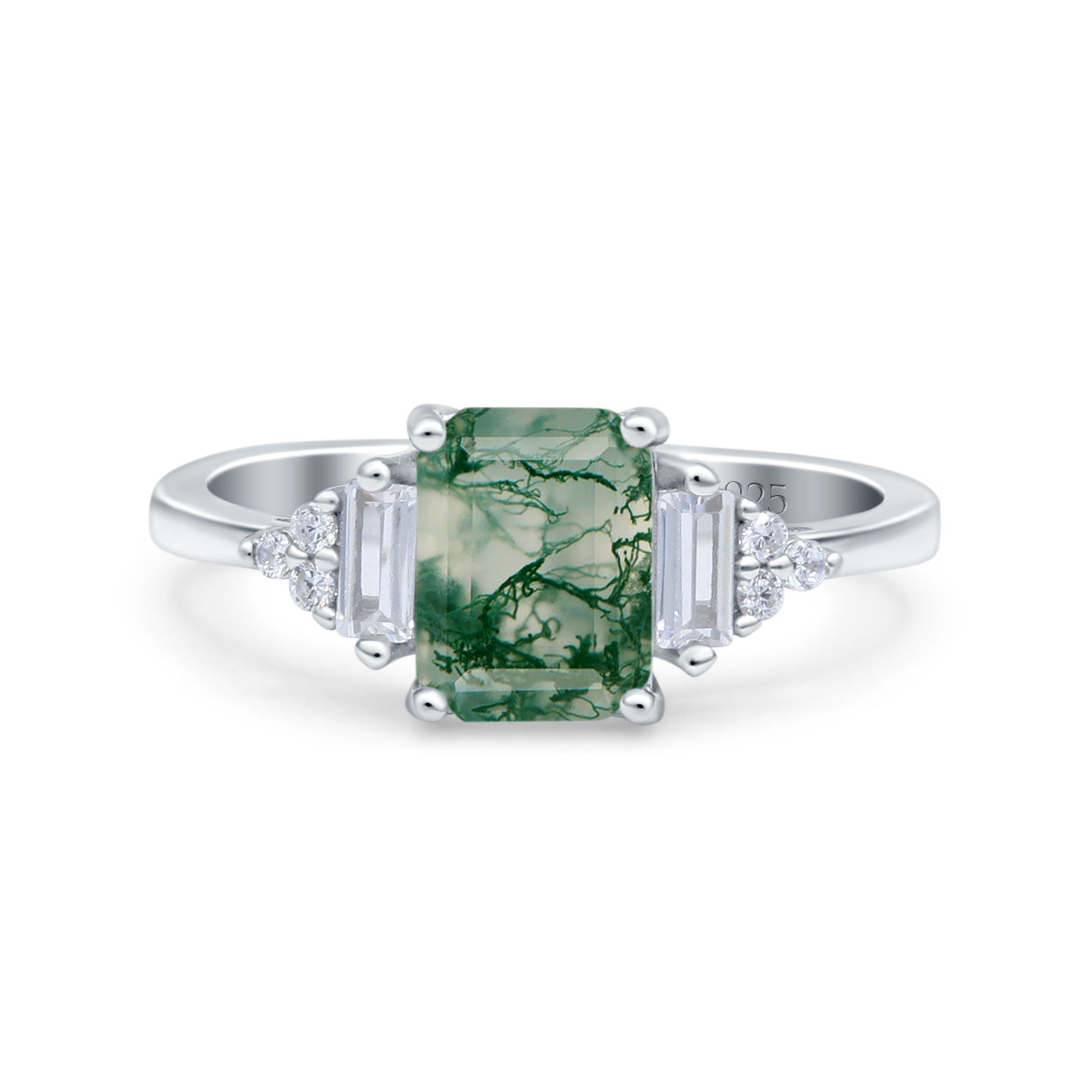 -Three Emerald-Cut Natural Green Moss Agate Stones.
