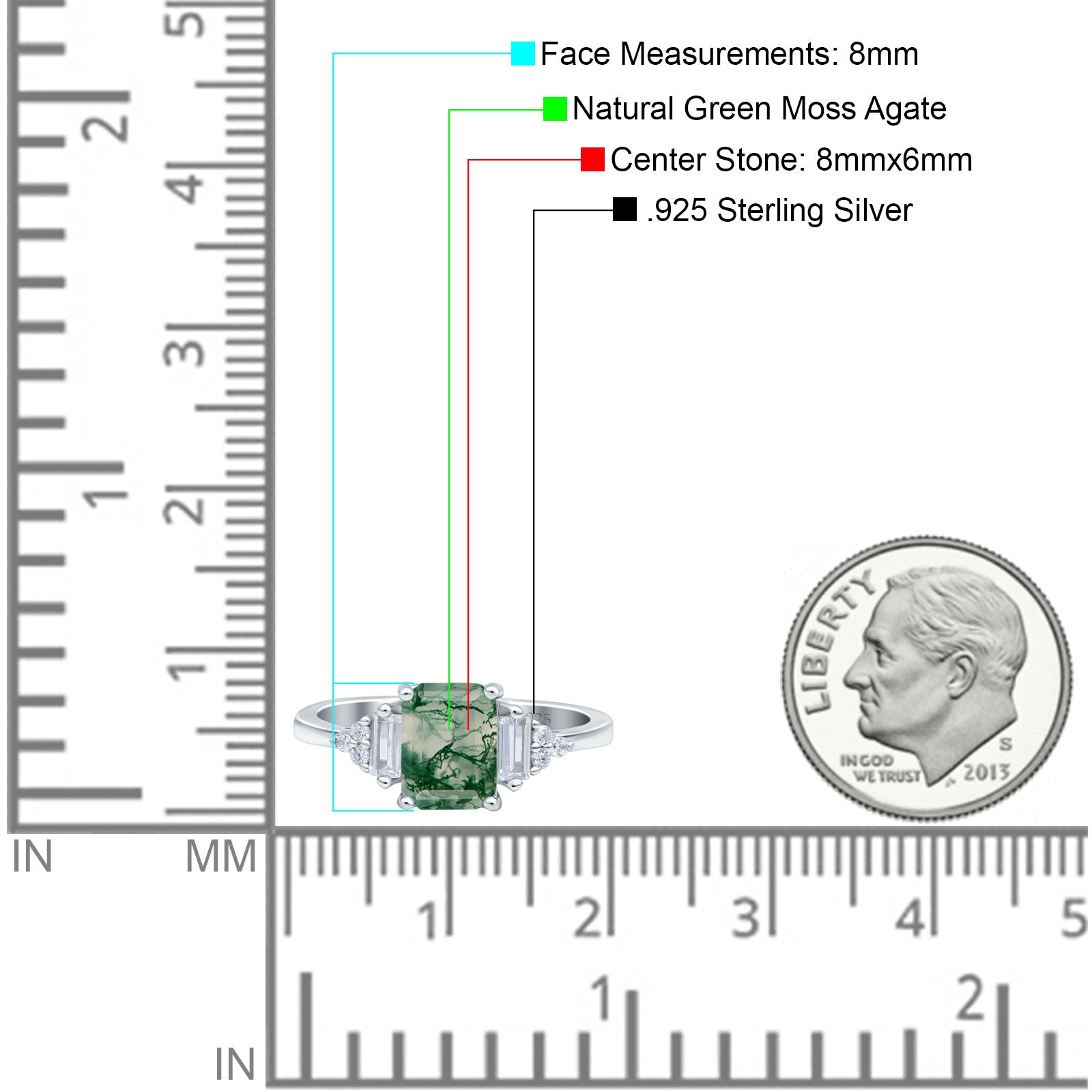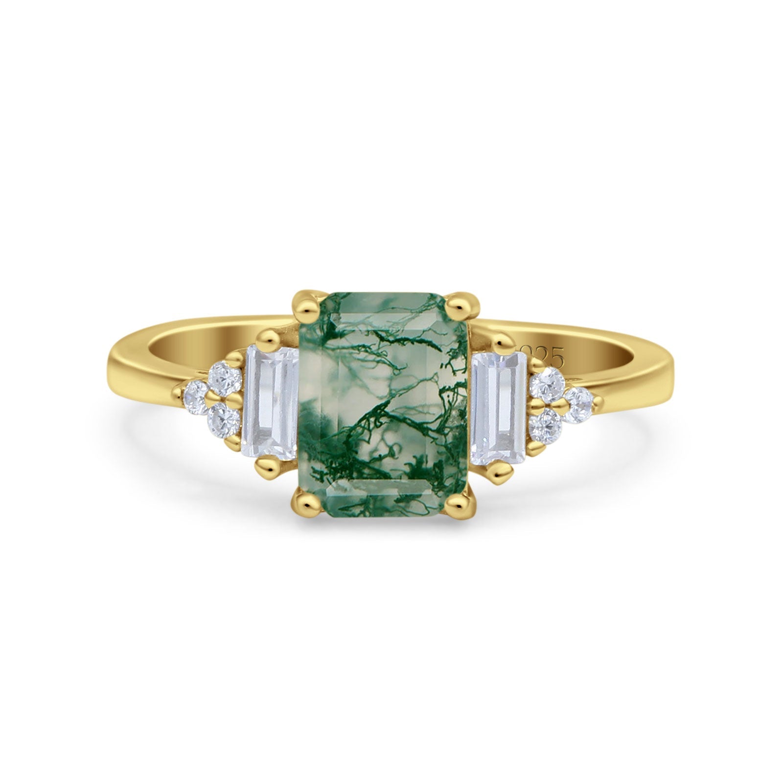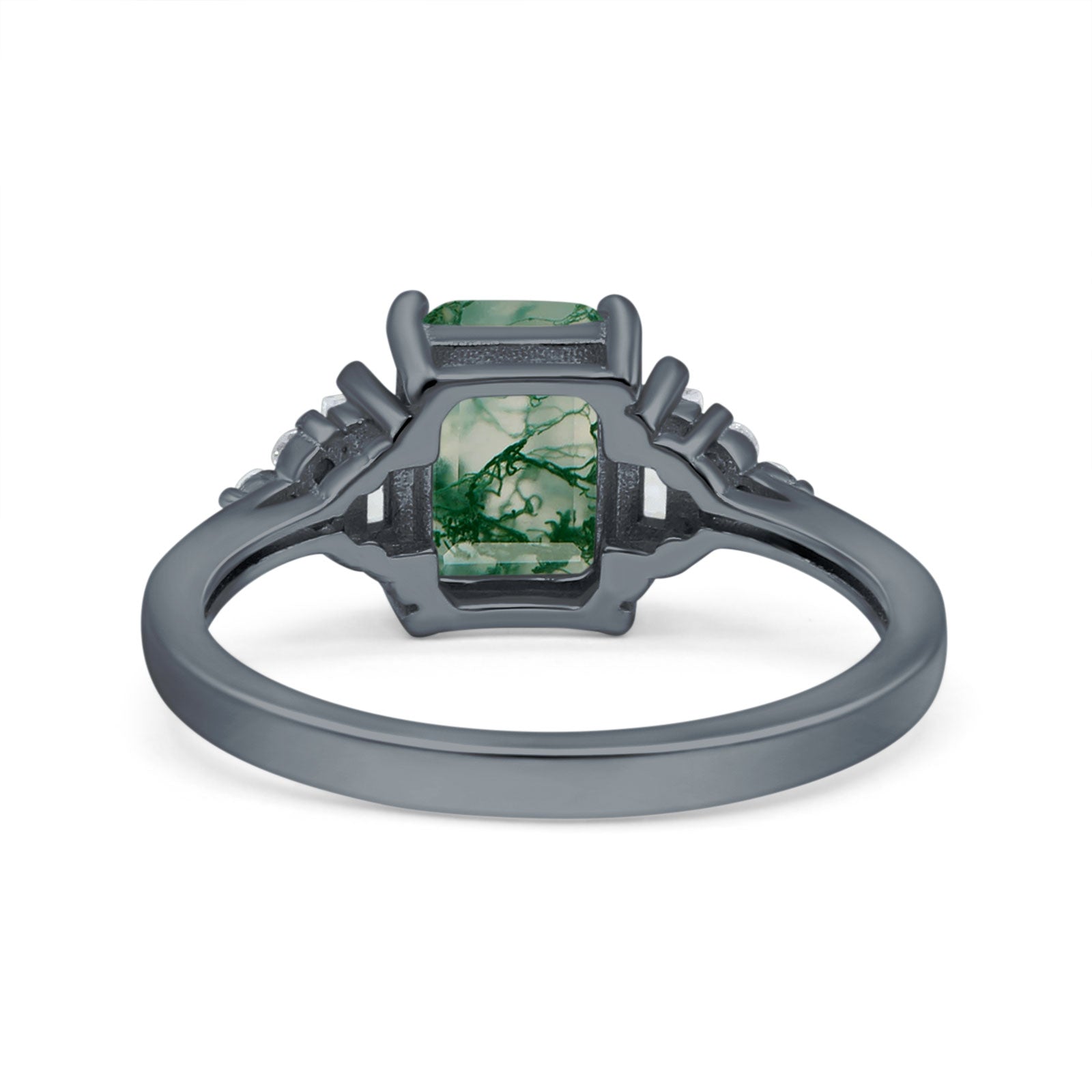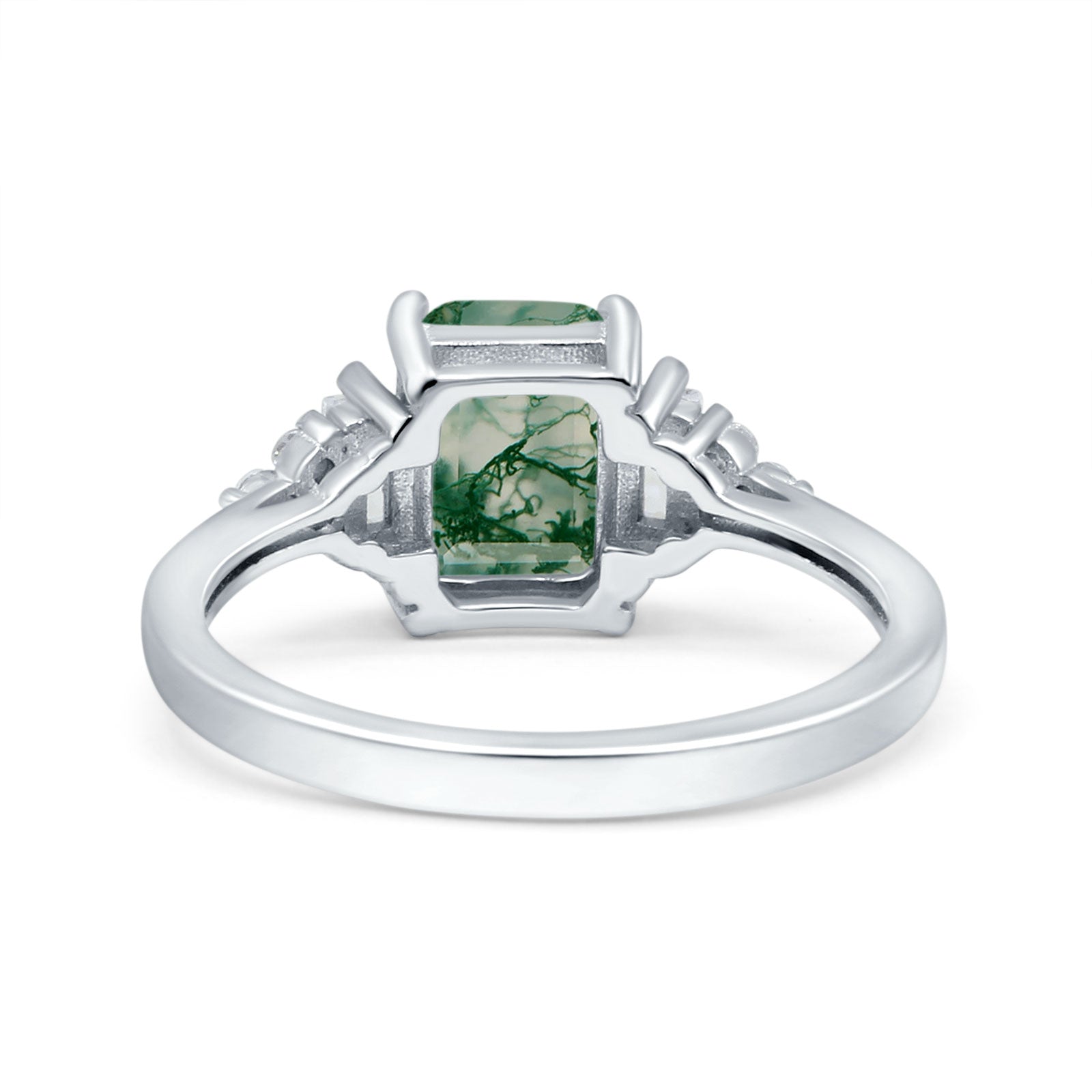 -Three Emerald-Cut Natural Green Moss Agate Stones.