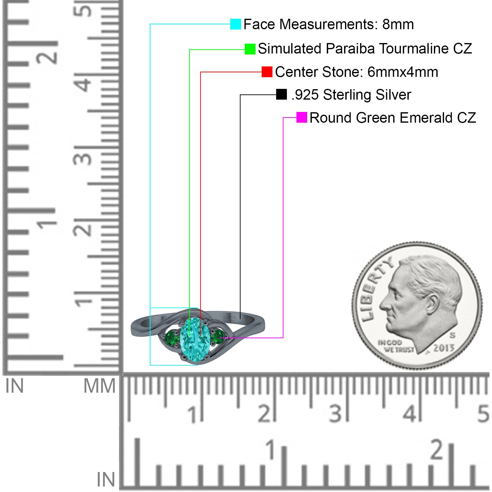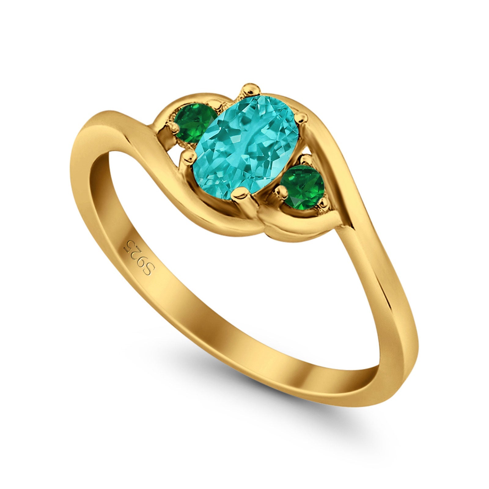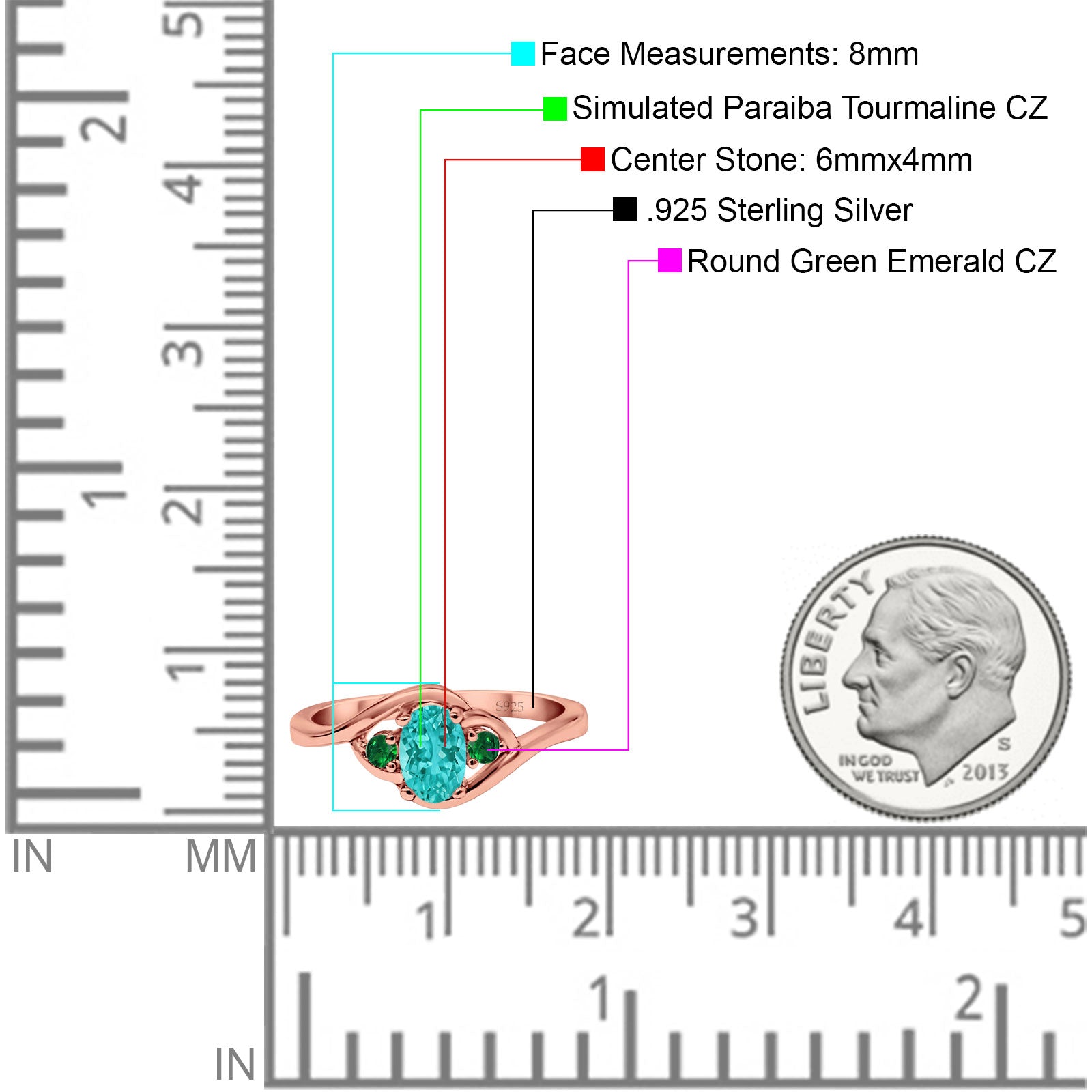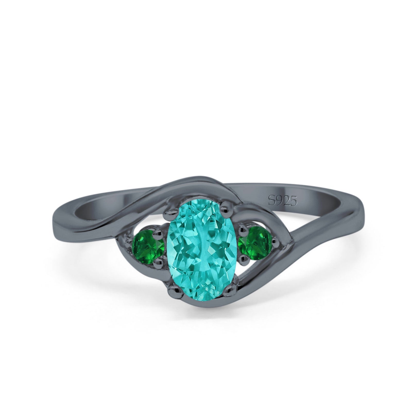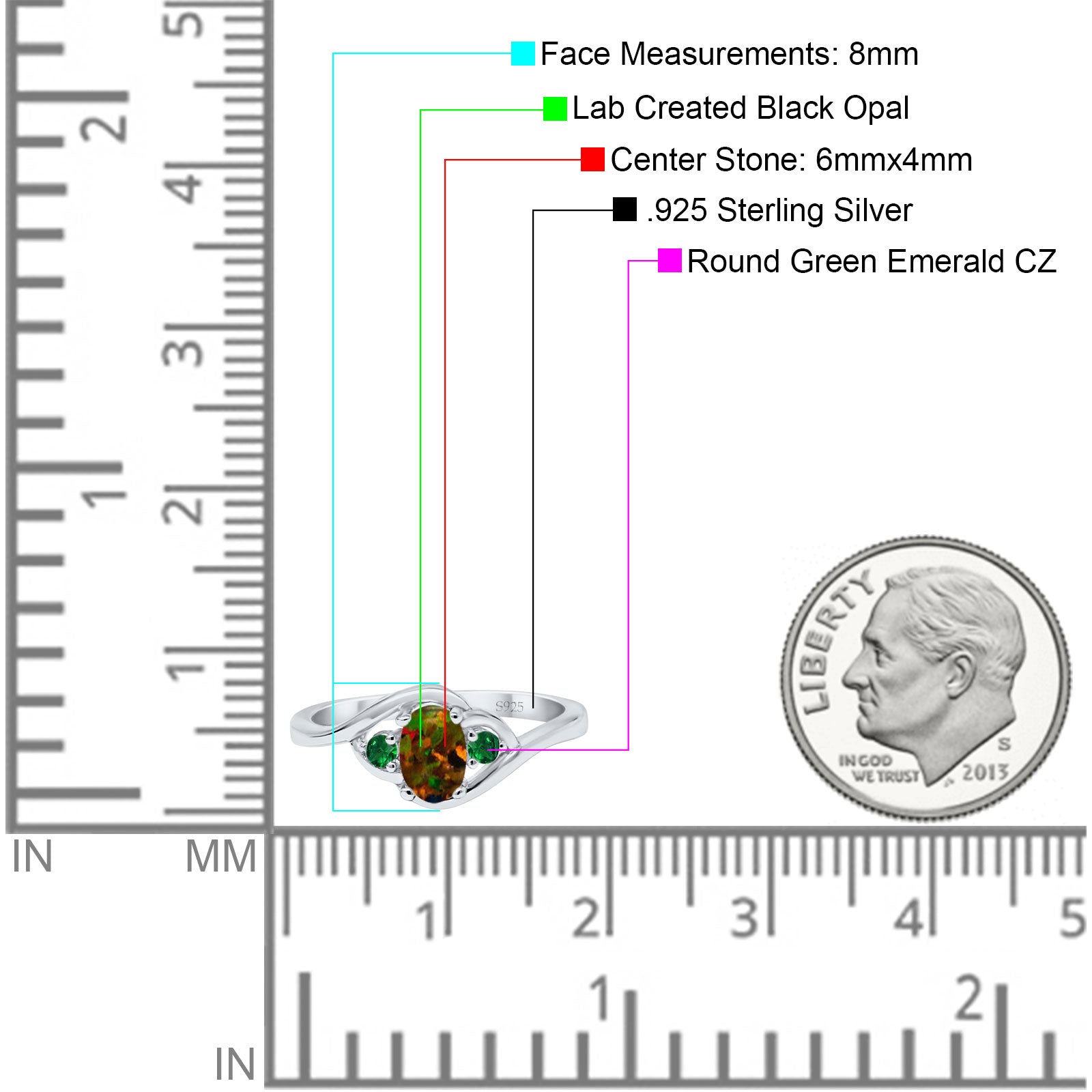 Three Stone Engagement Ring Oval Cut Round Simulated Green Emerald Cubic Zirconia 925 Sterling Silver