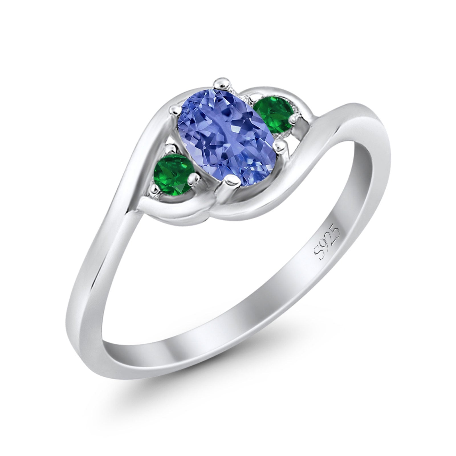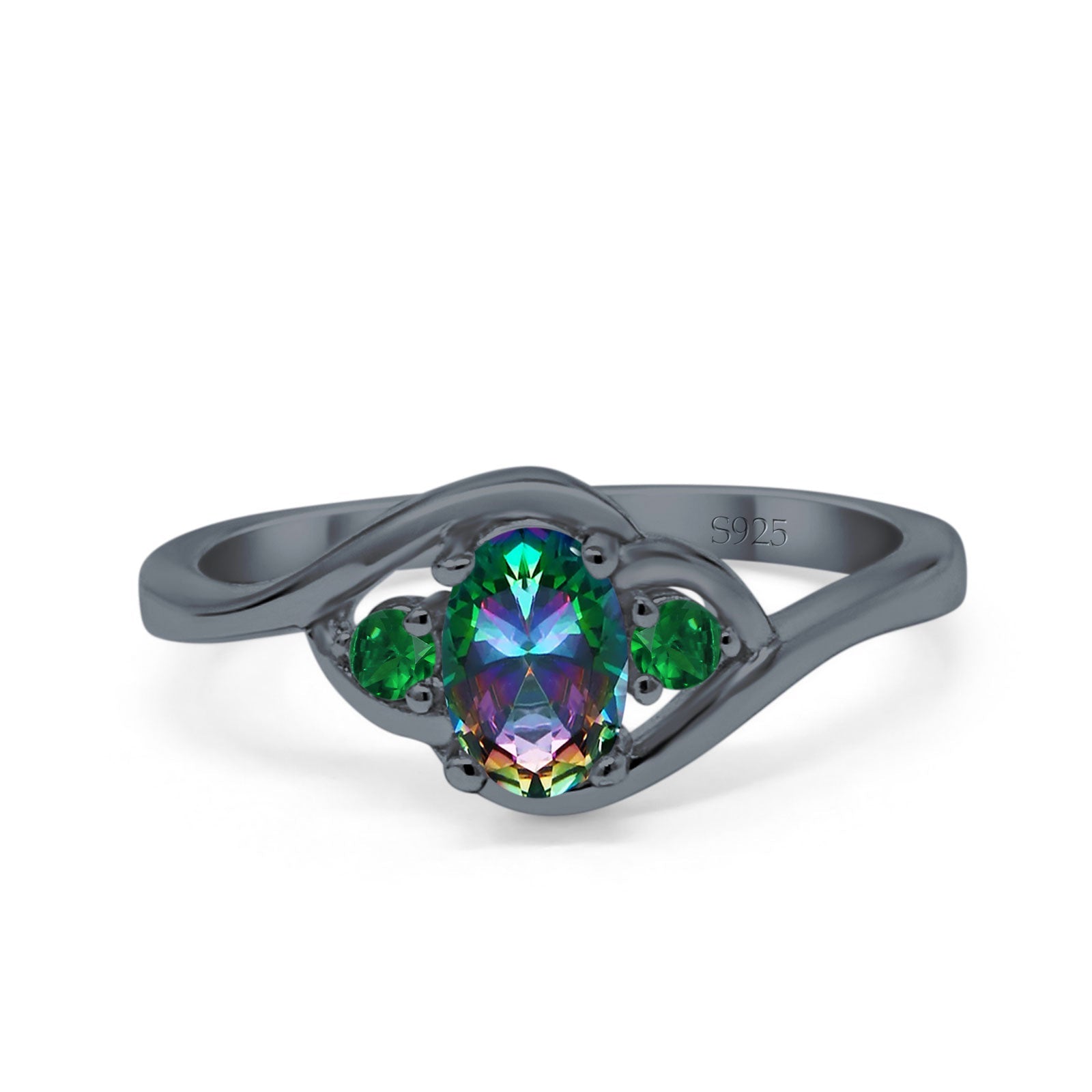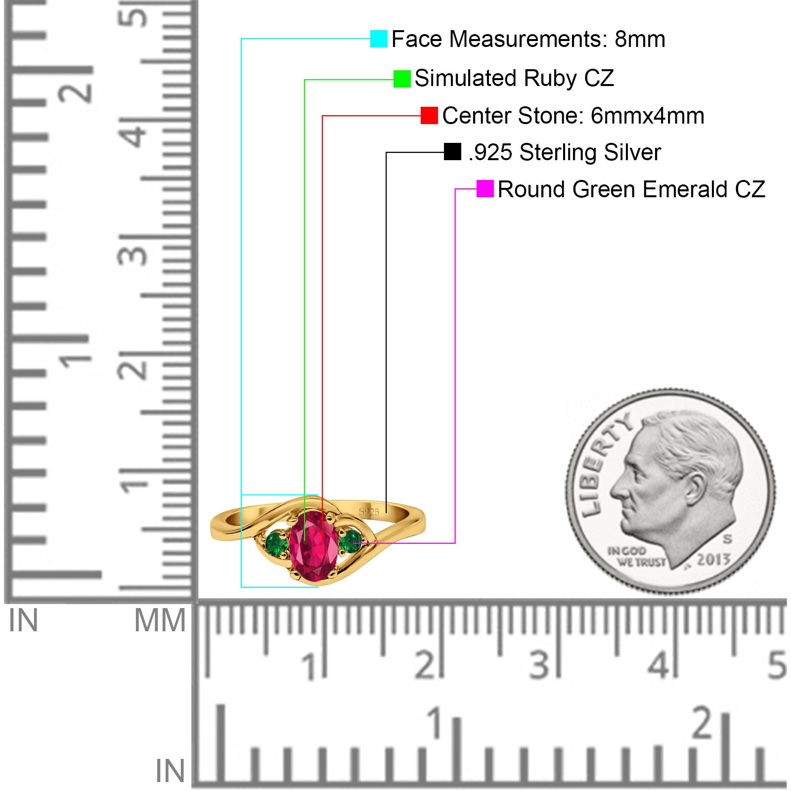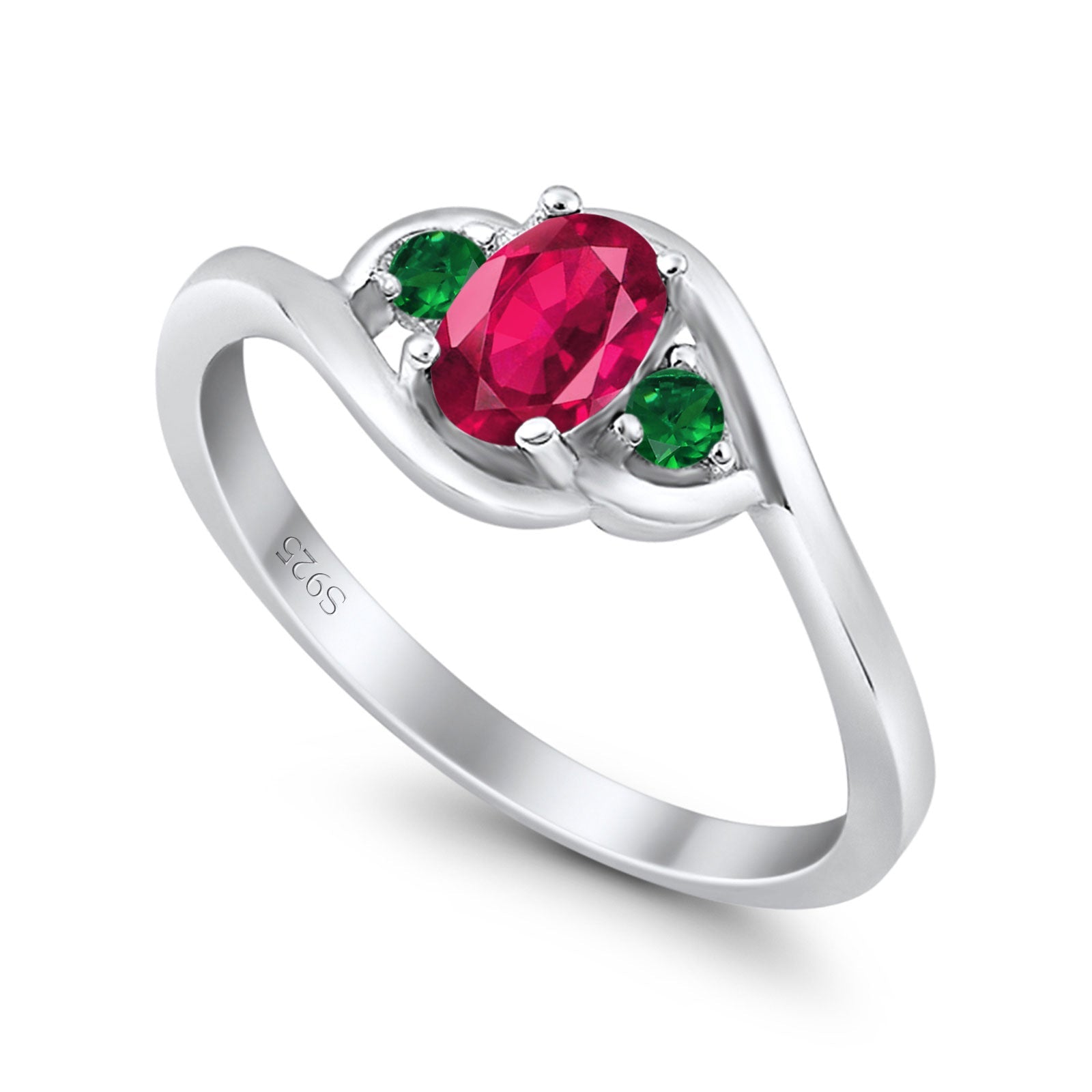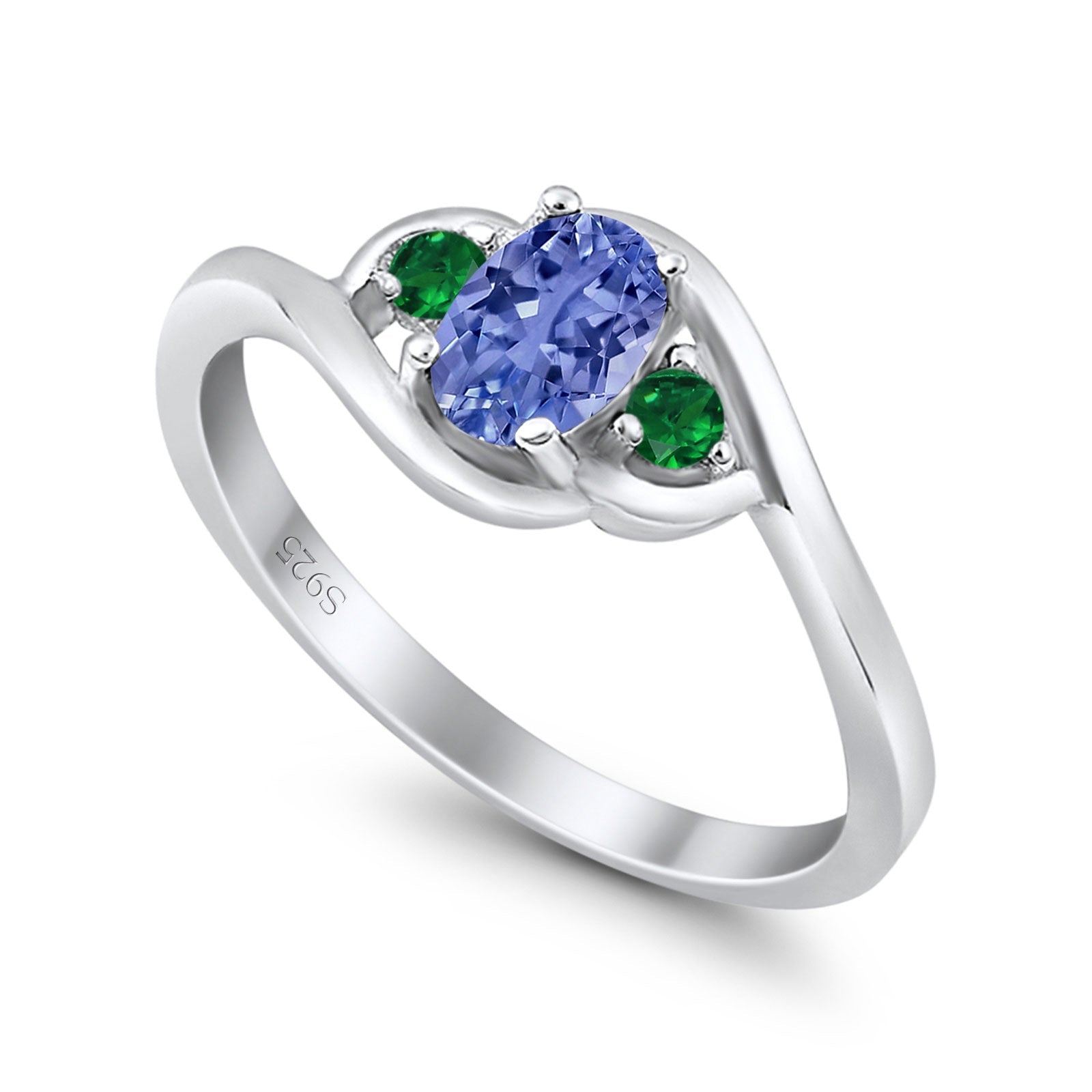 Three Stone Engagement Ring Oval Cut Round Simulated Green Emerald Cubic Zirconia 925 Sterling Silver