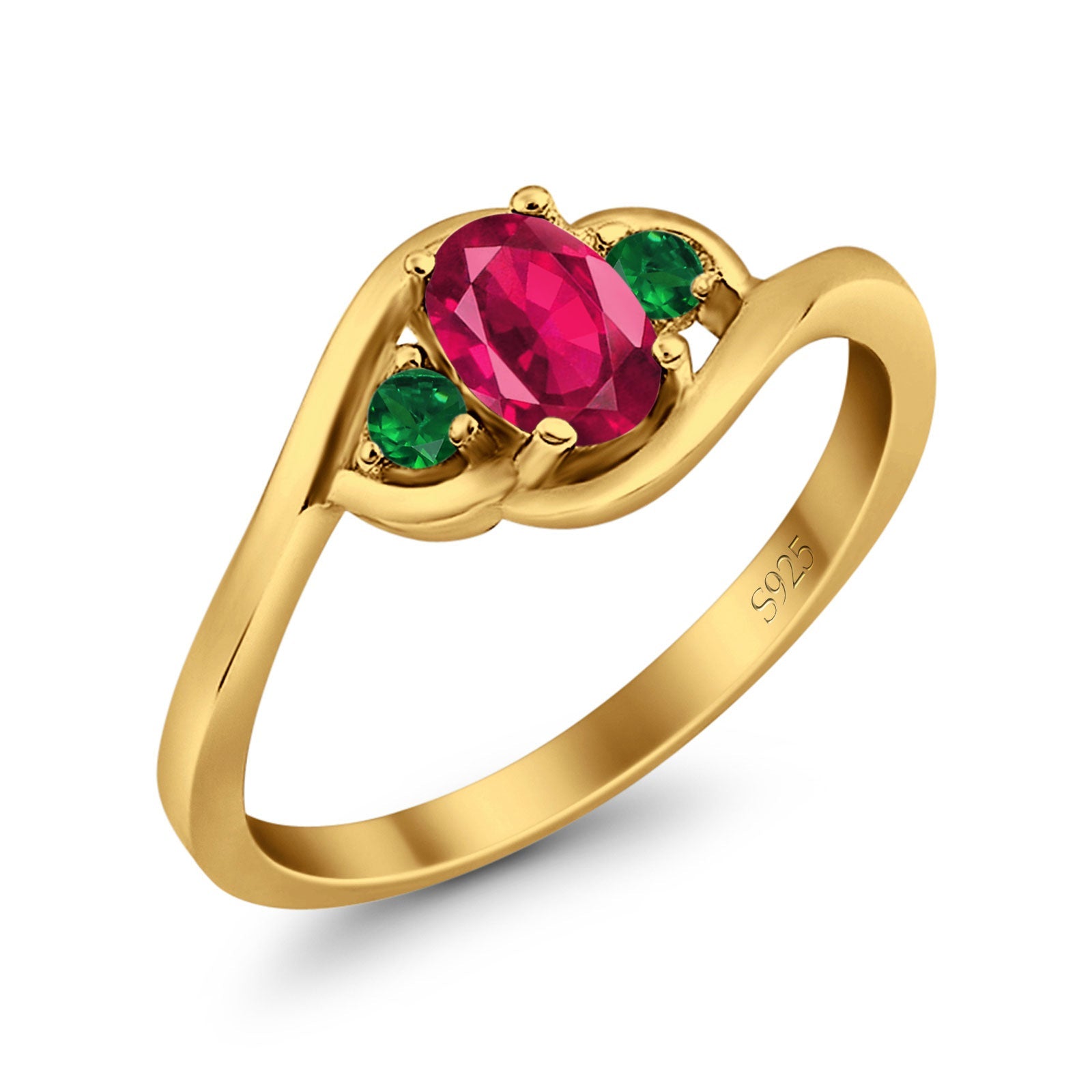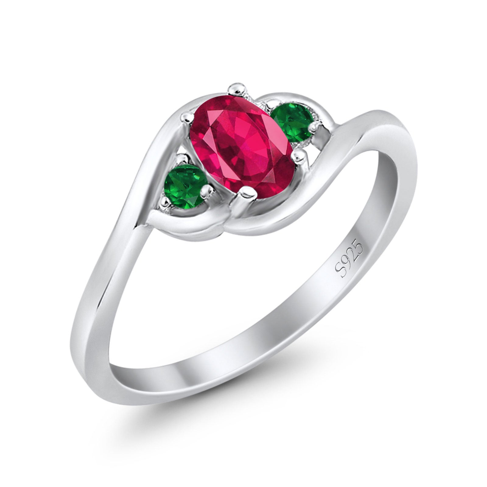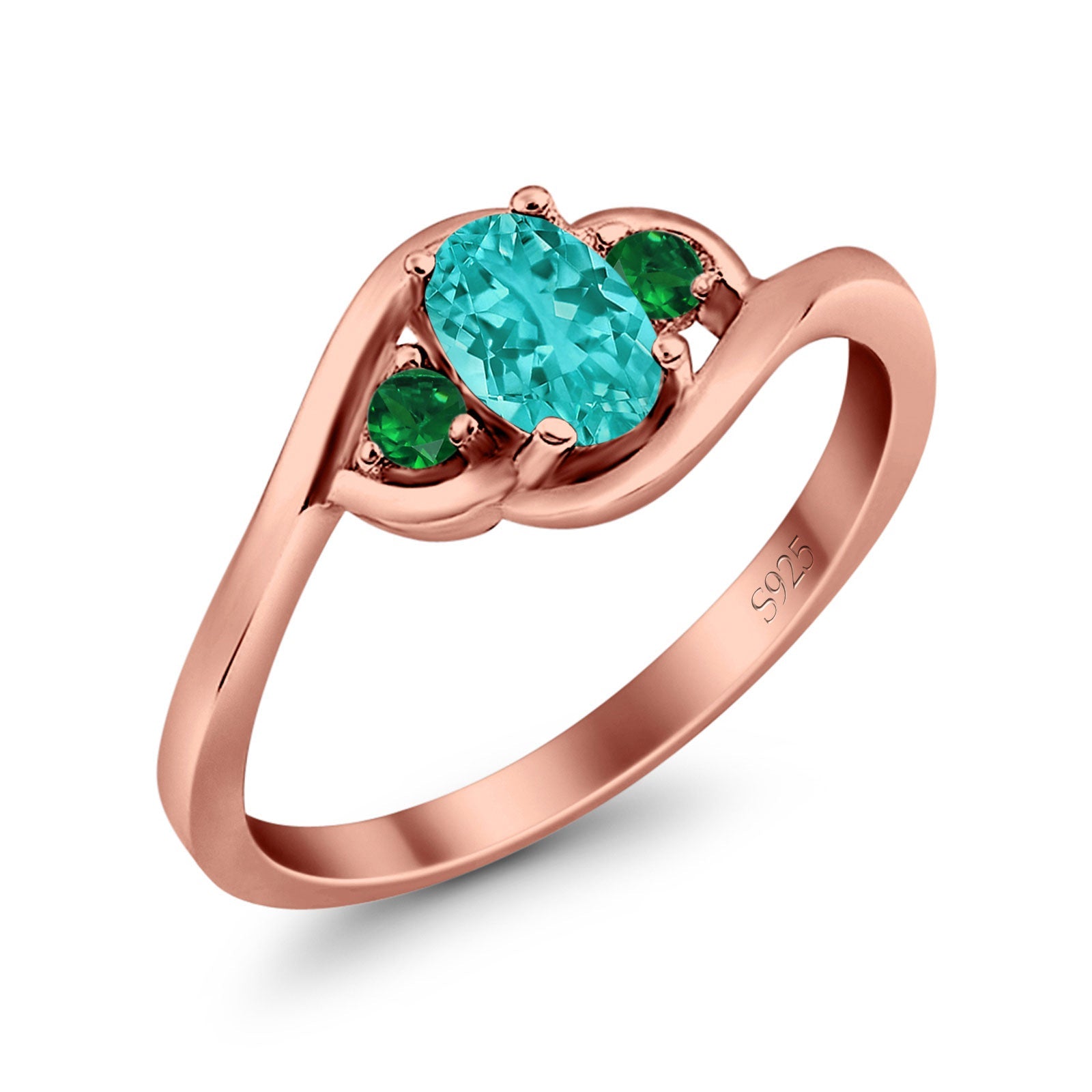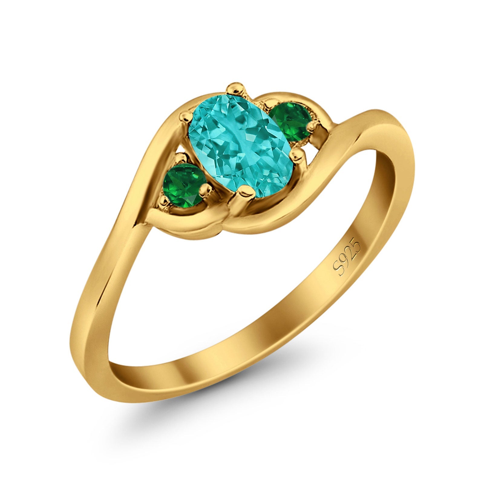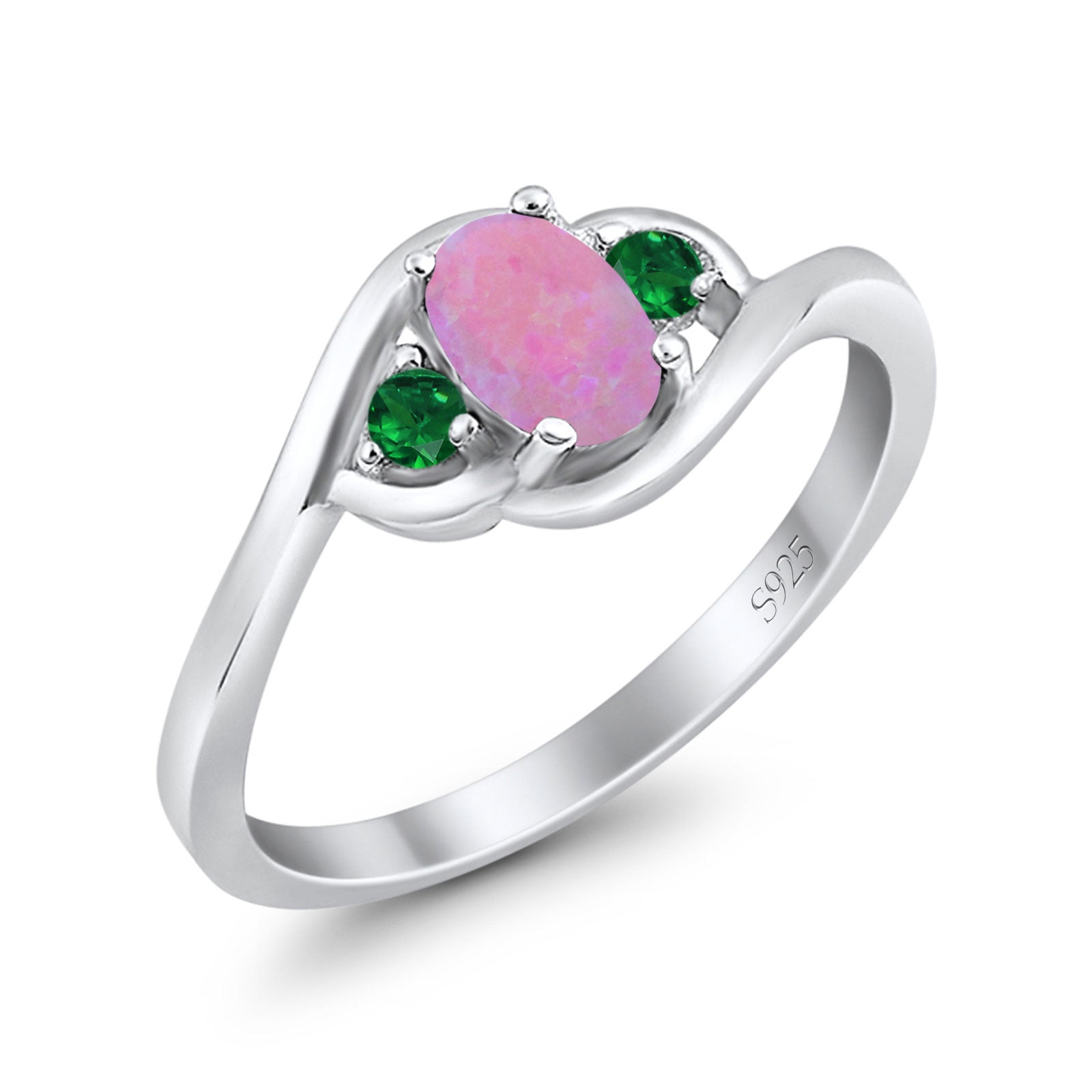 Three Stone Engagement Ring Oval Cut Round Simulated Green Emerald Cubic Zirconia 925 Sterling Silver