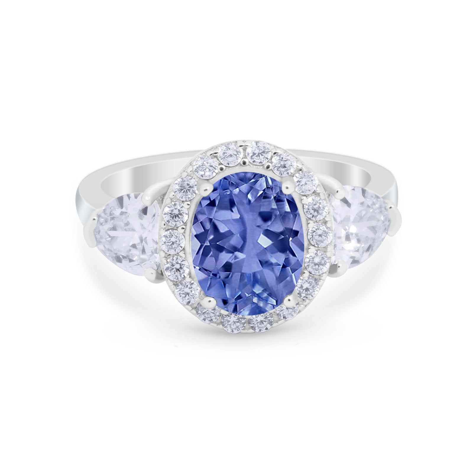 CZ & Blue Sapphire CZ Rose Tone Silver