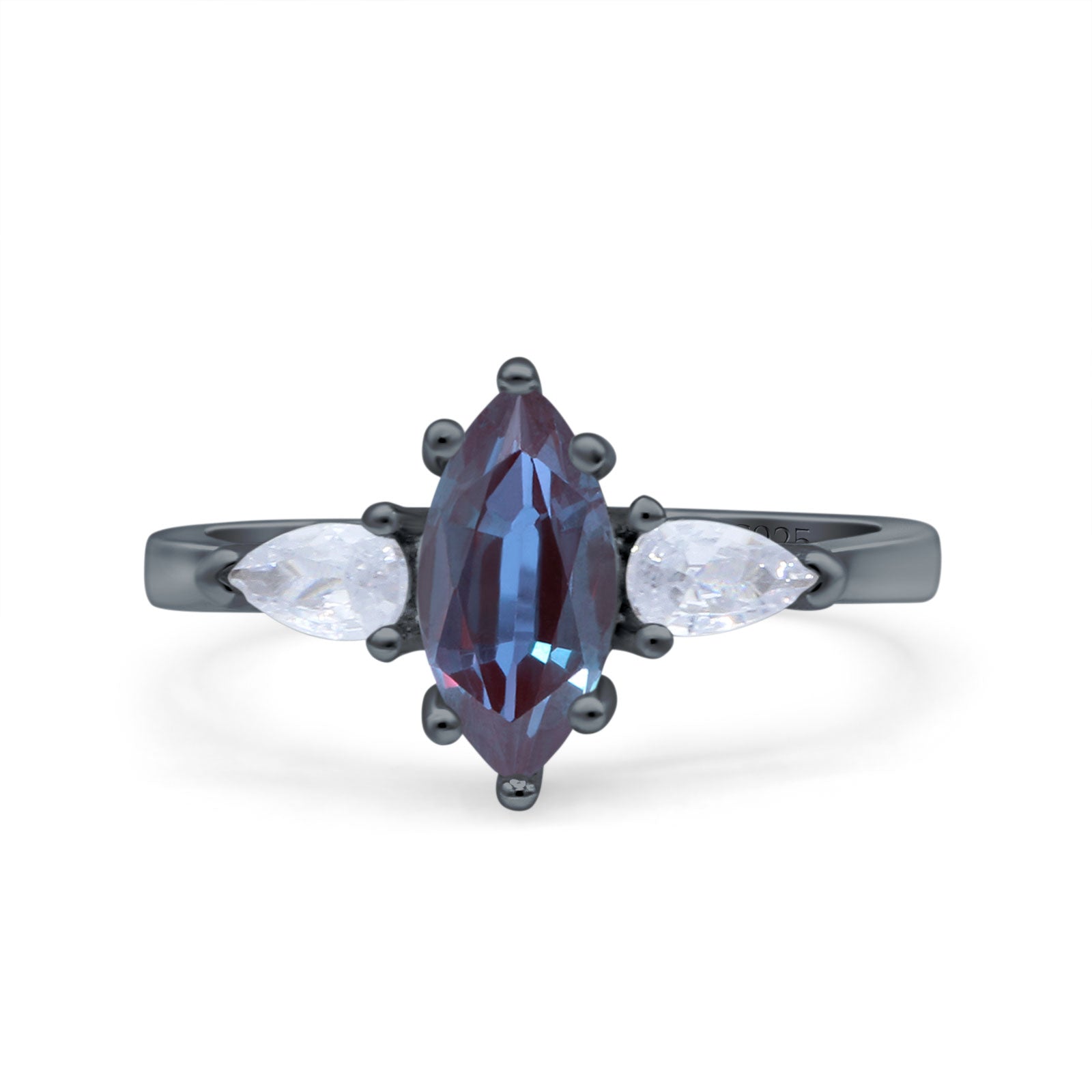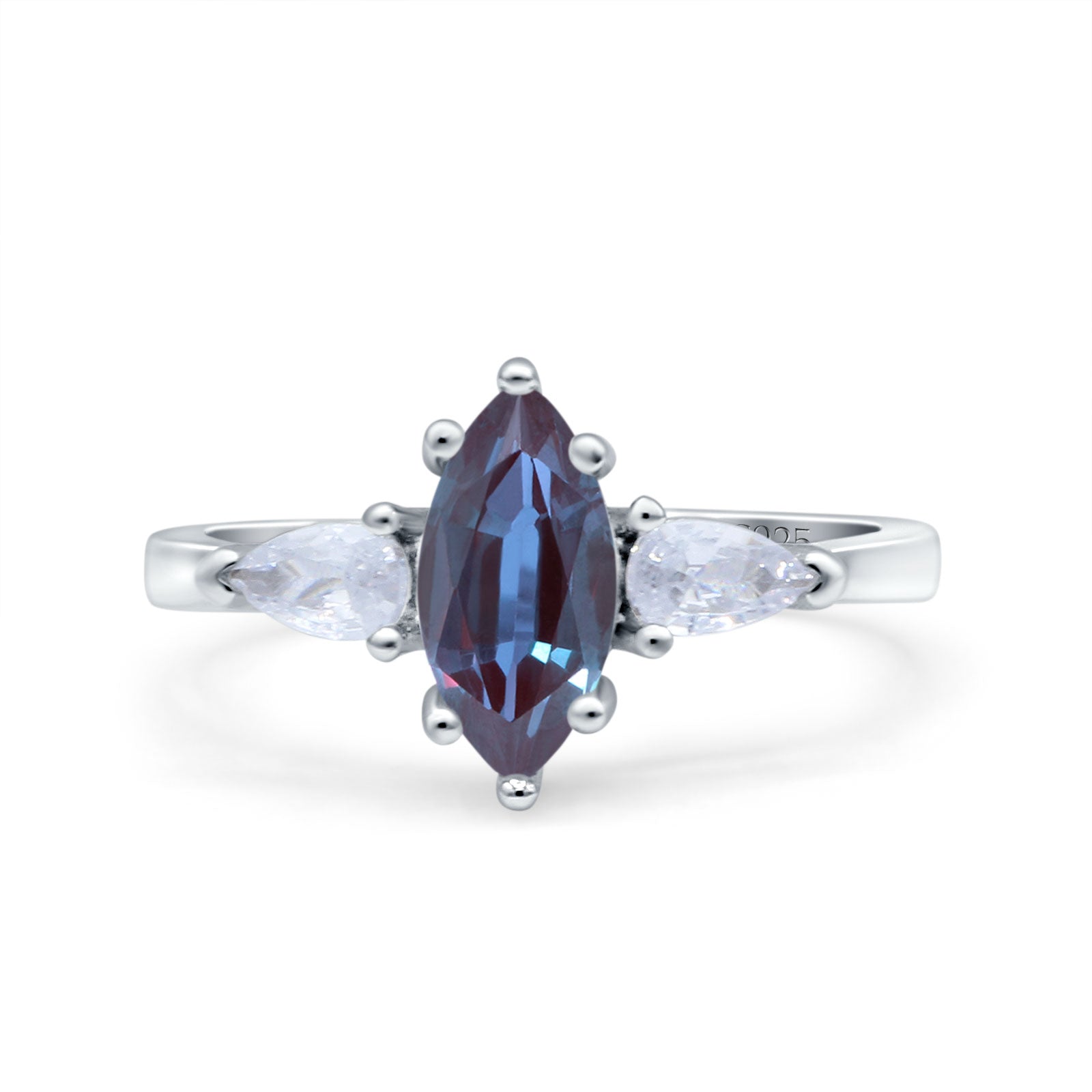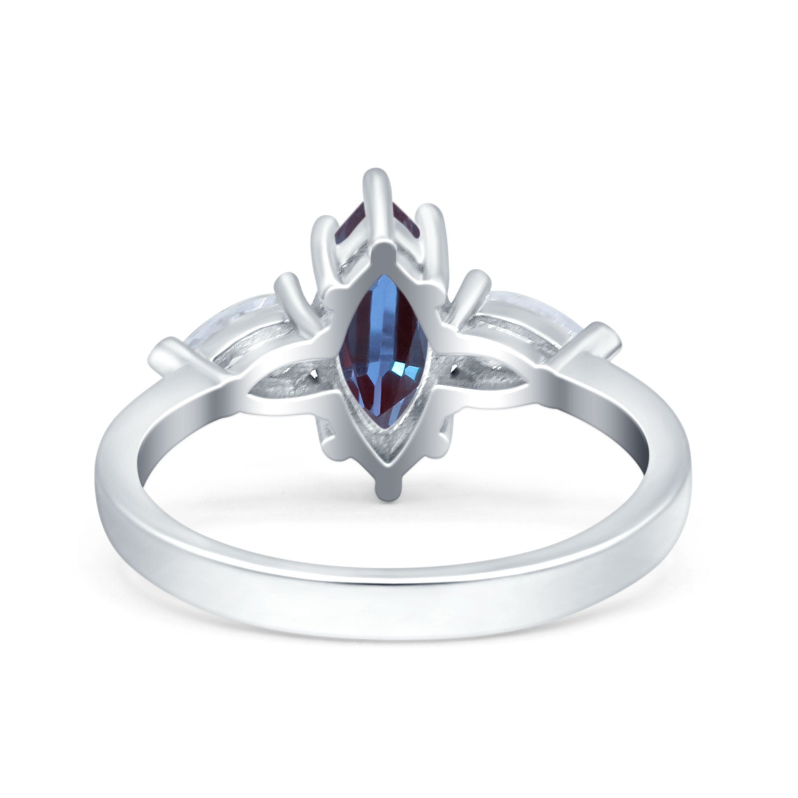 Three Stone Marquise Lab Alexandrite Pear Teardrop CZ Trellis Ring 925 Sterling Silver