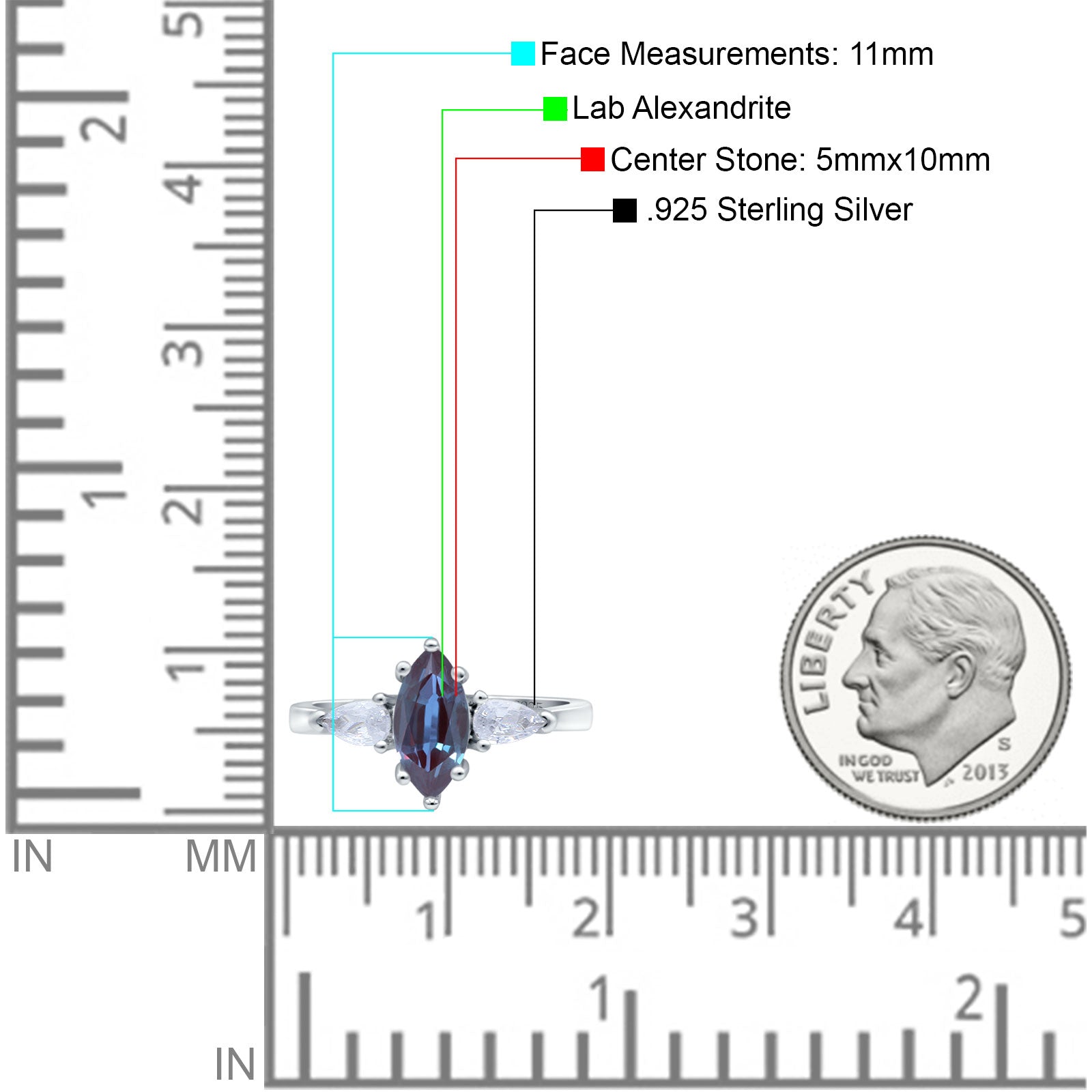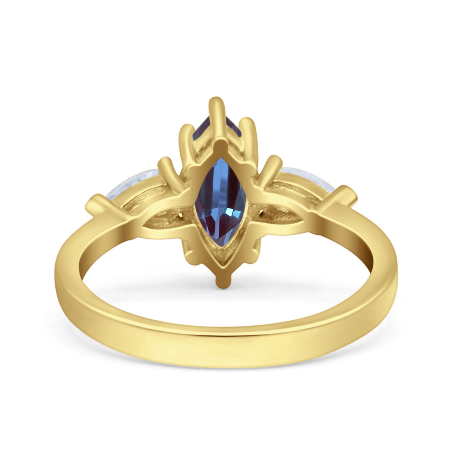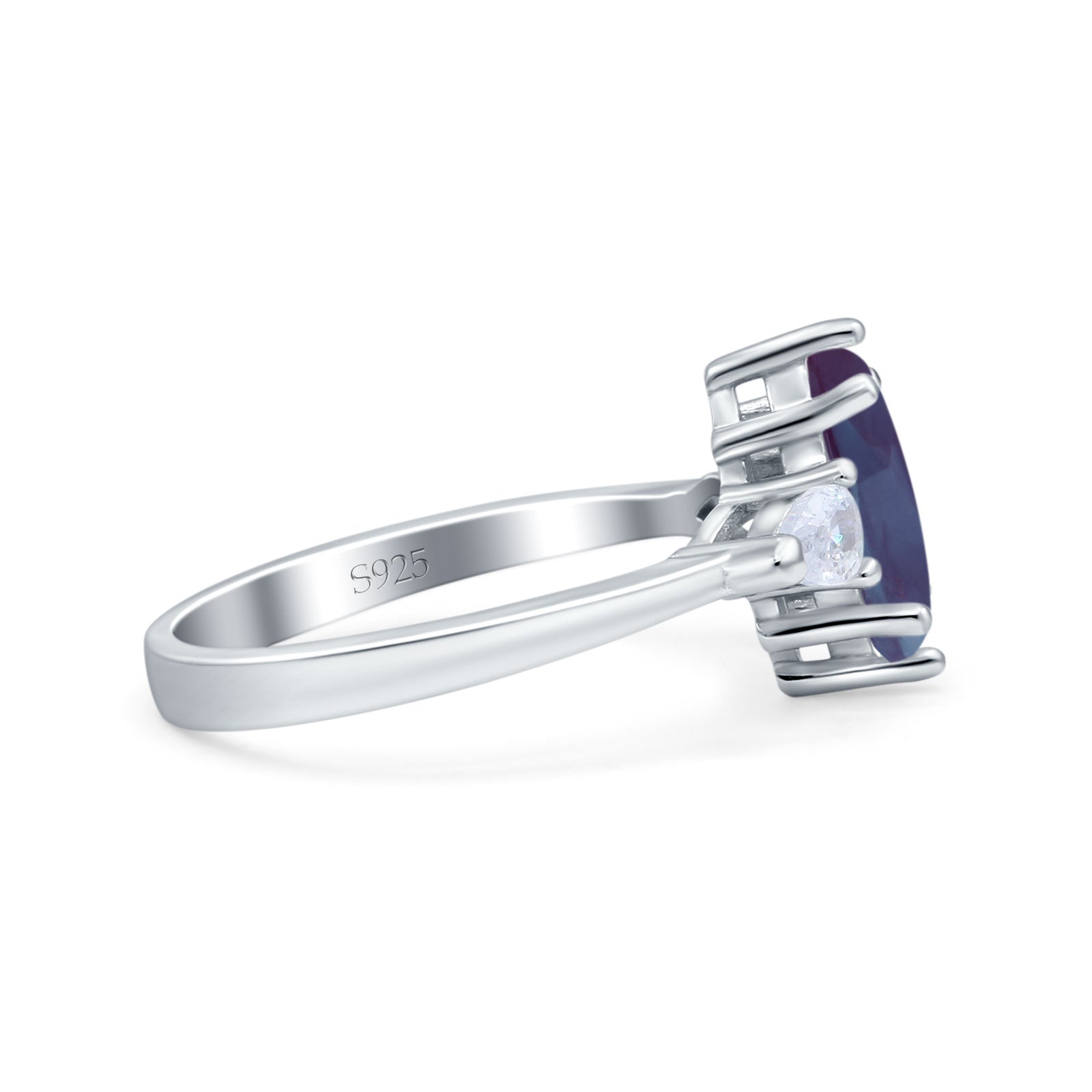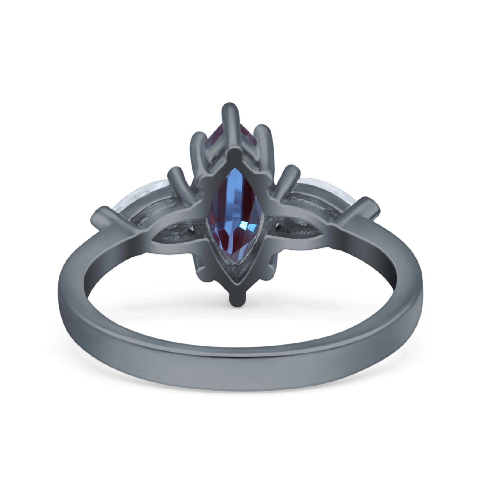 Three Stone Marquise Lab Alexandrite Pear Teardrop CZ Trellis Ring 925 Sterling Silver