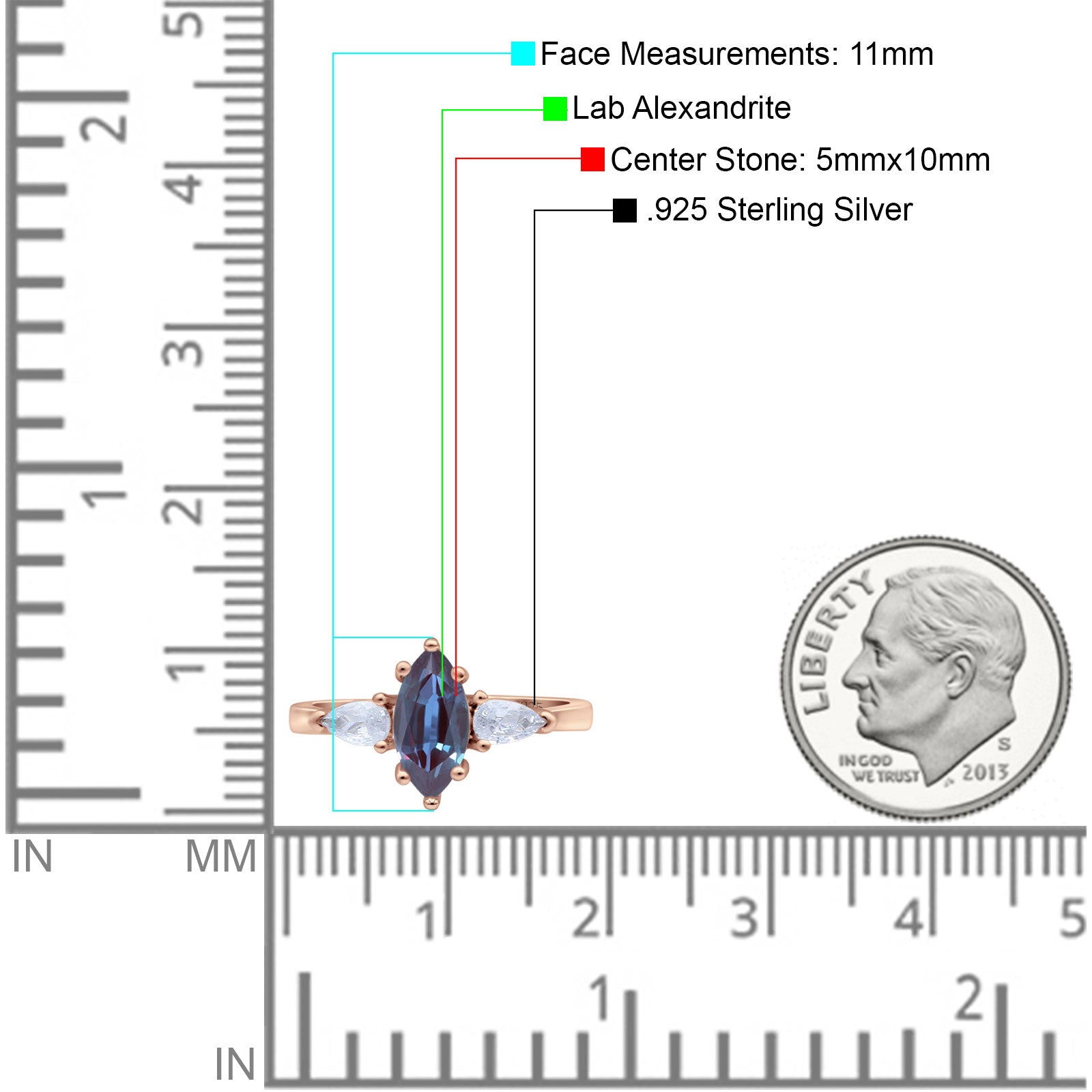 Lab Alexandrite Rose Tone Silver