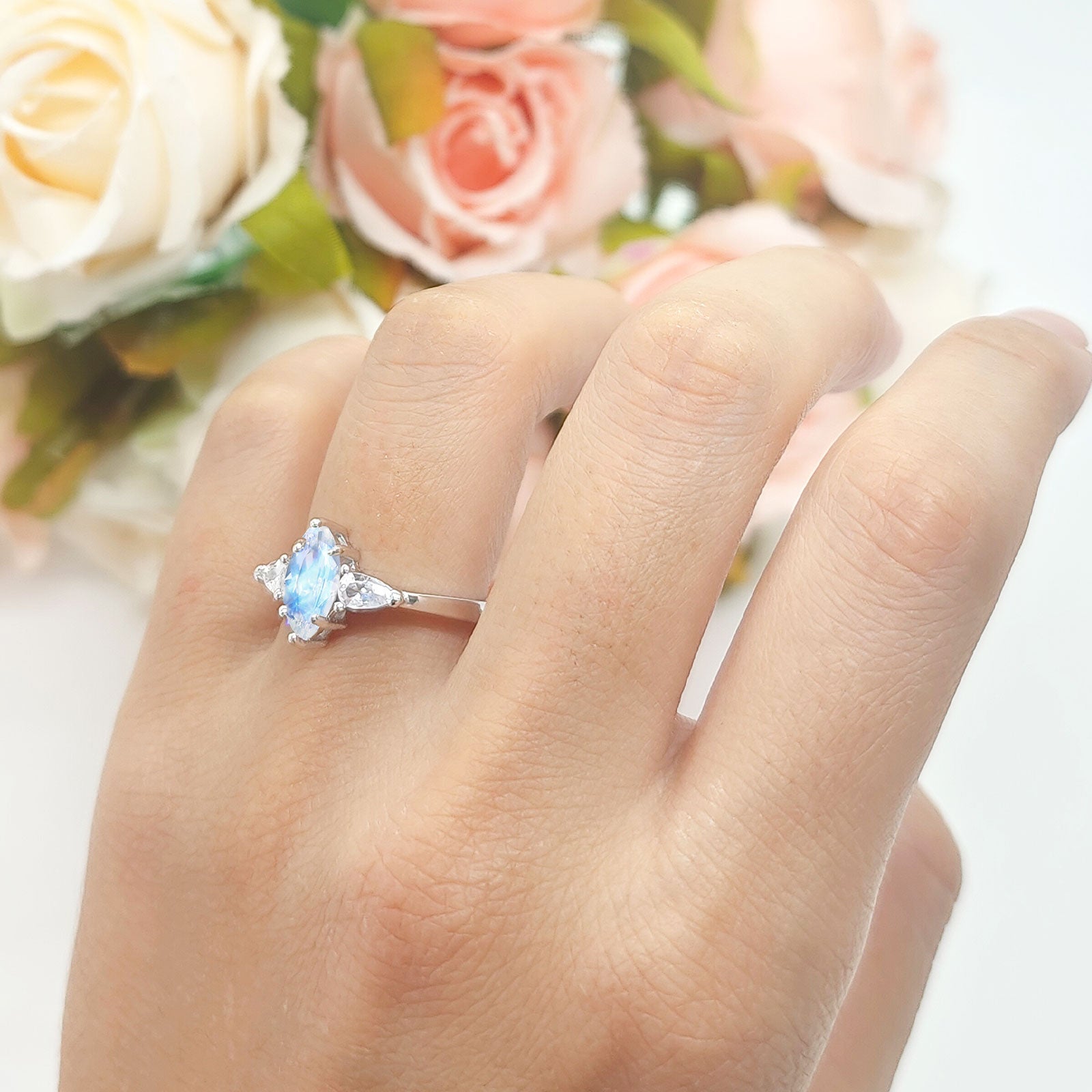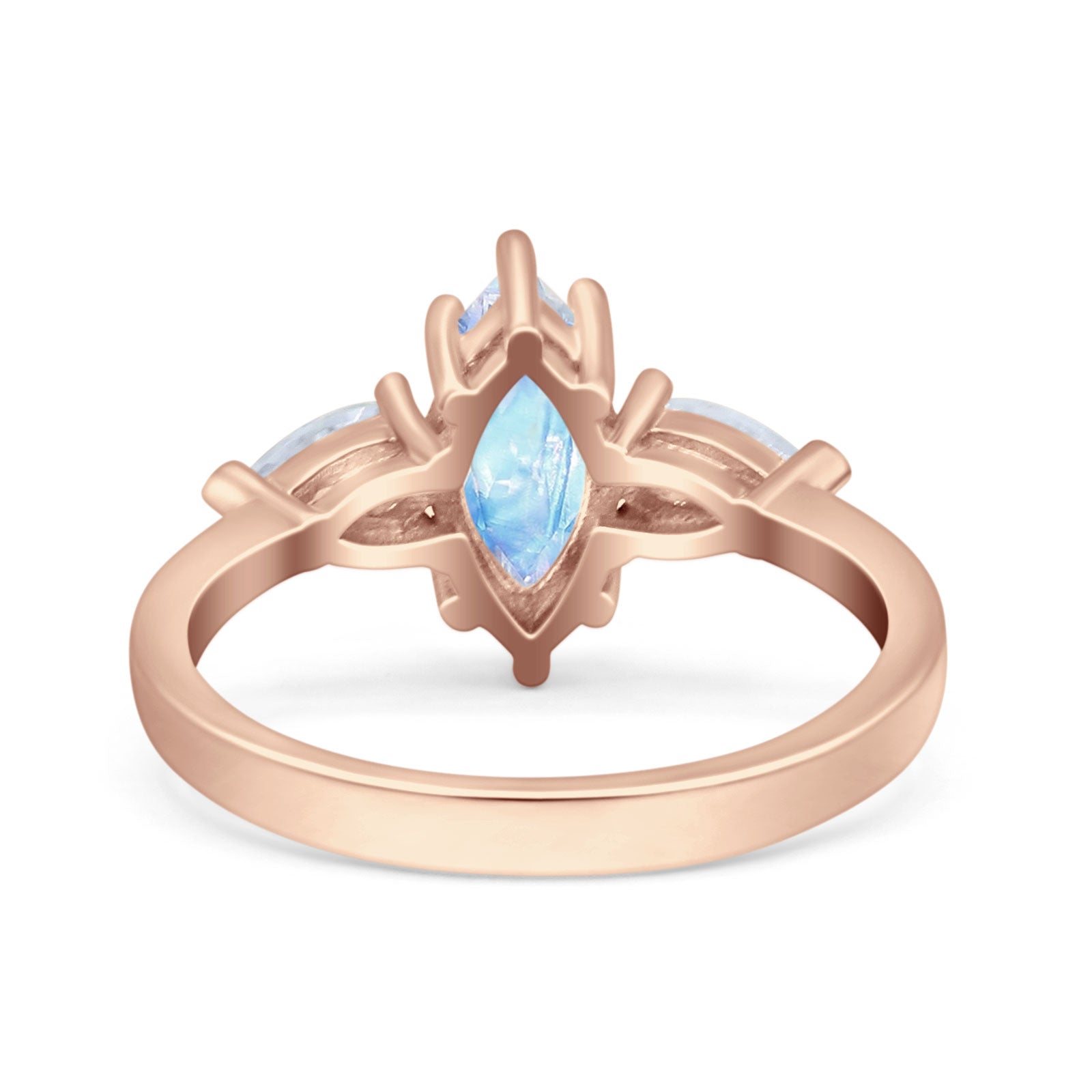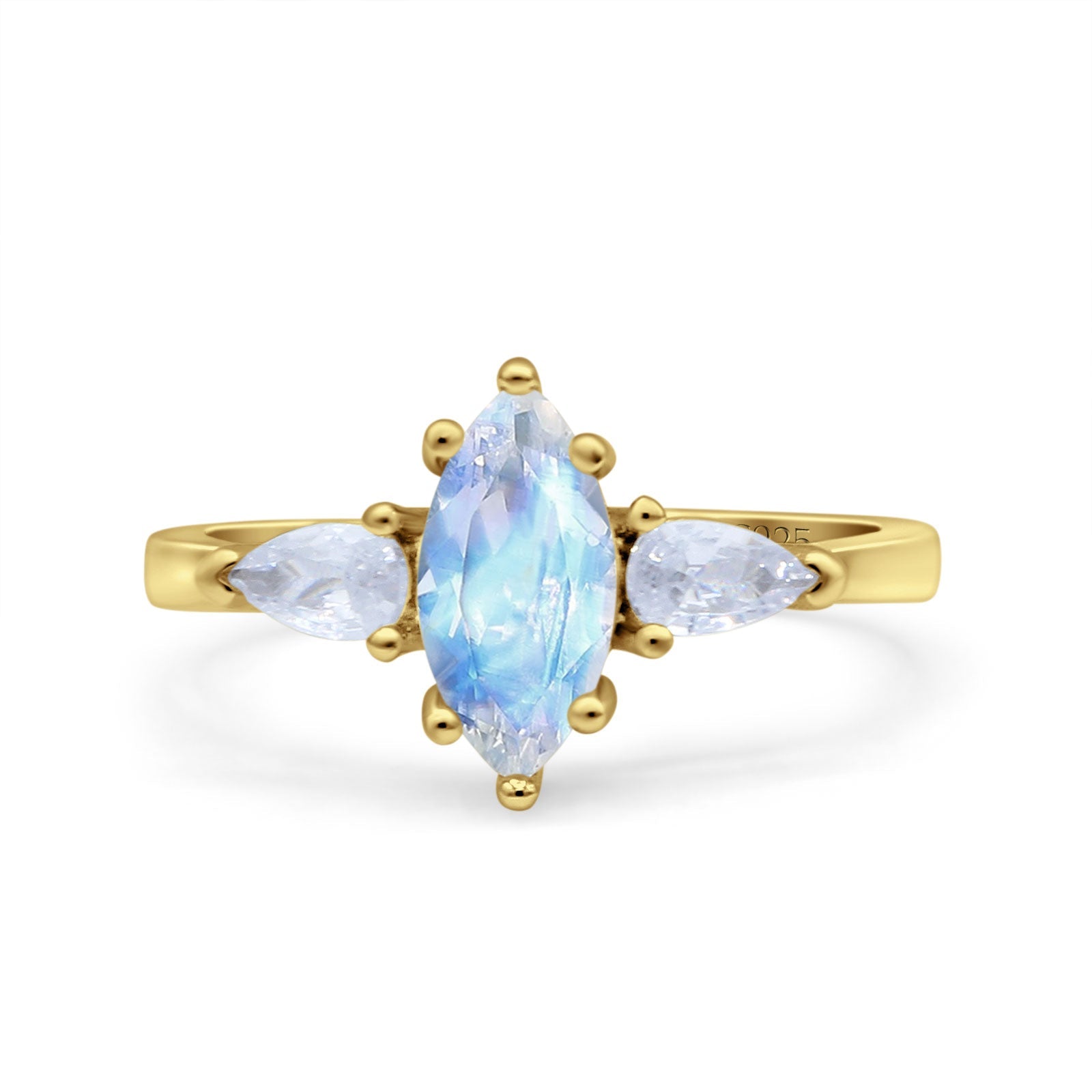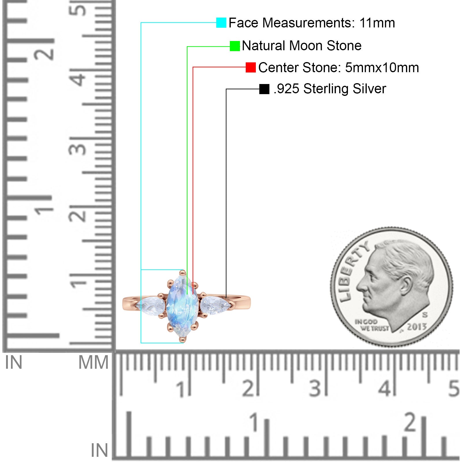 Three Stone Marquise Natural Moonstone Pear Teardrop CZ Trellis Ring 925 Sterling Silver