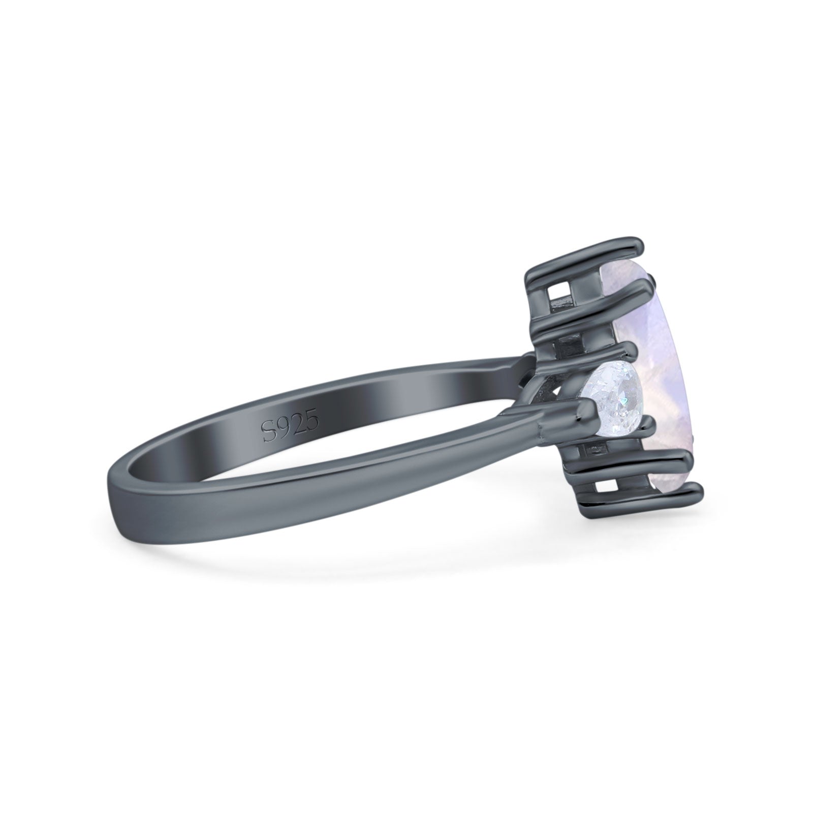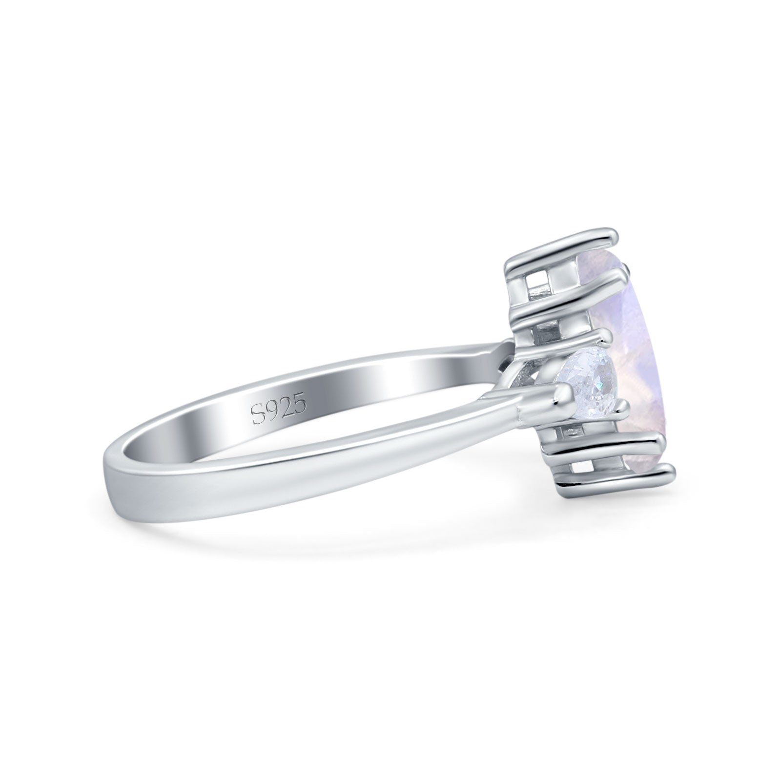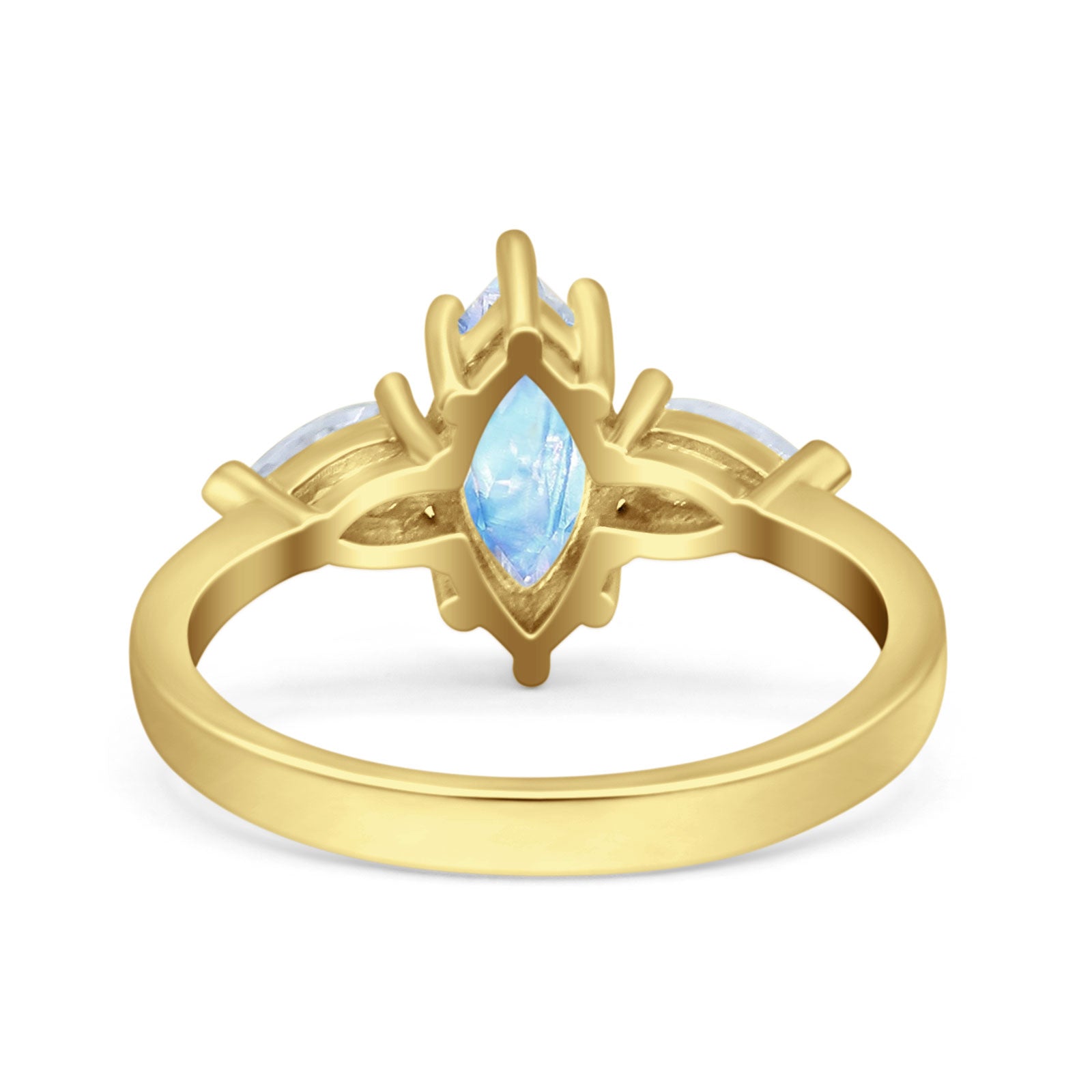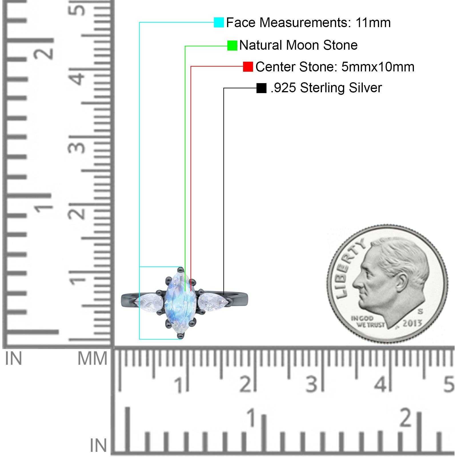 Three Stone Marquise Natural Moonstone Pear Teardrop CZ Trellis Ring 925 Sterling Silver