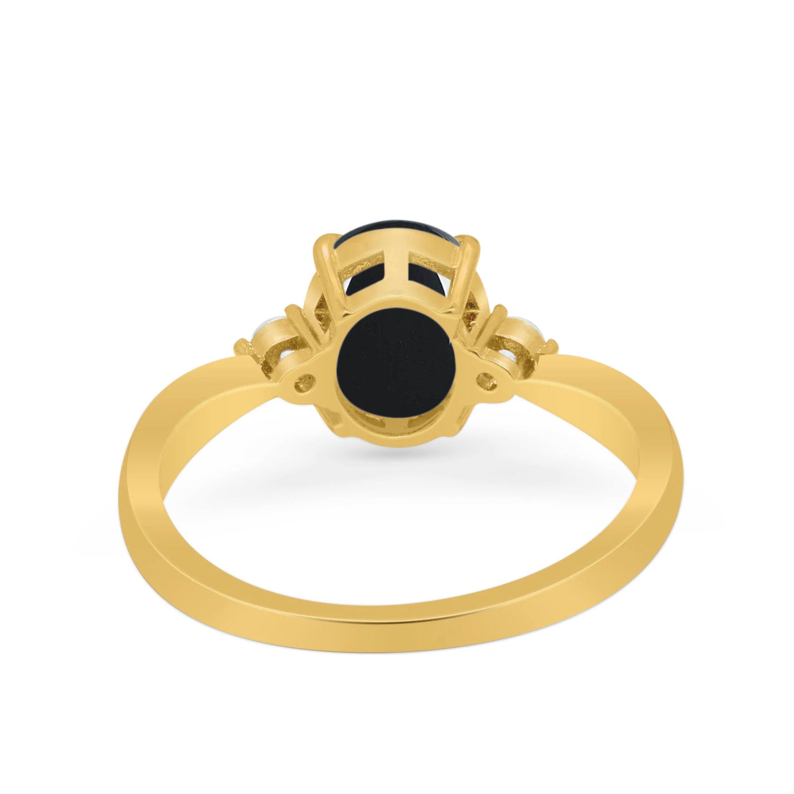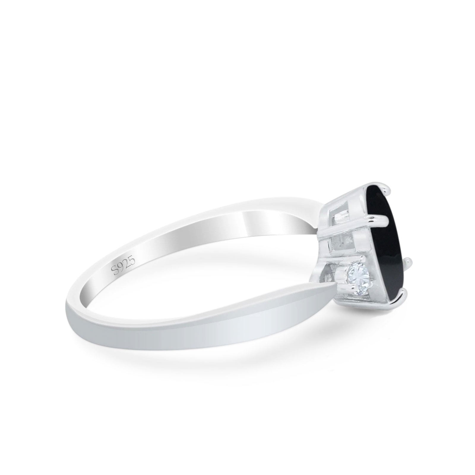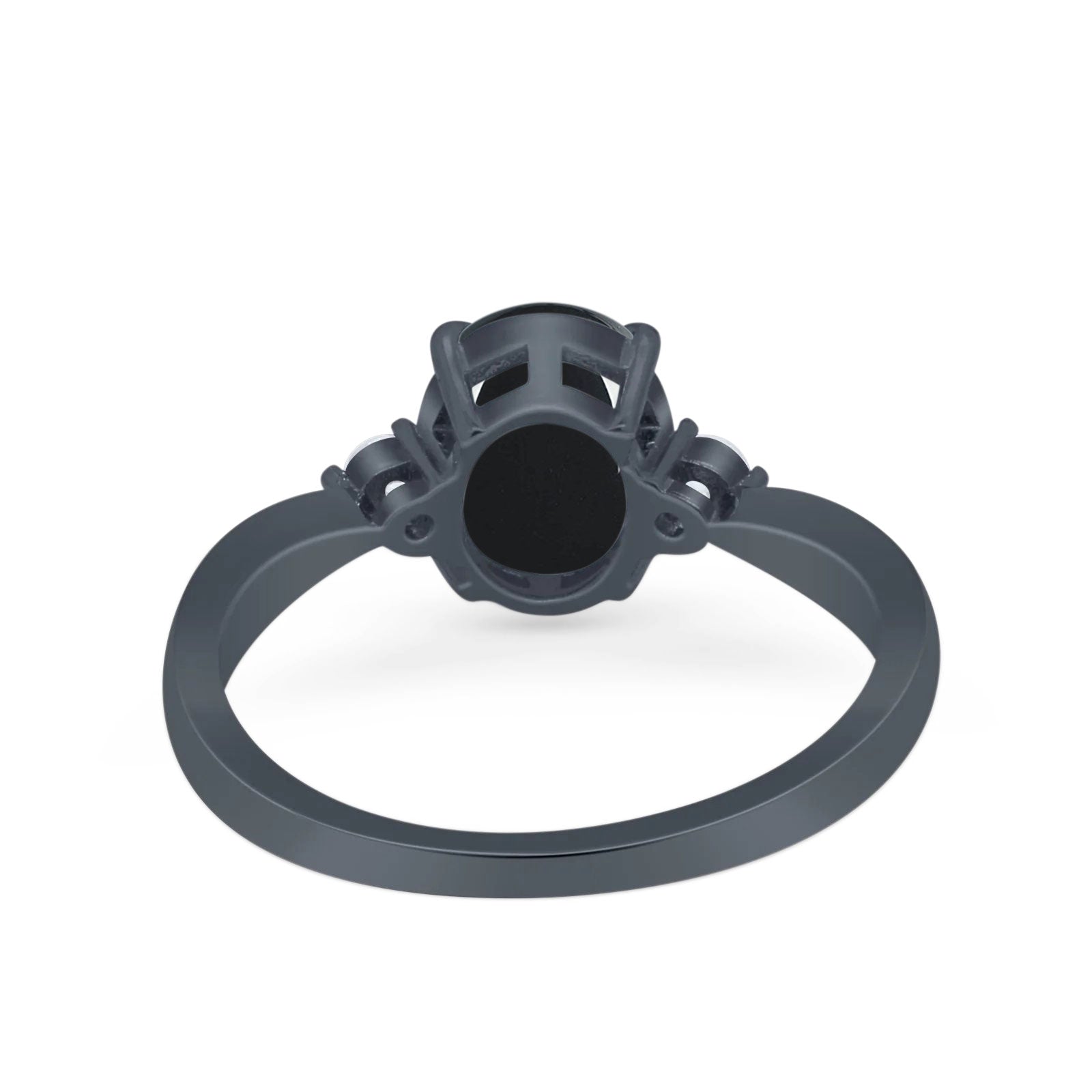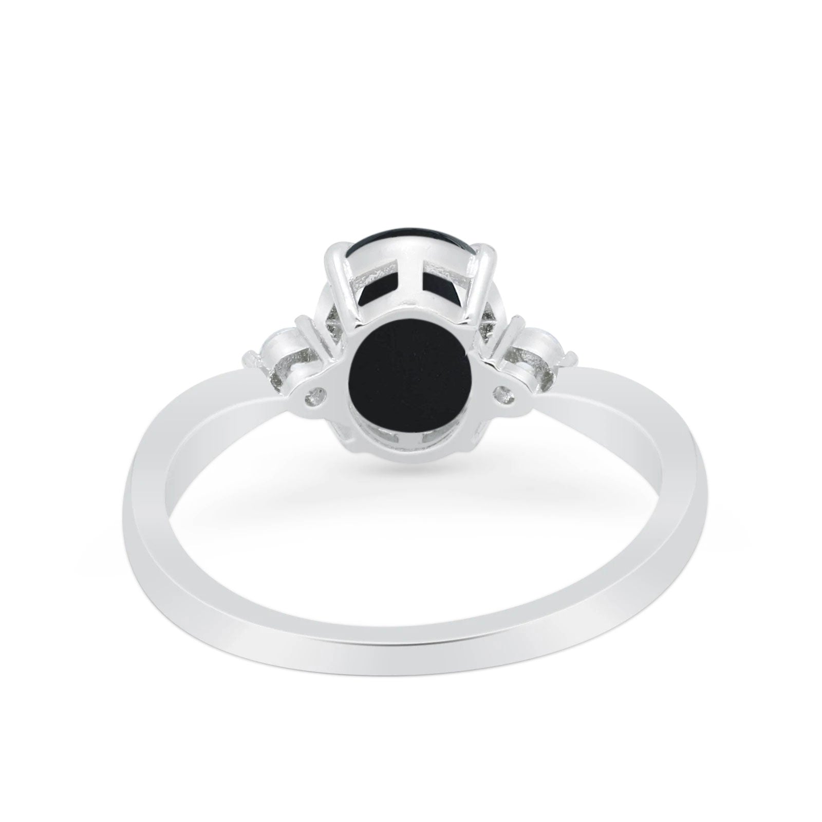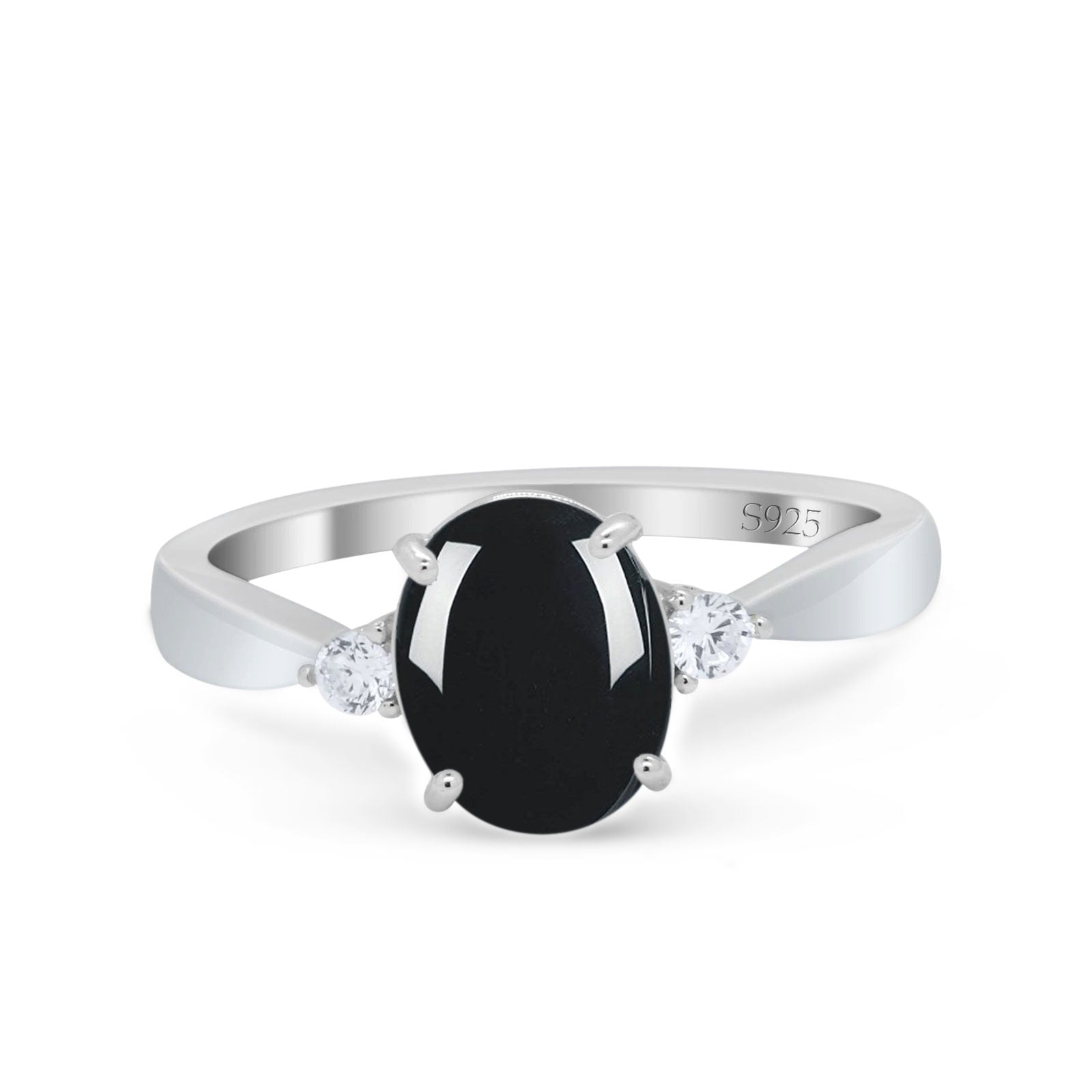 Three Stone Oval Natural Black Onyx Solitaire Rings 925 Sterling Silver