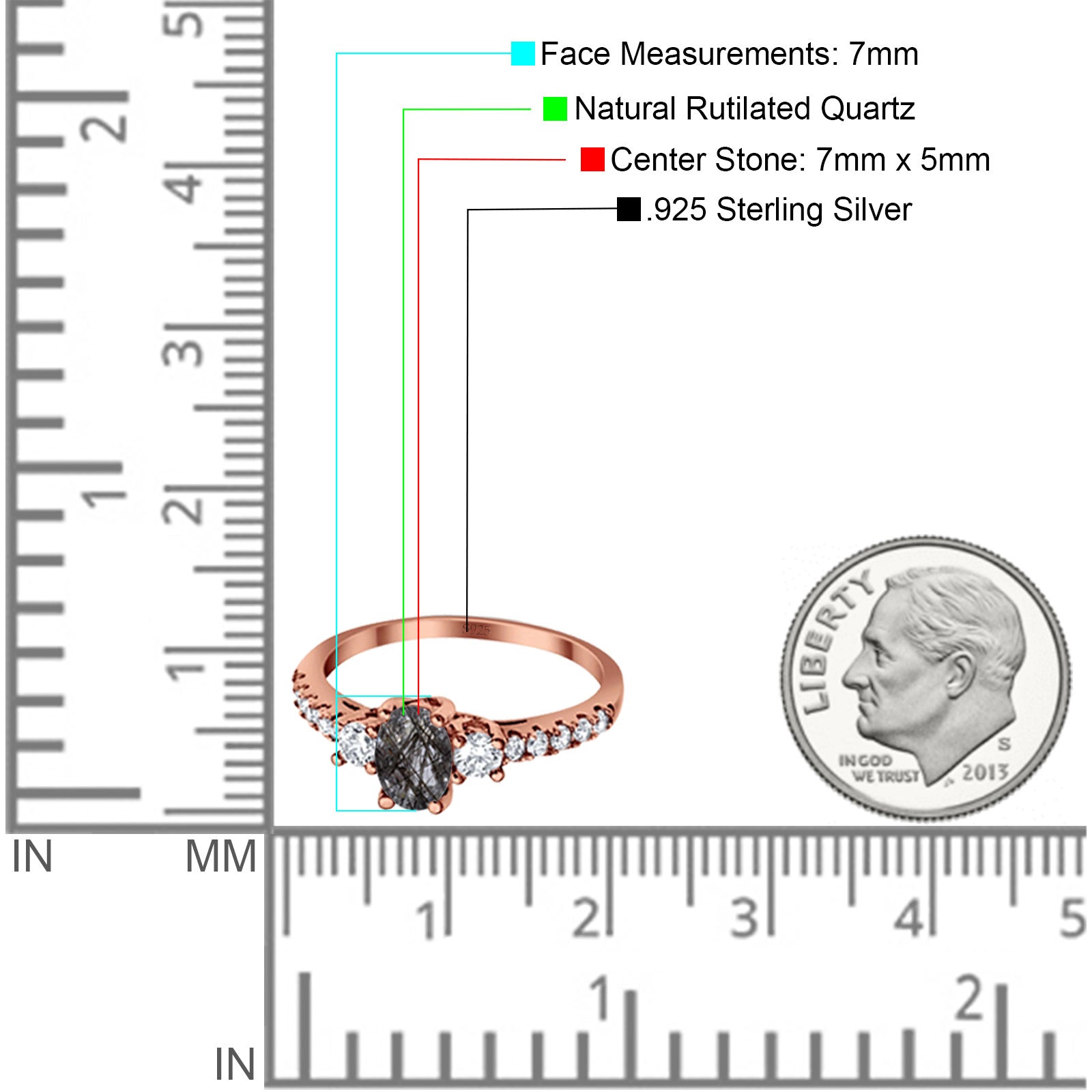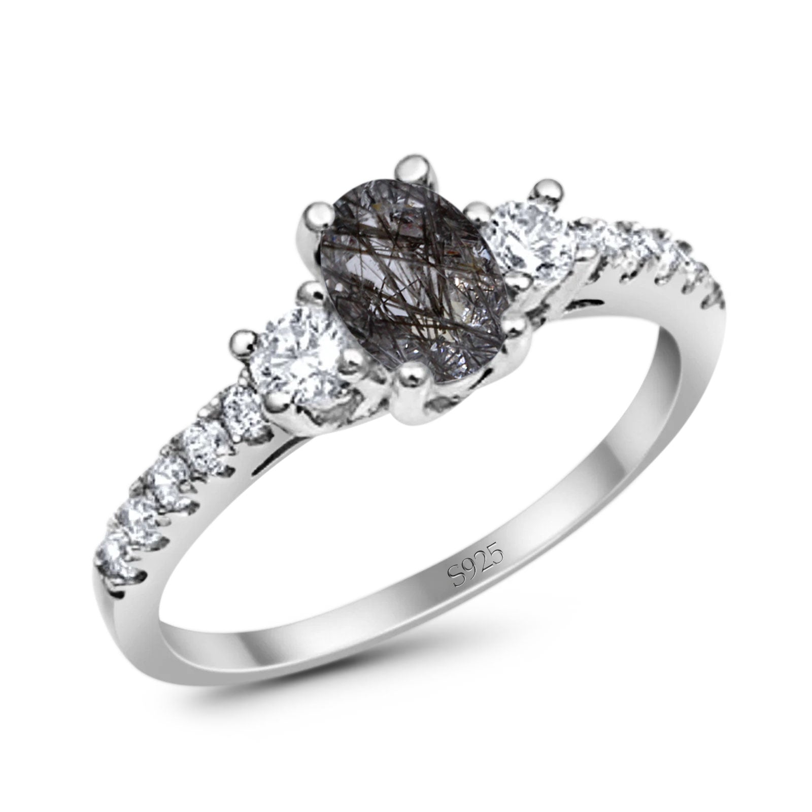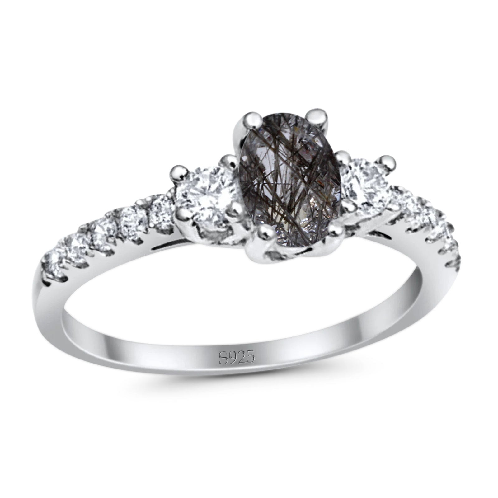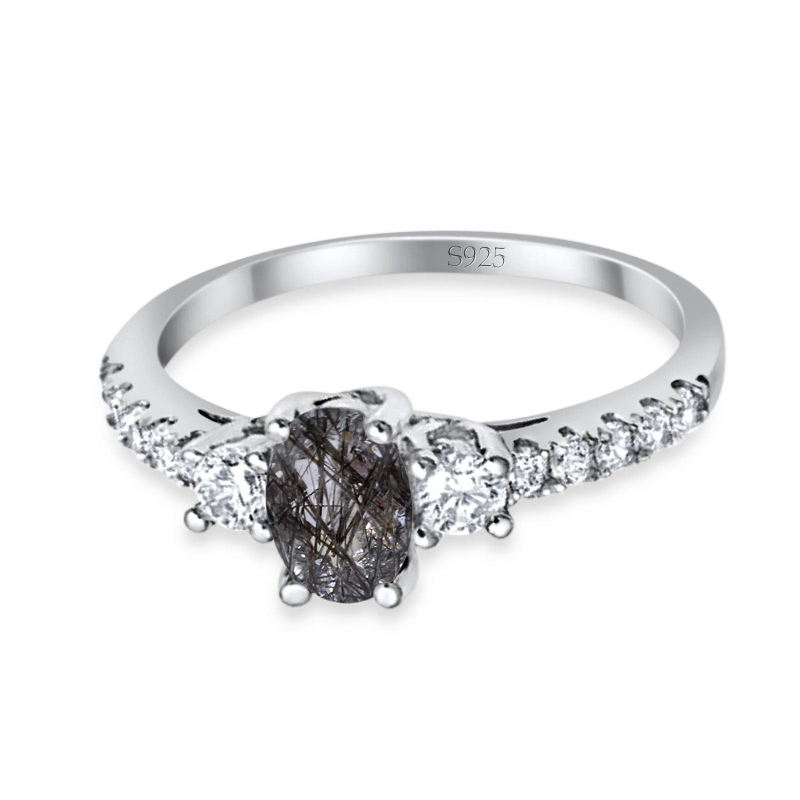 Three Stone Oval Natural Rutilated Quartz Trellis Ring 925 Sterling Silver