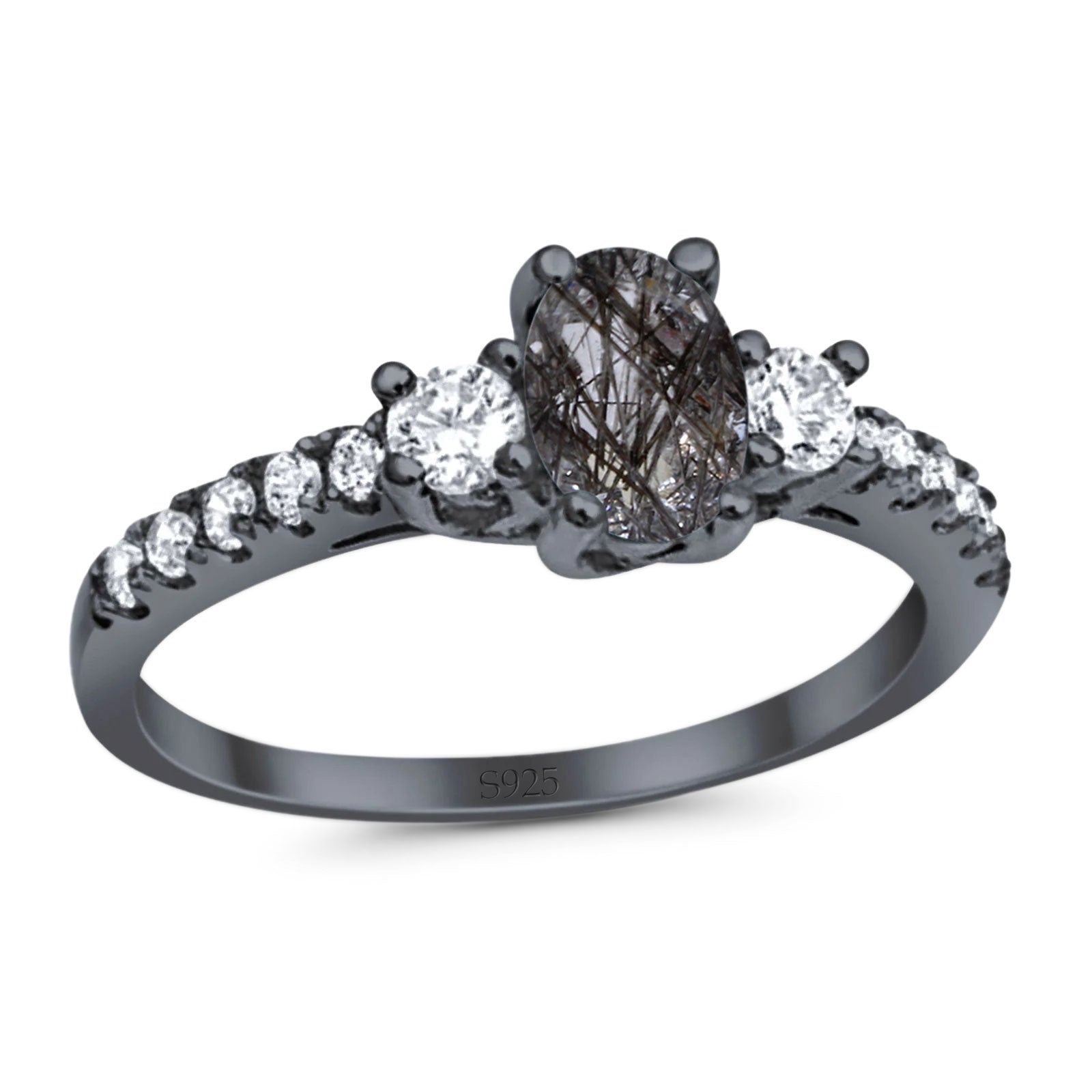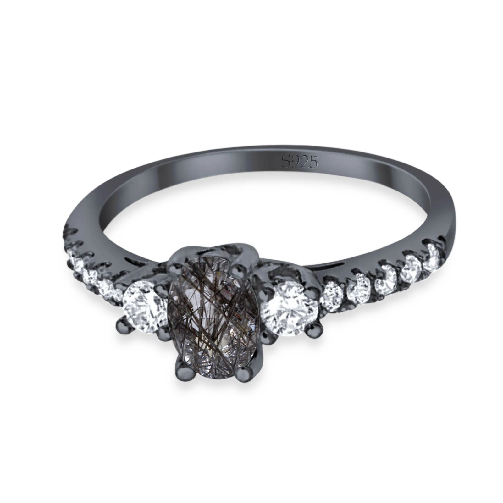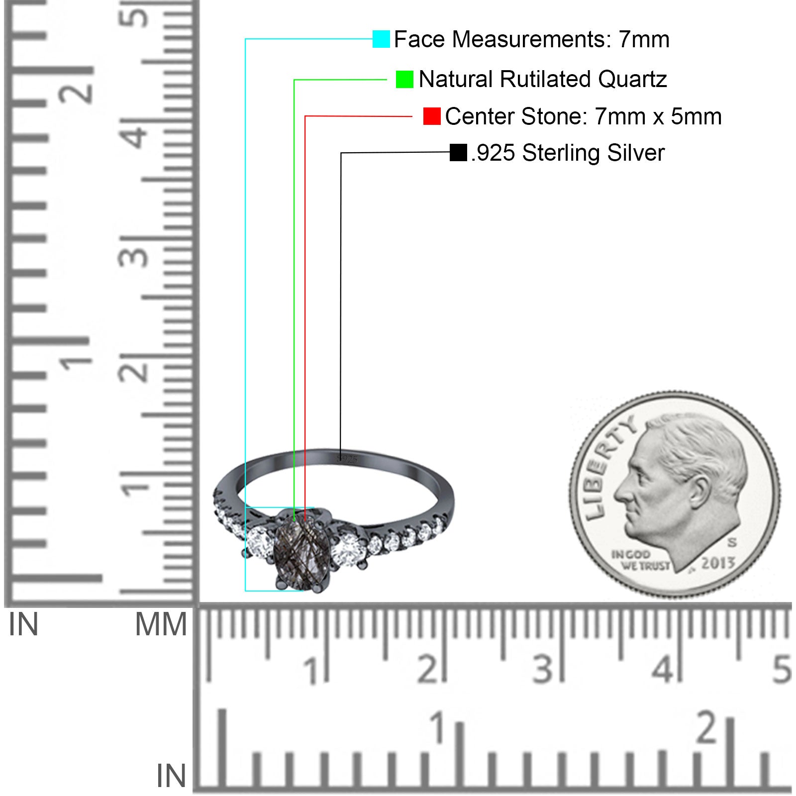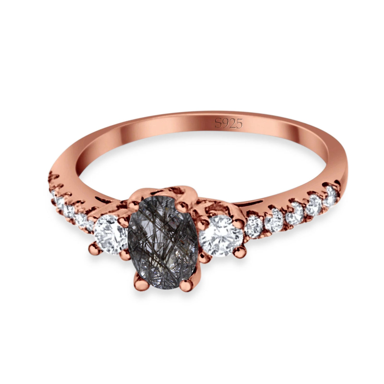 Three Stone Oval Natural Rutilated Quartz Trellis Ring 925 Sterling Silver