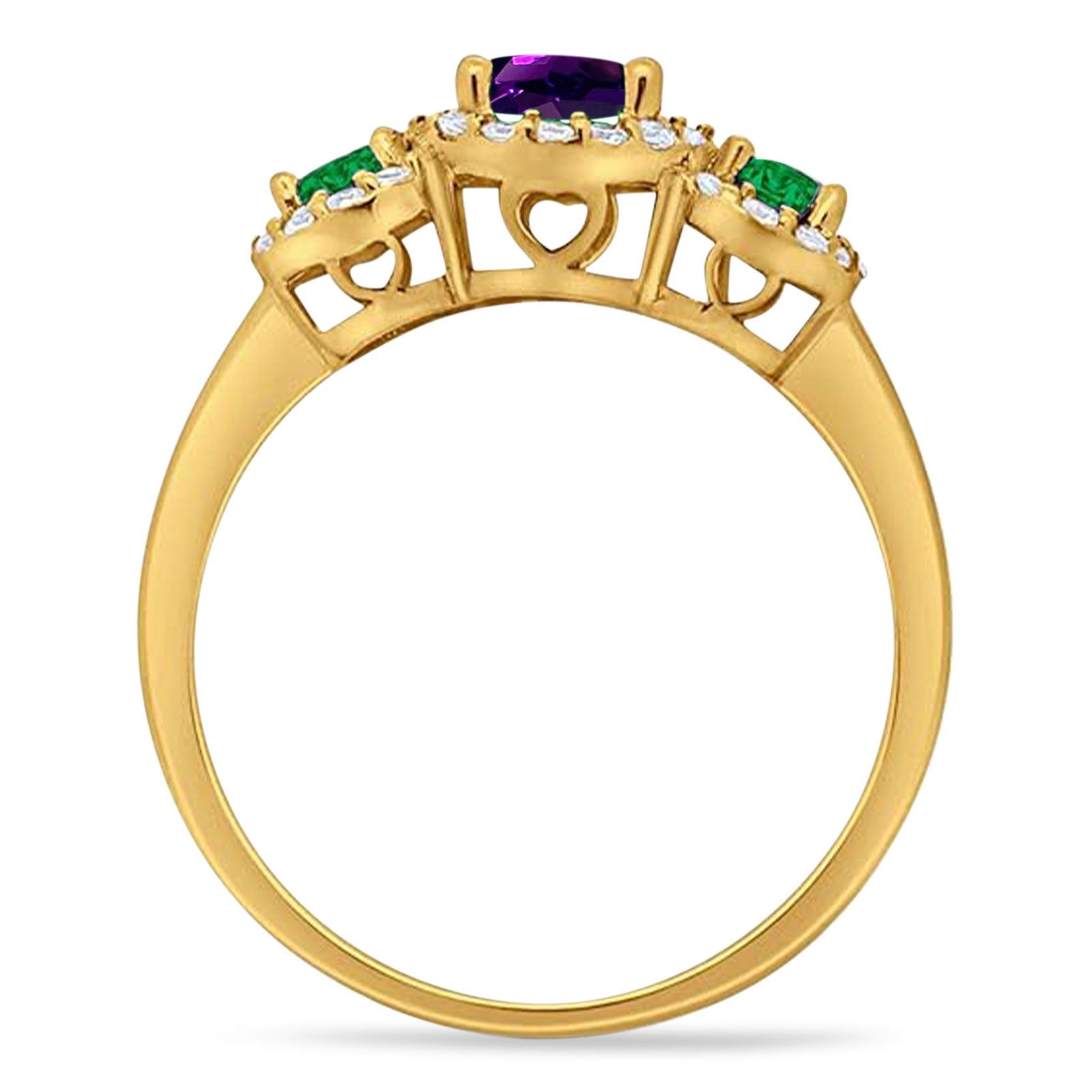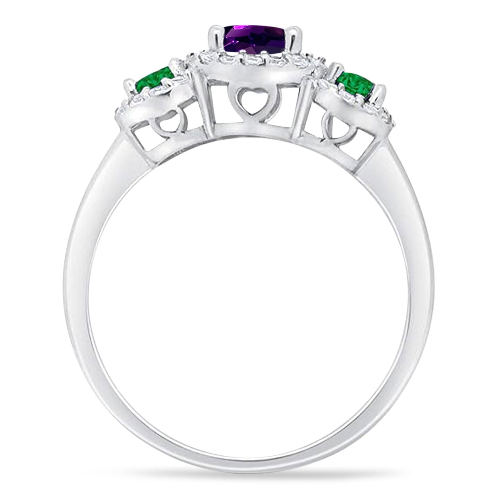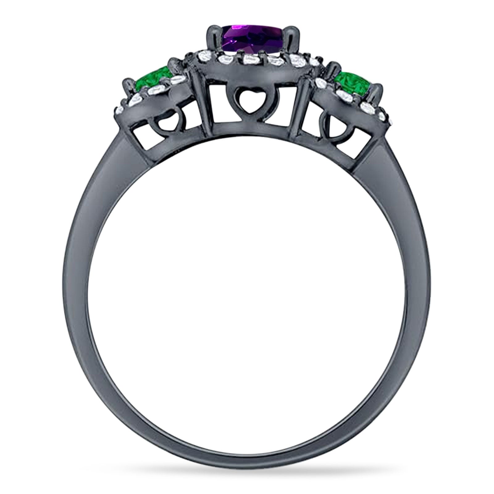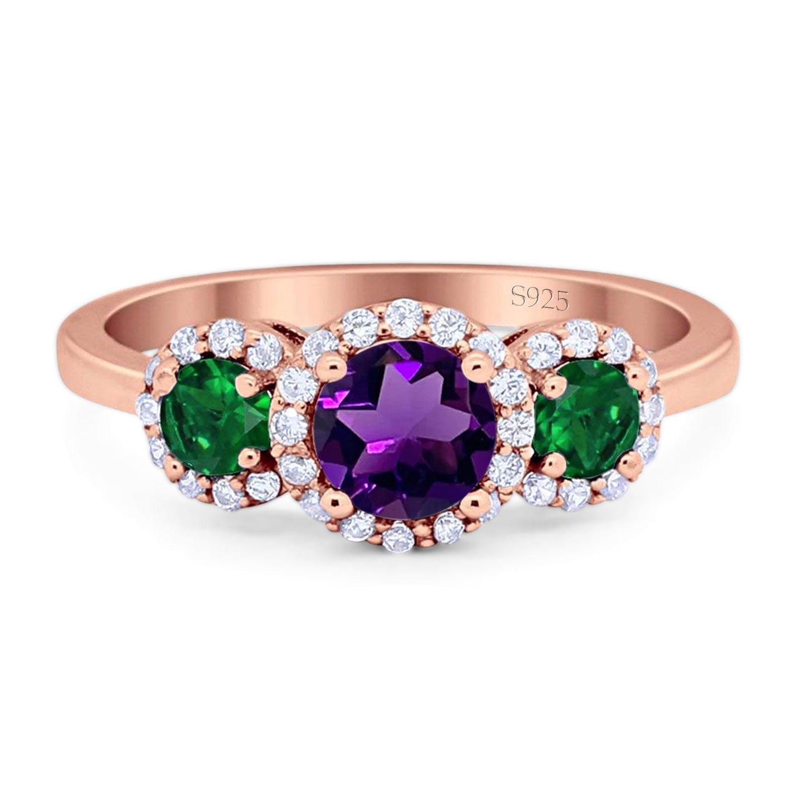 Three Stone Round Natural Amethyst Art Deco Ring 925 Sterling Silver