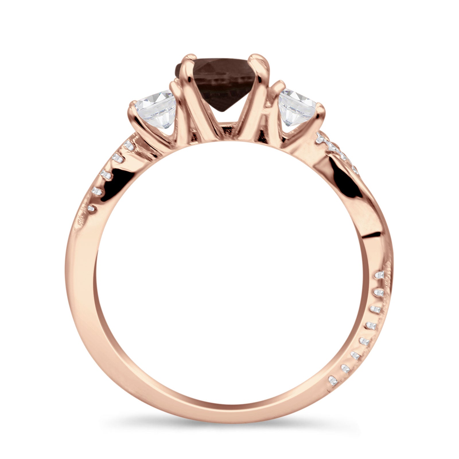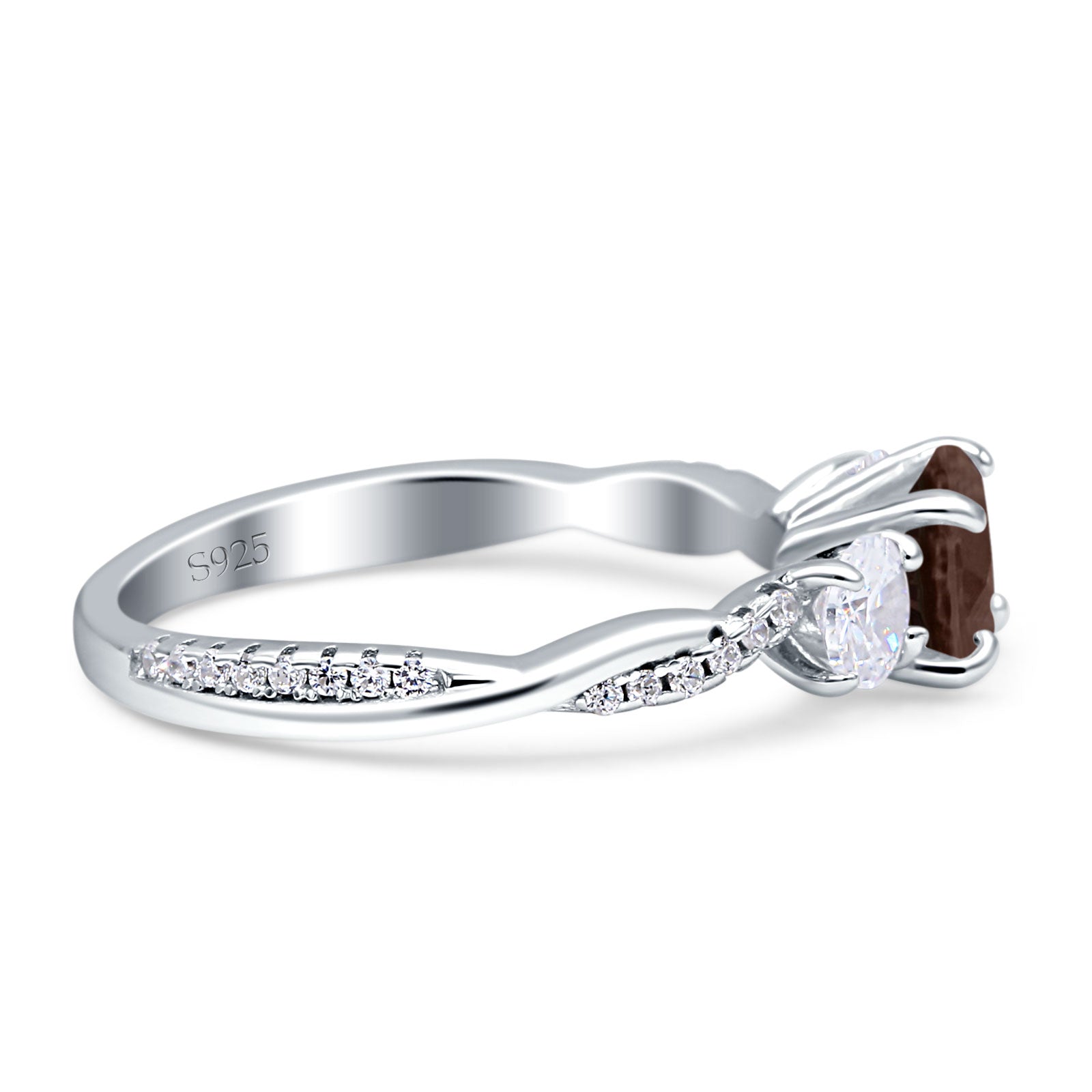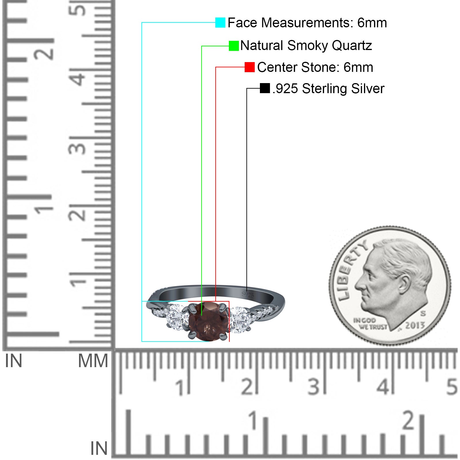 Three Stone Round Natural Chocolate Smoky Quartz Ring 925 Sterling Silver