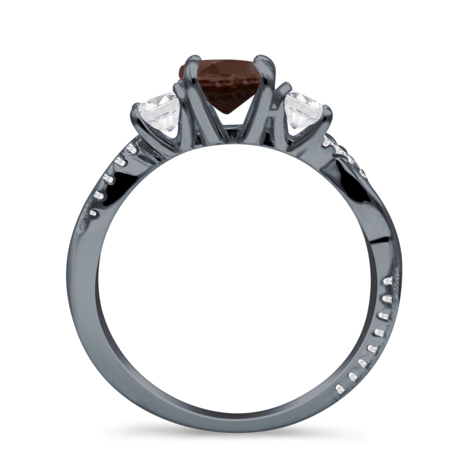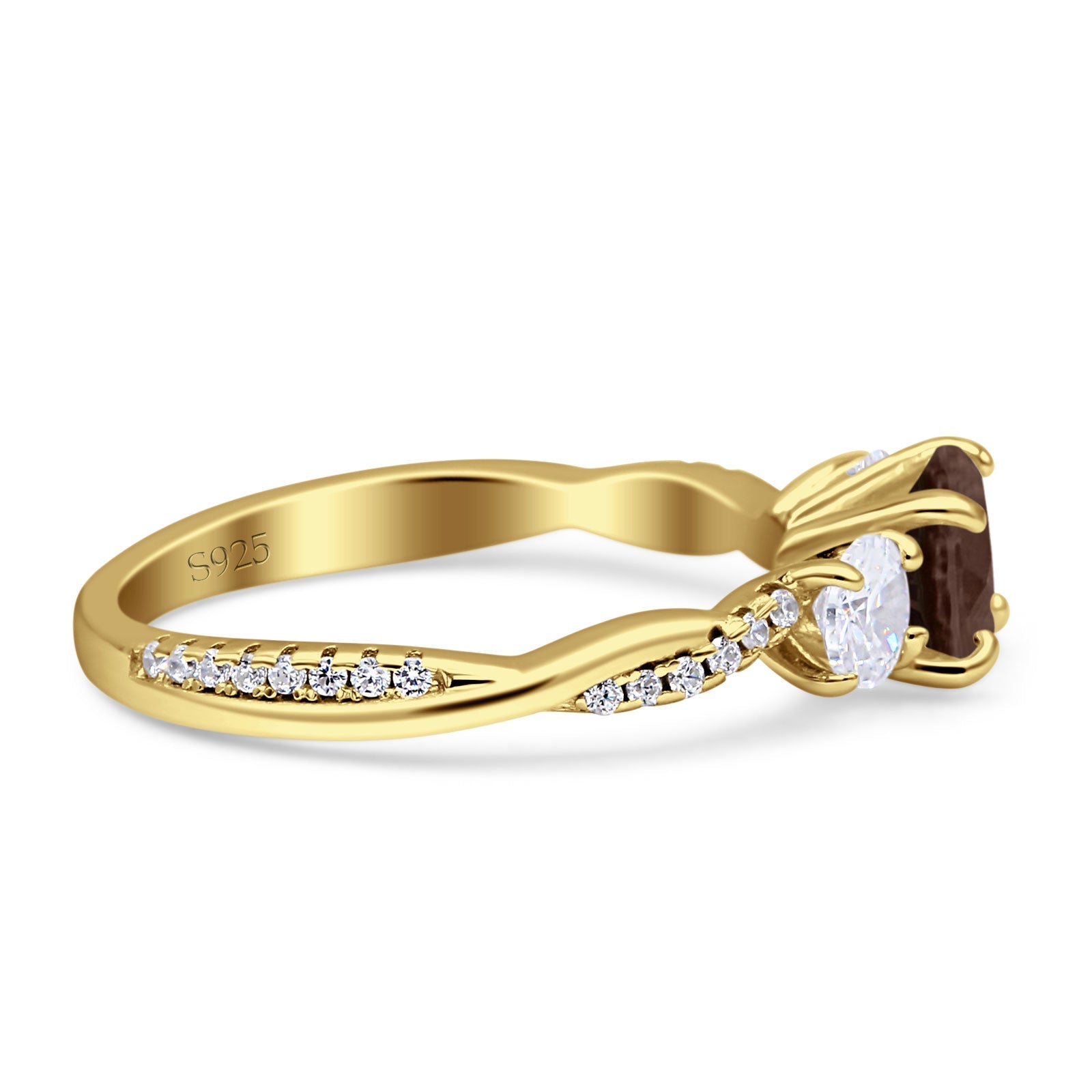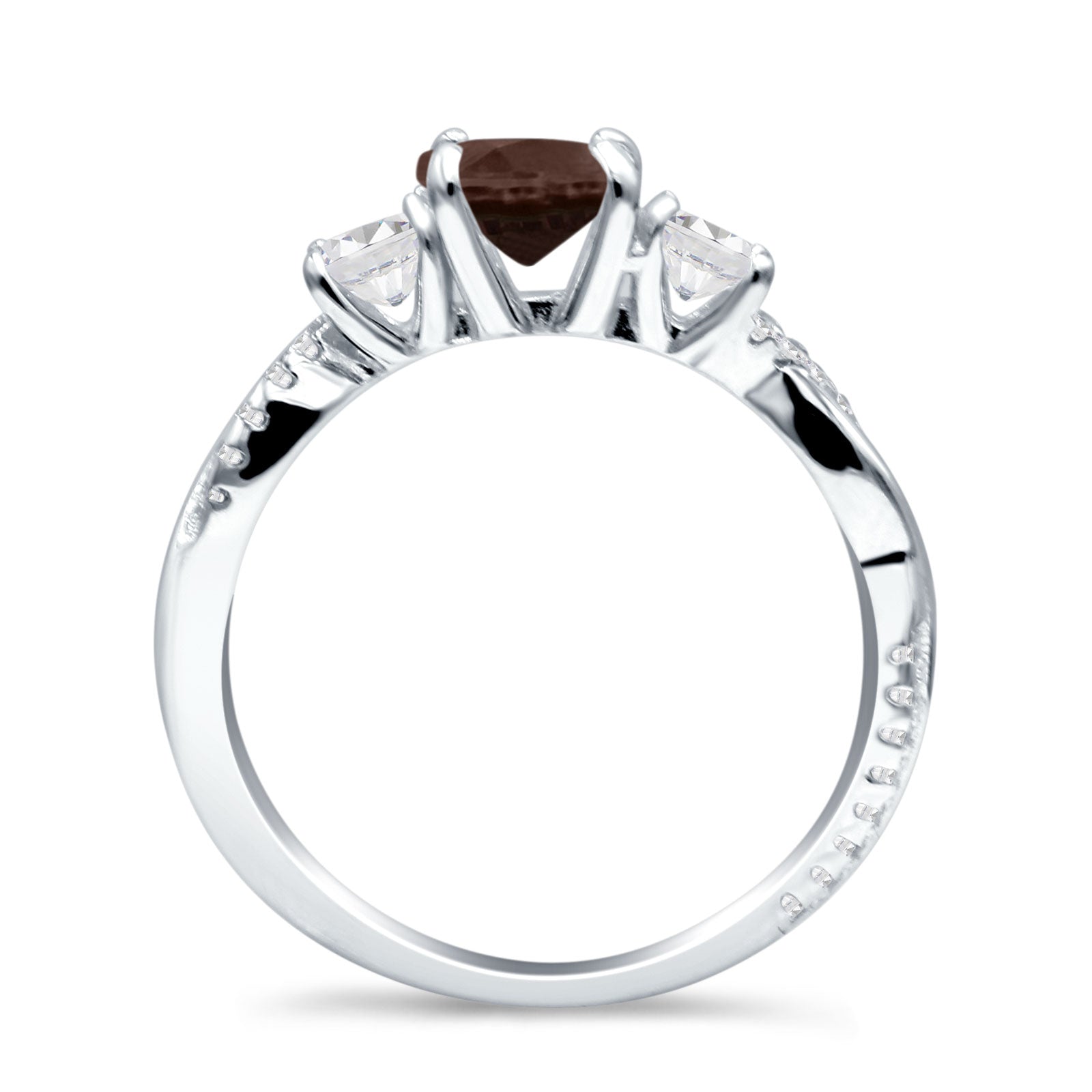 Three Stone Round Natural Chocolate Smoky Quartz Ring 925 Sterling Silver