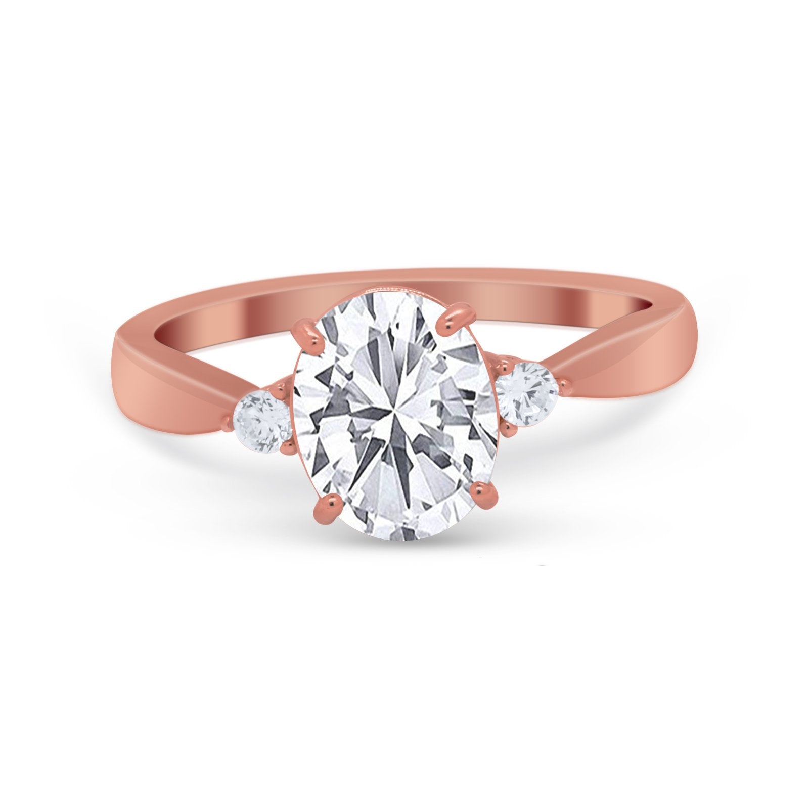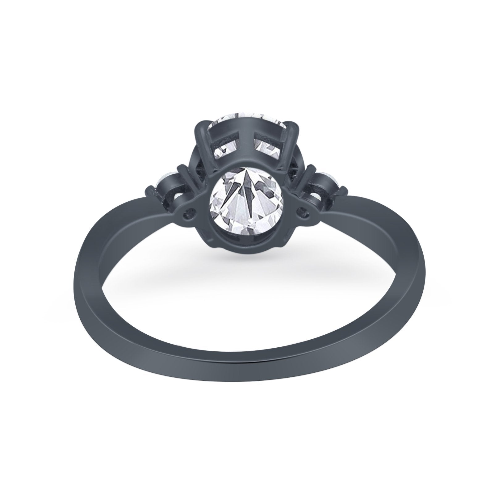 Three Stone Wedding Ring Round Simulated Cubic Zirconia 925 Sterling Silver