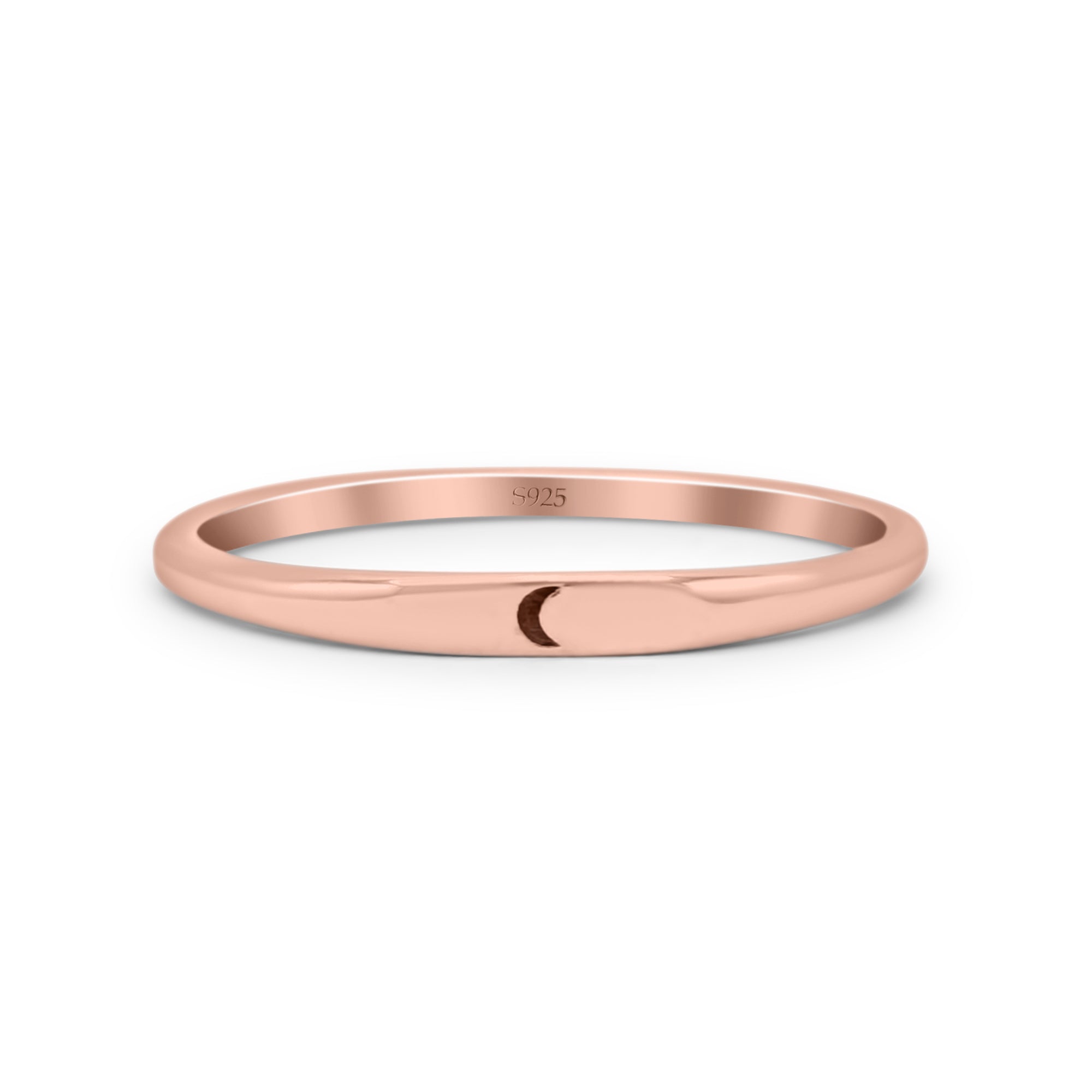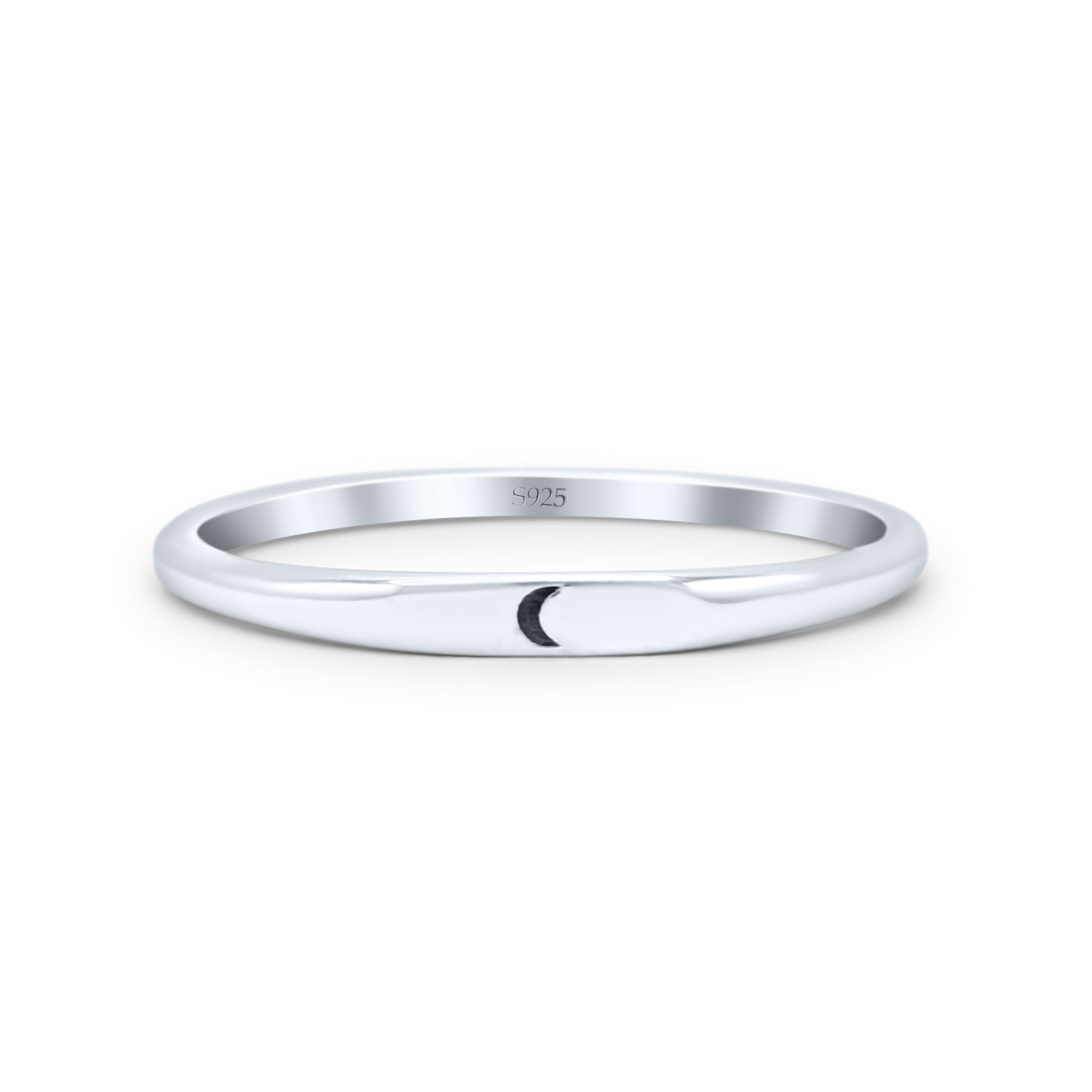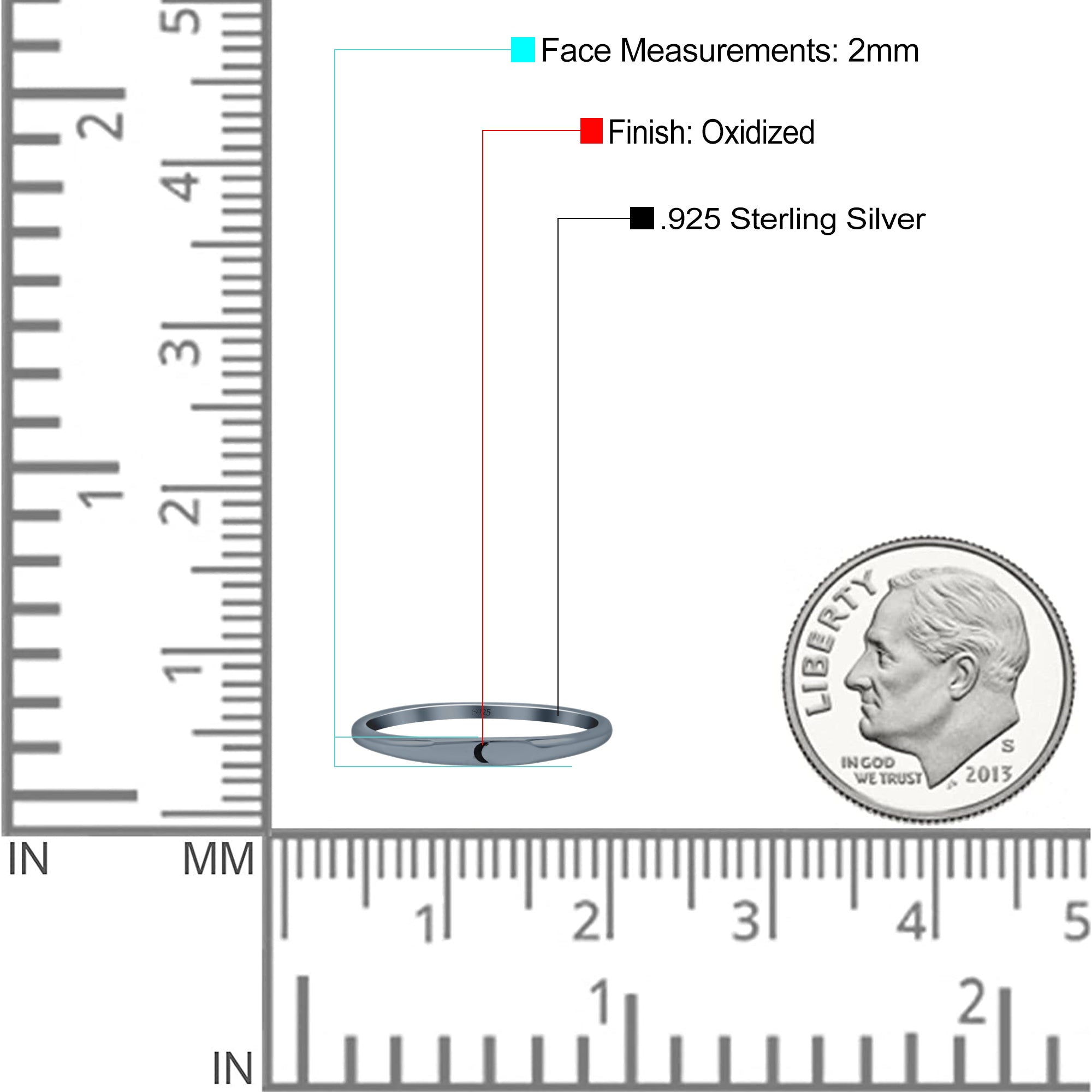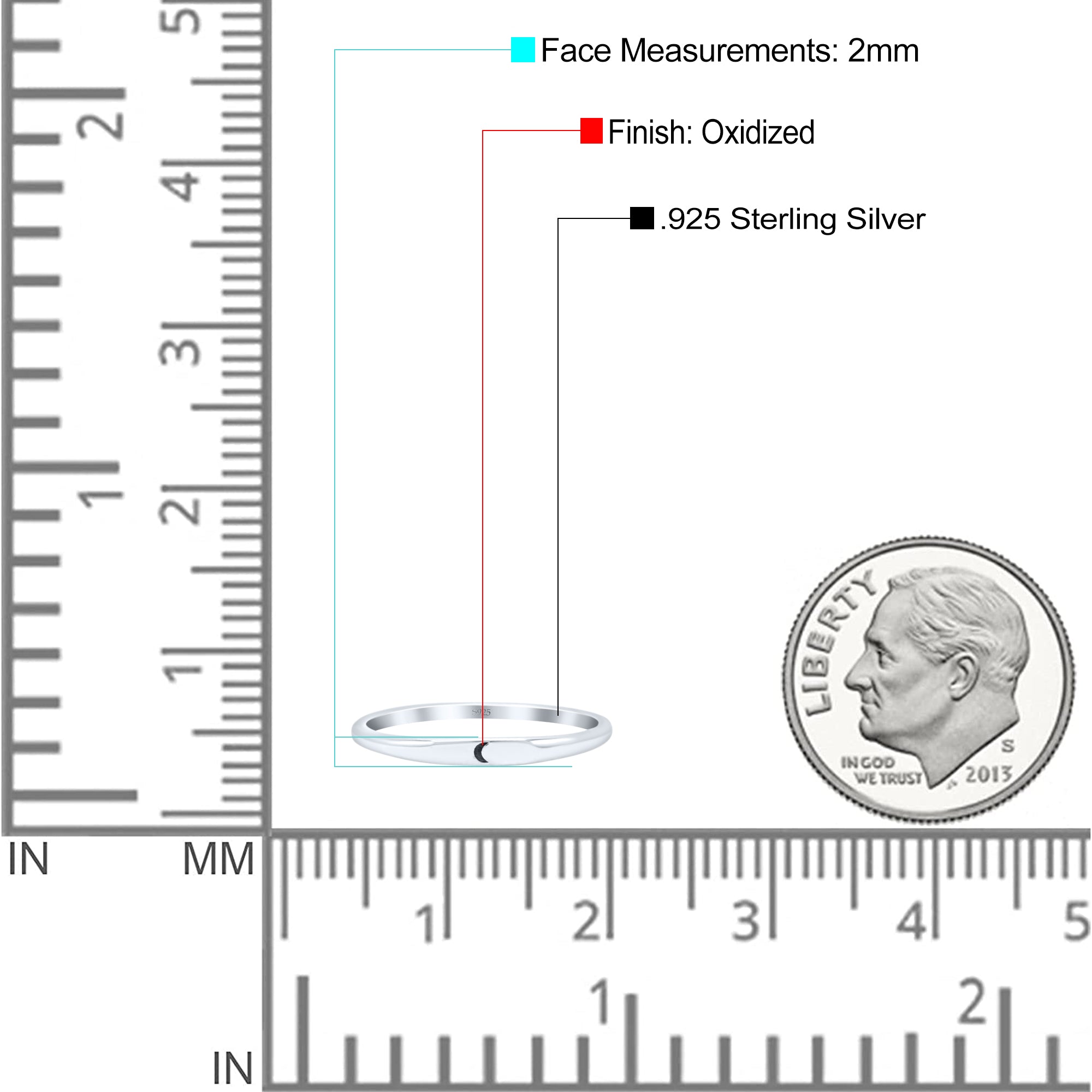 Tiny Pretty Small Crescent Half Moon Engraved Delightful Oxidized Simple Band Solid 925 Sterling Silver Thumb Ring (2mm)