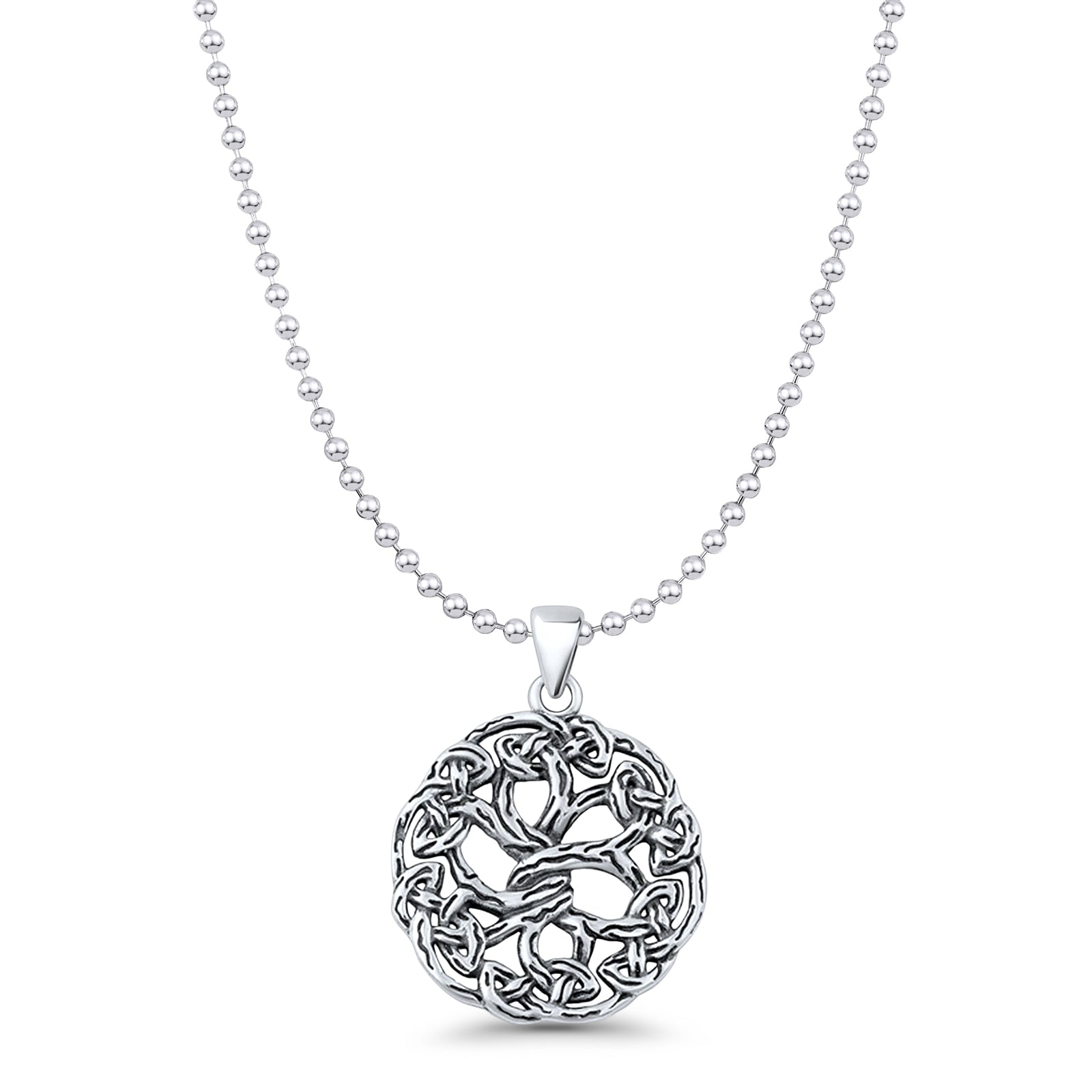 Tree of Life Pendant Bead Chain Necklace Oxidized 925 Sterling Silver