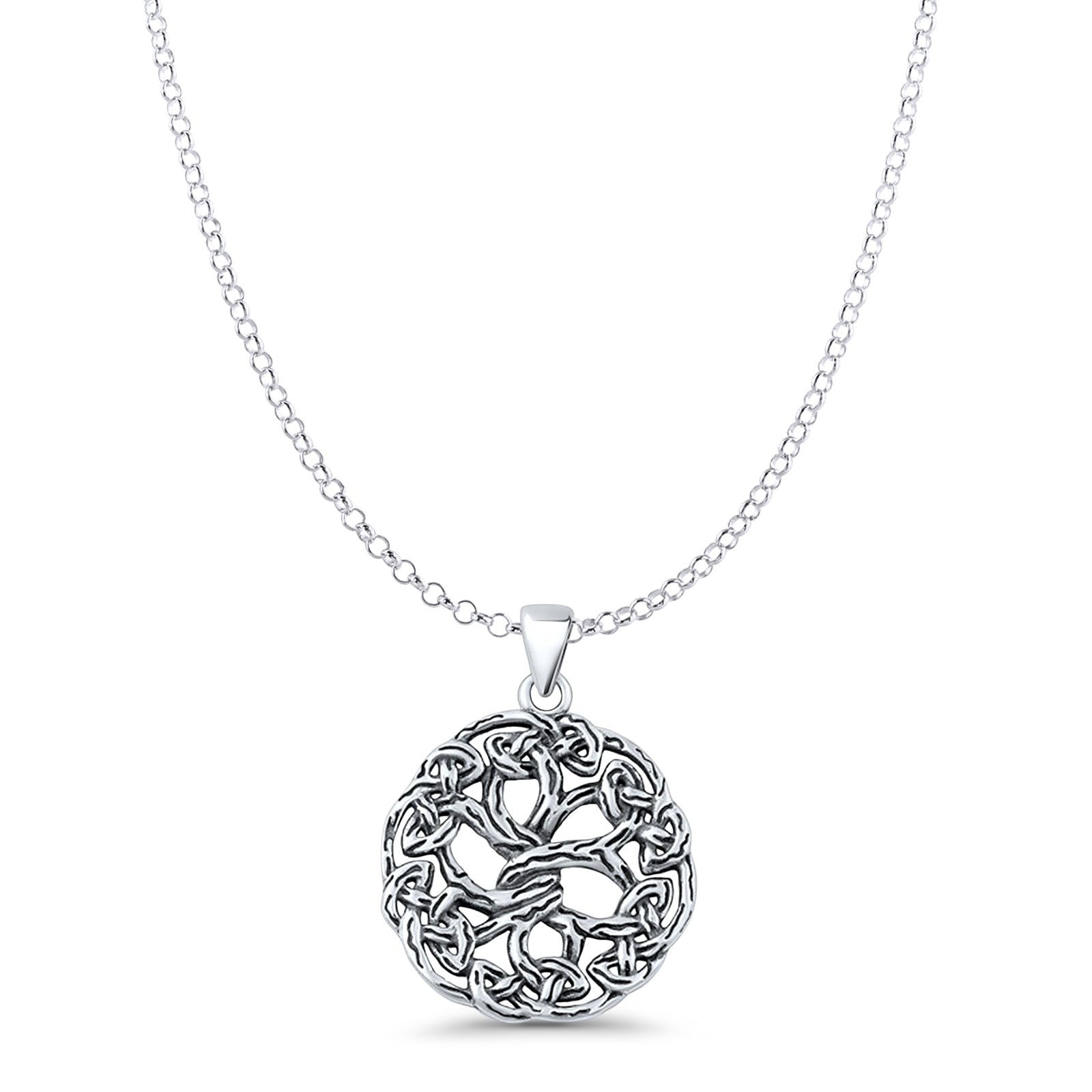 Tree of Life Pendant Rolo Chain Necklace Oxidized 925 Sterling Silver