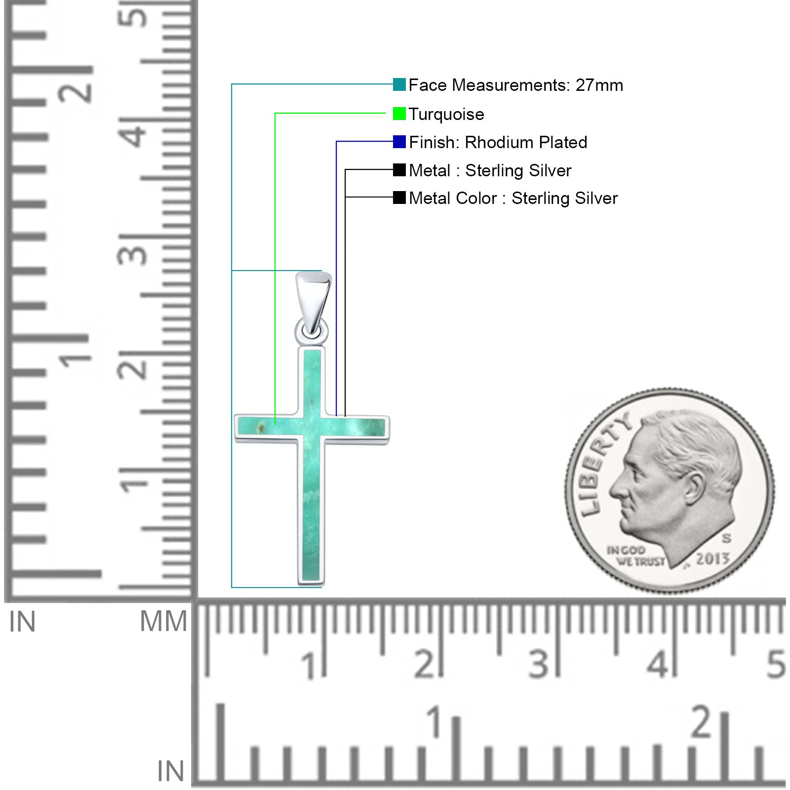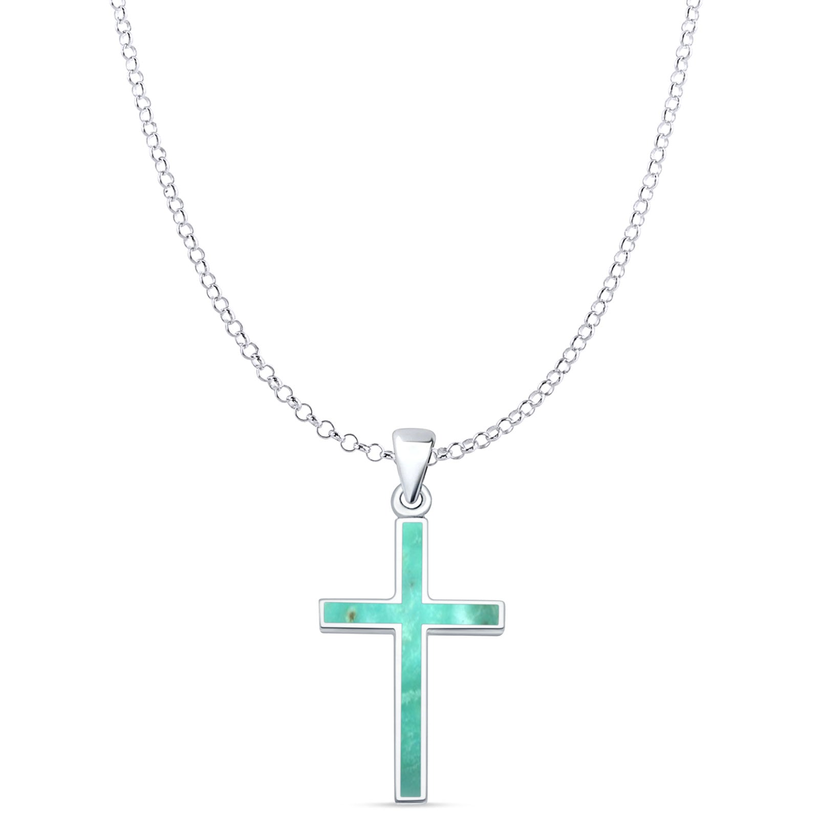 Turquoise Cross Pendant Rolo Chain Necklace 925 Sterling Silver