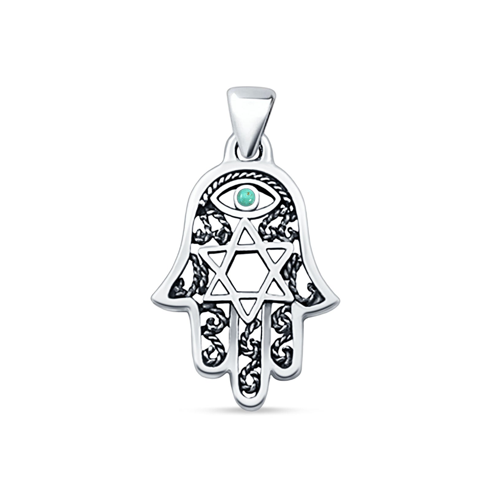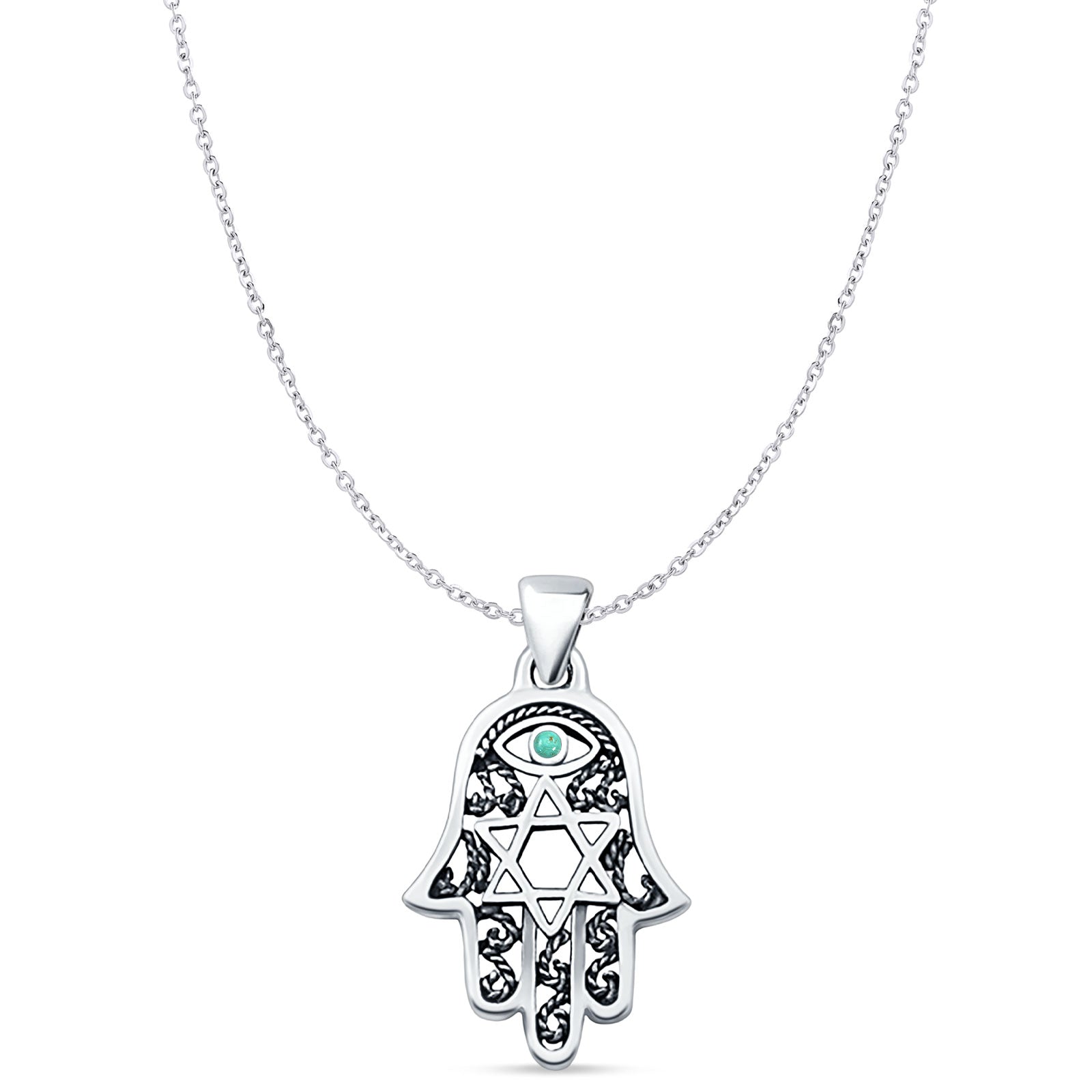 Style: Turquoise Hamsa & Star Of David Pendant Necklace