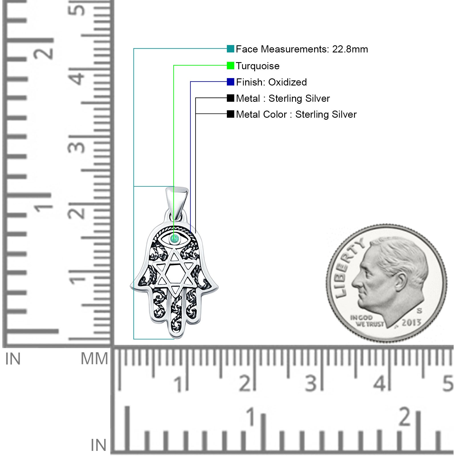 Pendant Length: 22.8mm(0.89 inch)