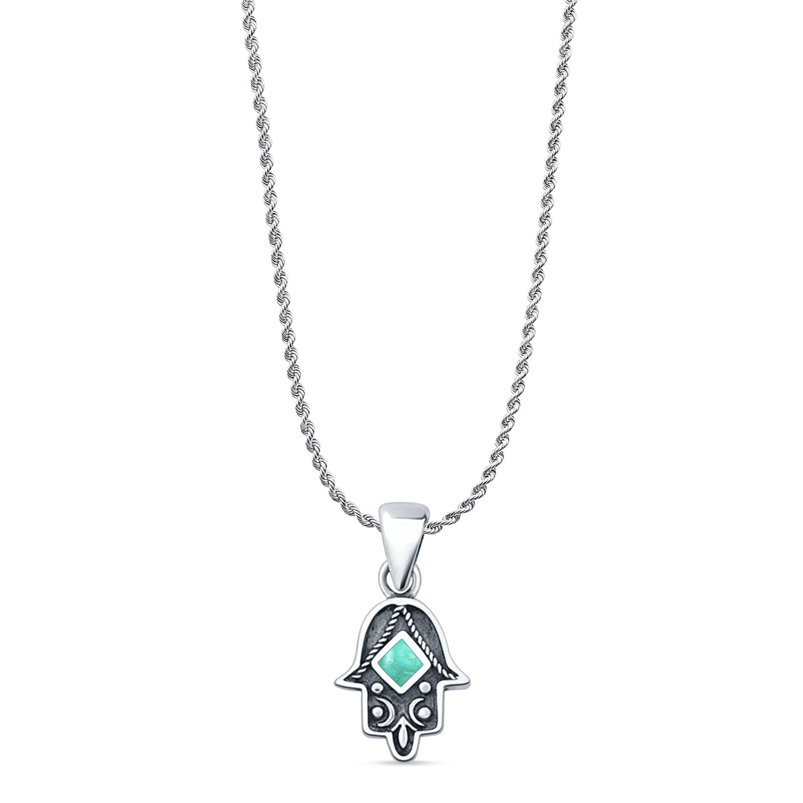 Style: Turquoise Hand Of Hamsa Pendant Necklace